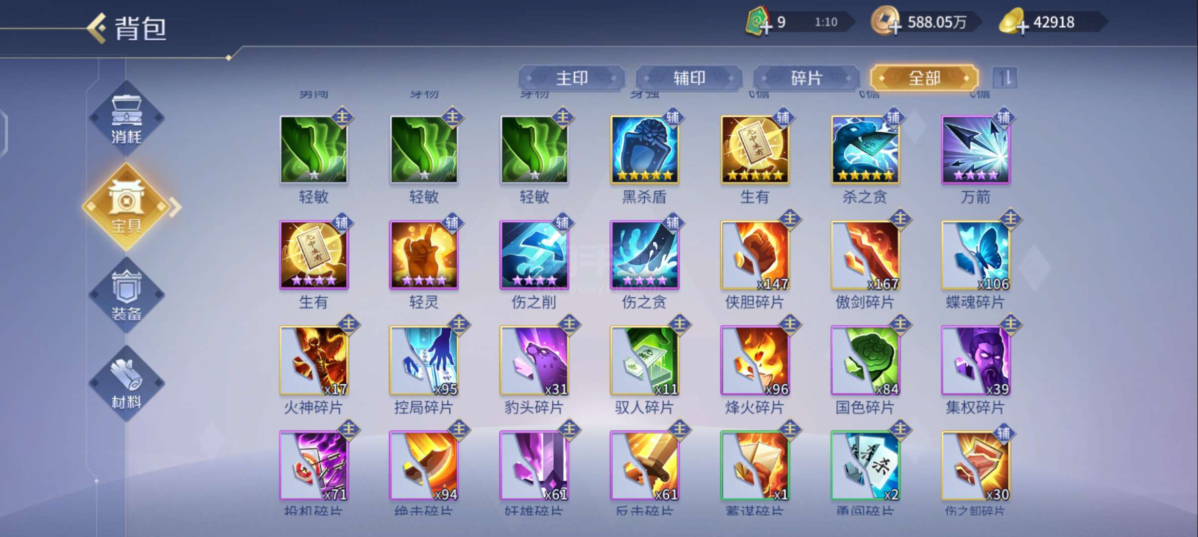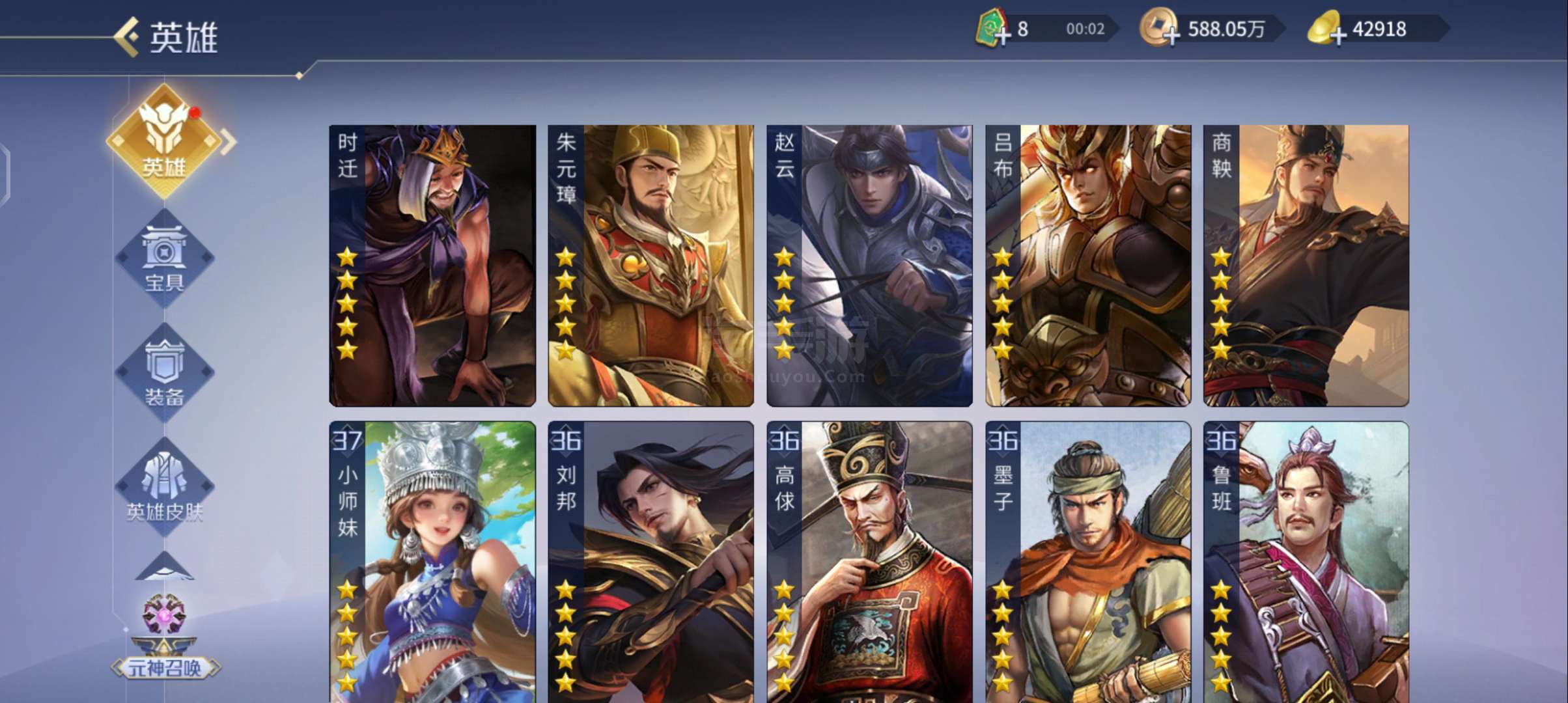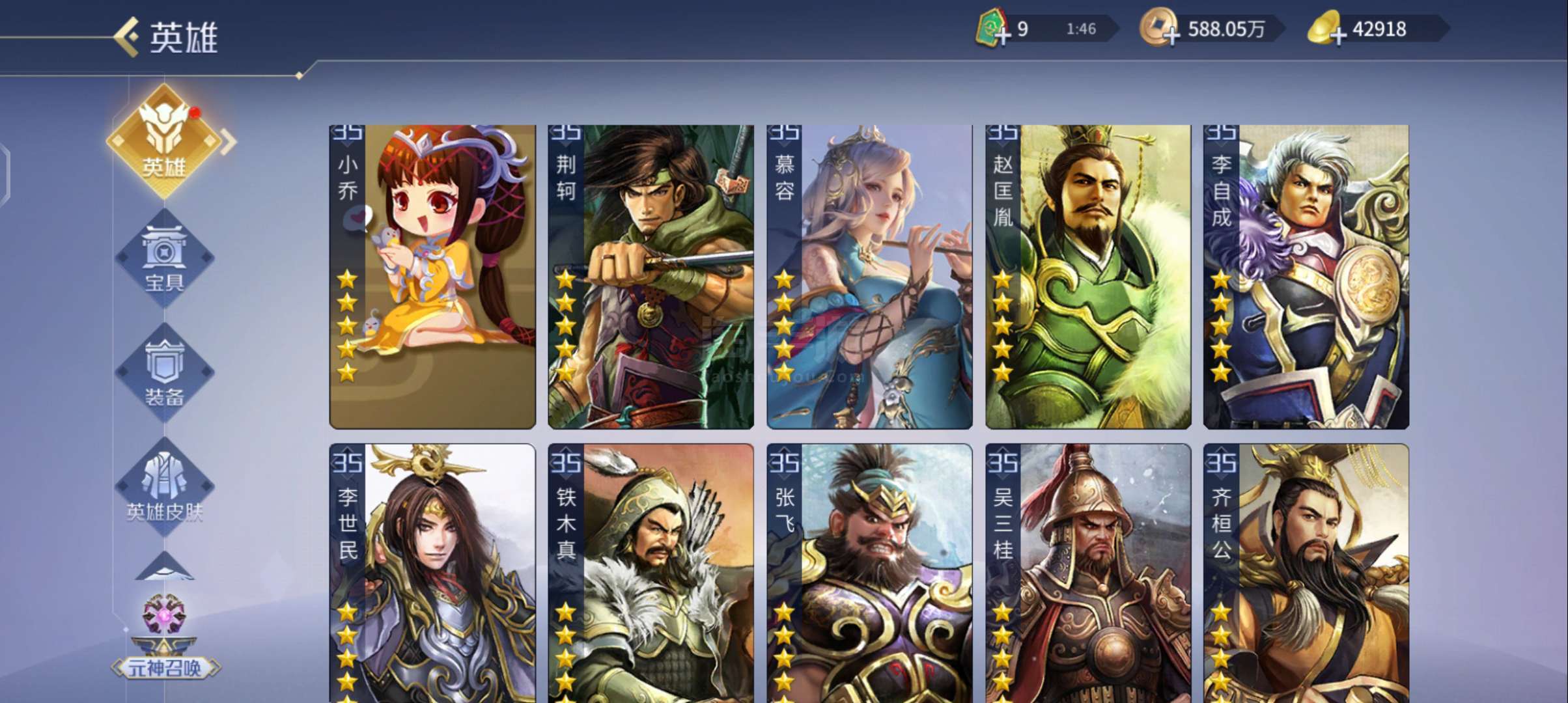 吕布哲别商偷v11七套四星带刀,英雄四十七差不多三百星,元宝四万多