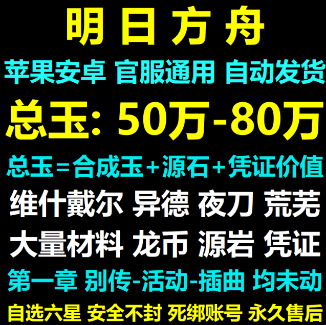 (官服)62W玉+800W龙门币+1-2六星自选凭证【1380源石,安全不封】
