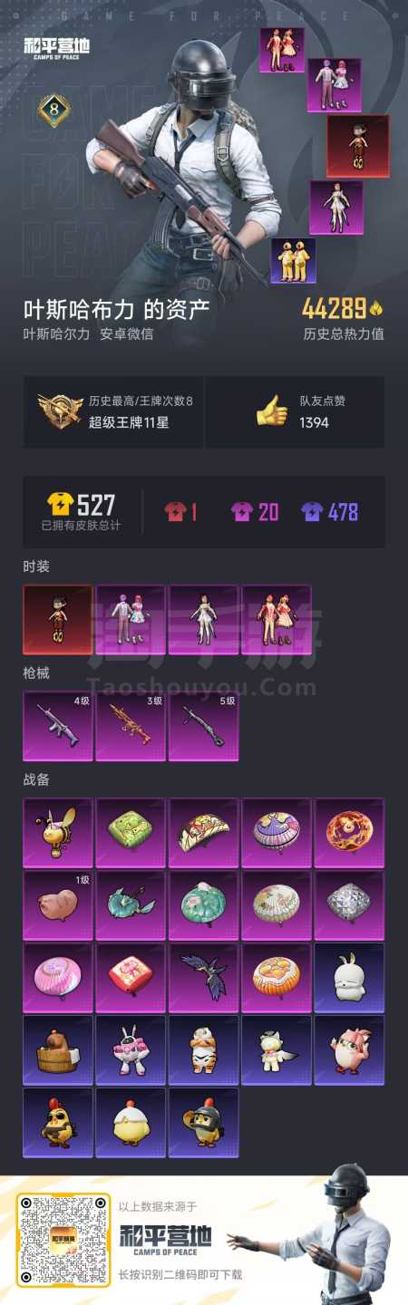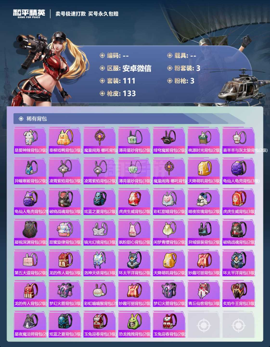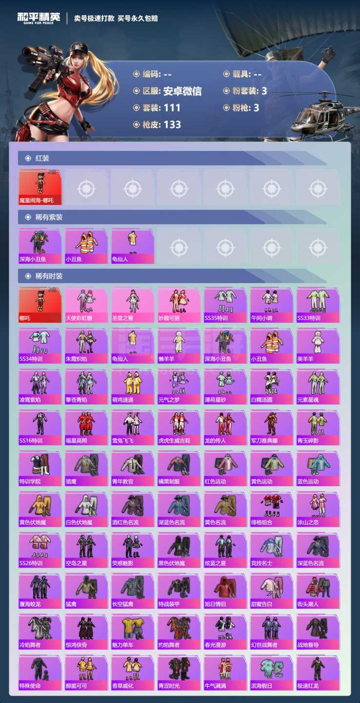 a4002/安卓v/-8王牌印记-3粉装-3特效枪-0载具-44289热力值-111套装-133枪