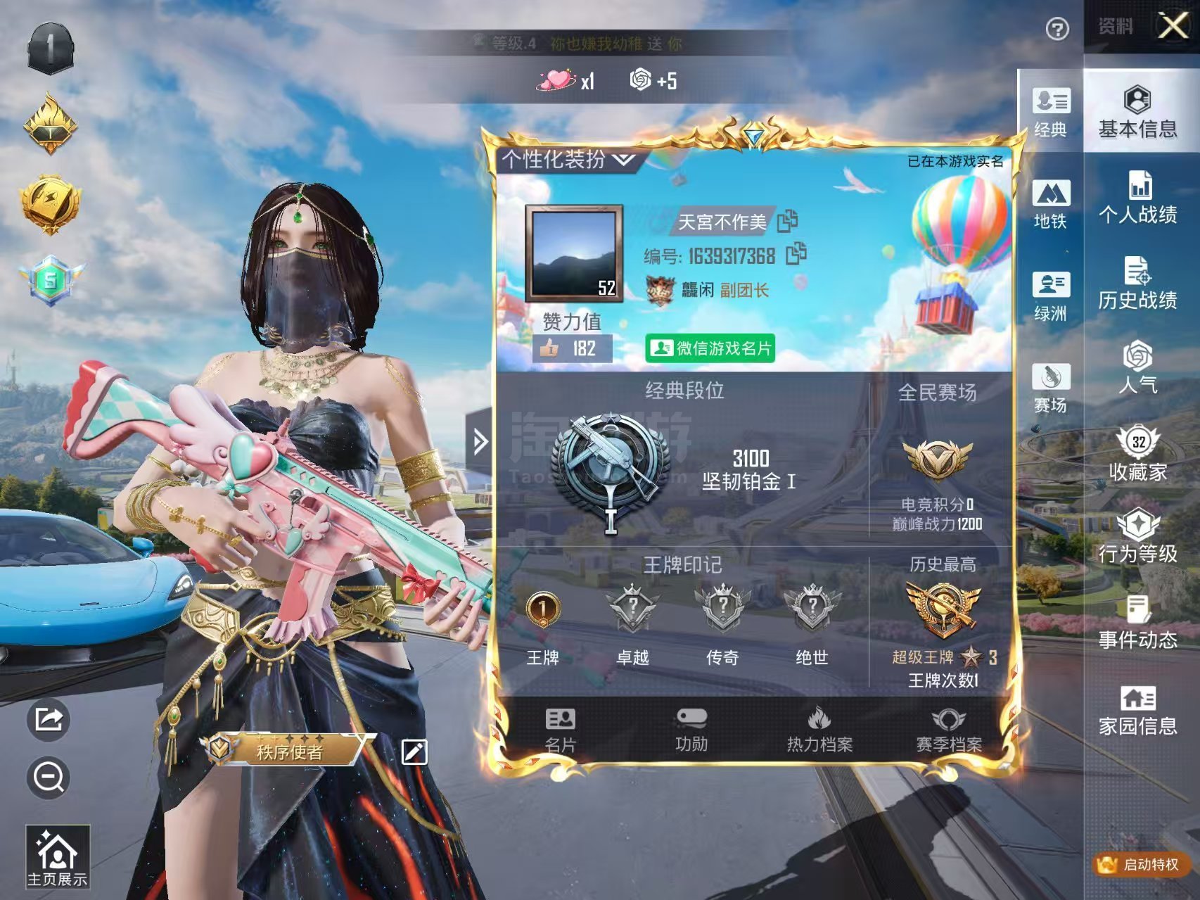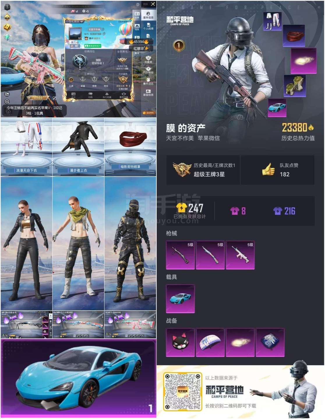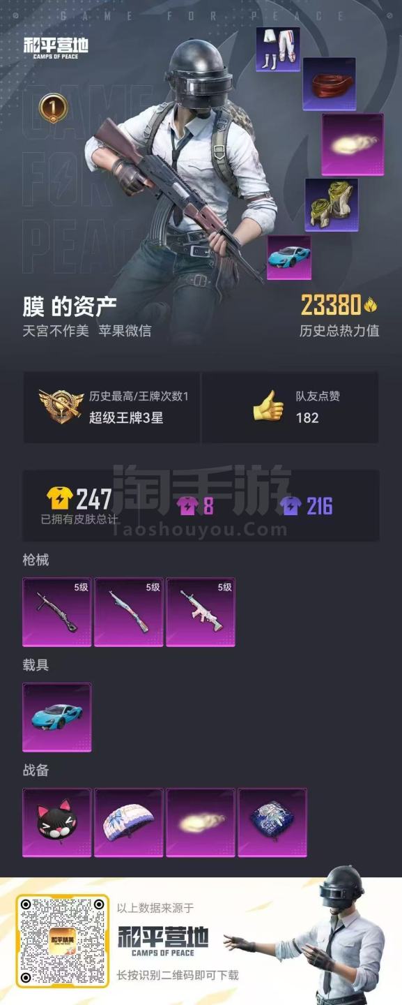 hs45394 苹果微-1王牌印记-0粉装-3特效枪-1载具-23380热力值-62套装-74枪皮