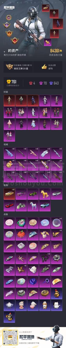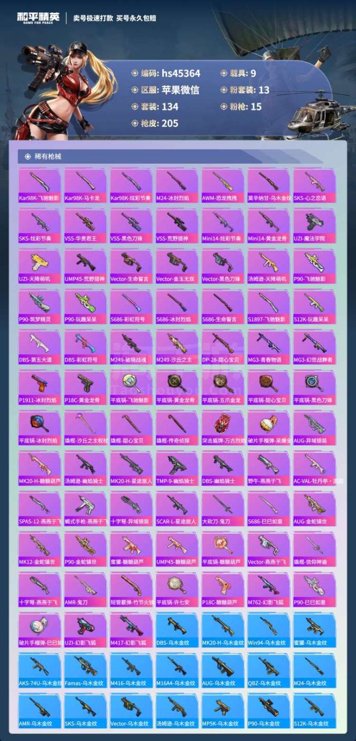 hs45364 苹果v-10王牌印记-有战神框-13粉装-15特效枪-9载具-84859热力值-1