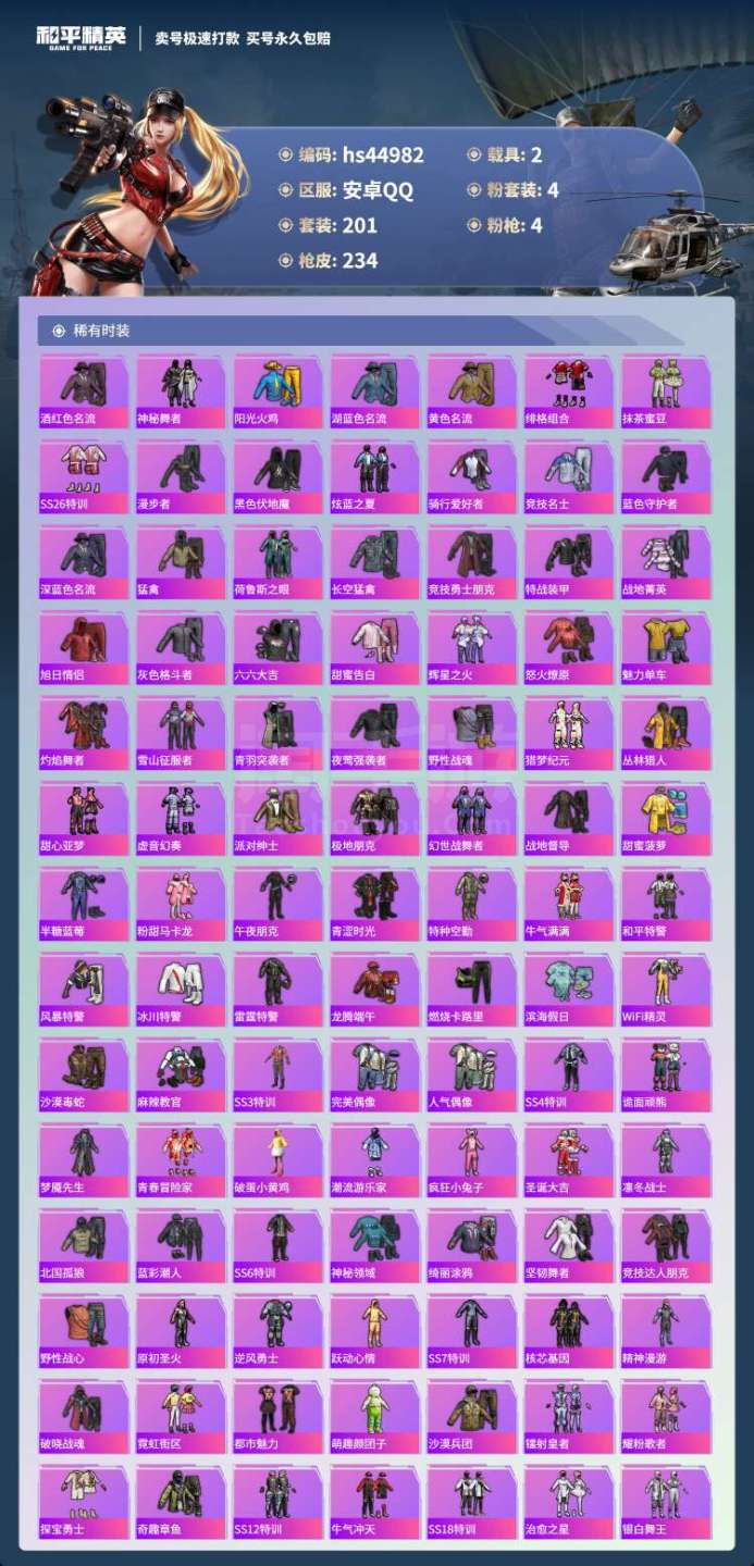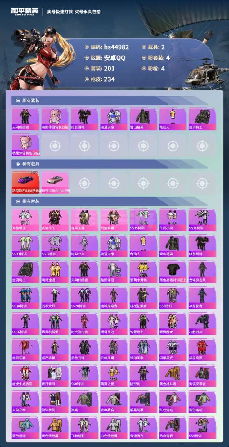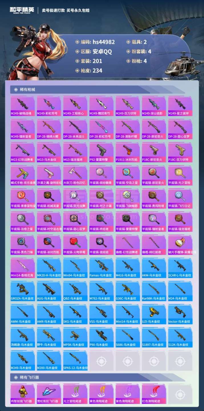 hs44982 苹果手Q-5王牌印记-4粉装-4特效枪-2载具-76846热力值-201套装-234