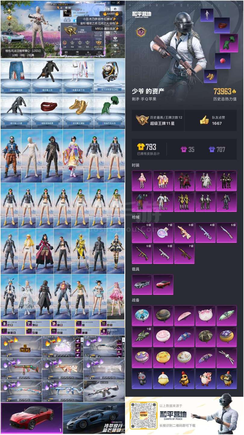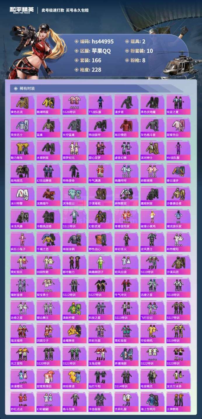 hs44995 苹果手Q-12王牌印记-10粉装-8特效枪-2载具-73963热力值-166套装-2