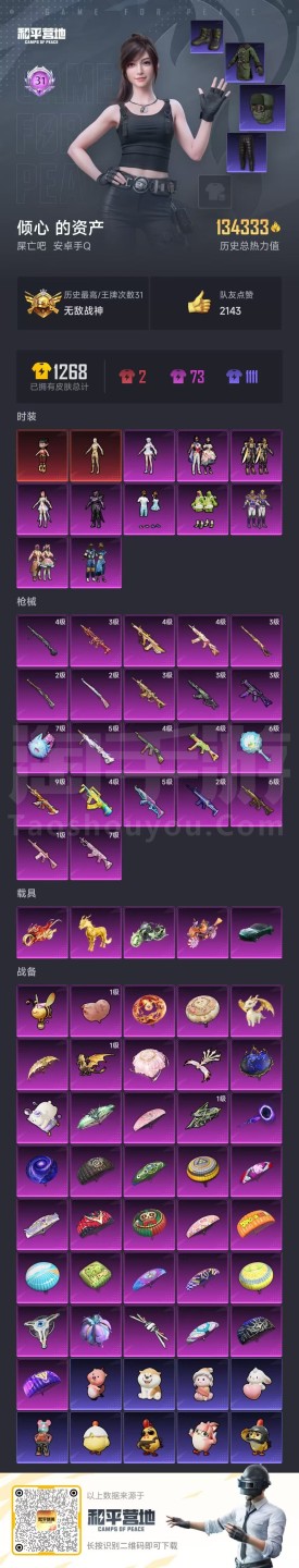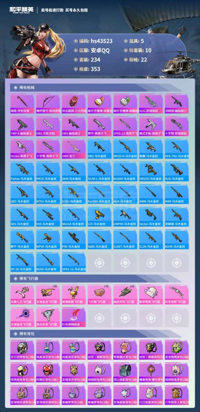 hs43523 安卓手Q-31王牌印记-有战神框-10粉装-22特效枪-5载具-134501热力值-