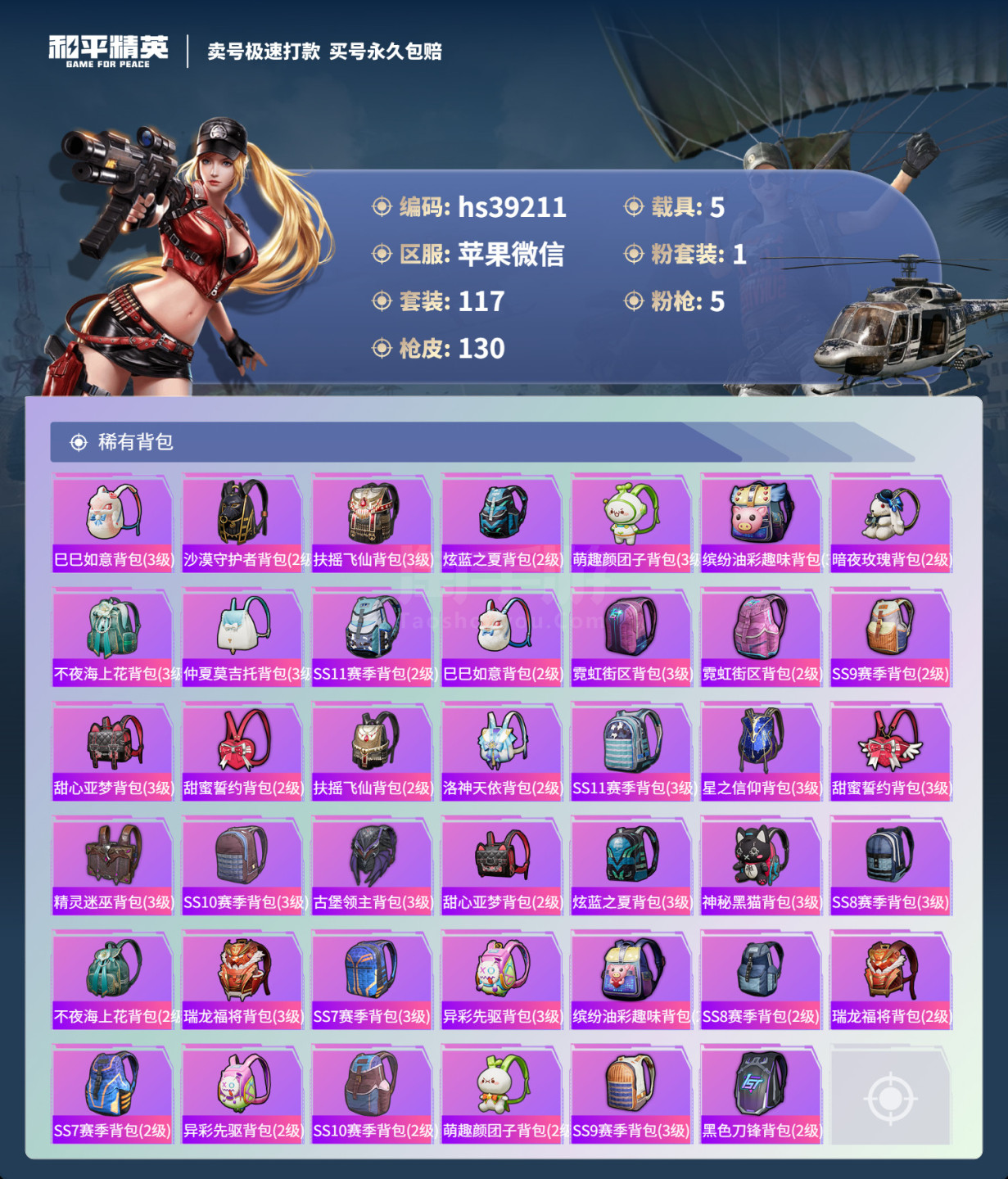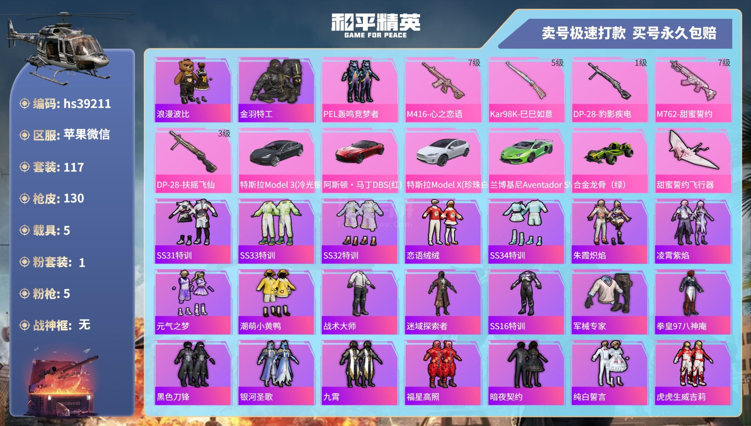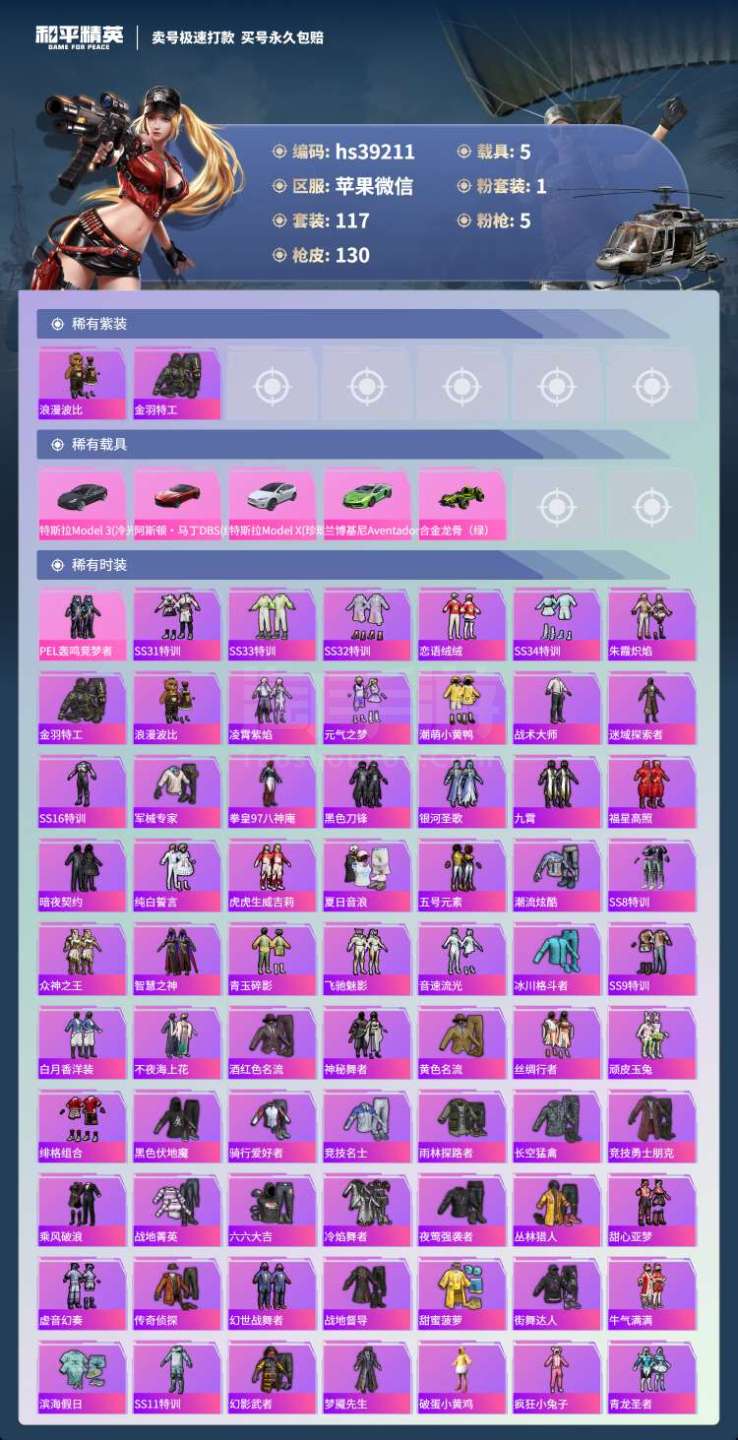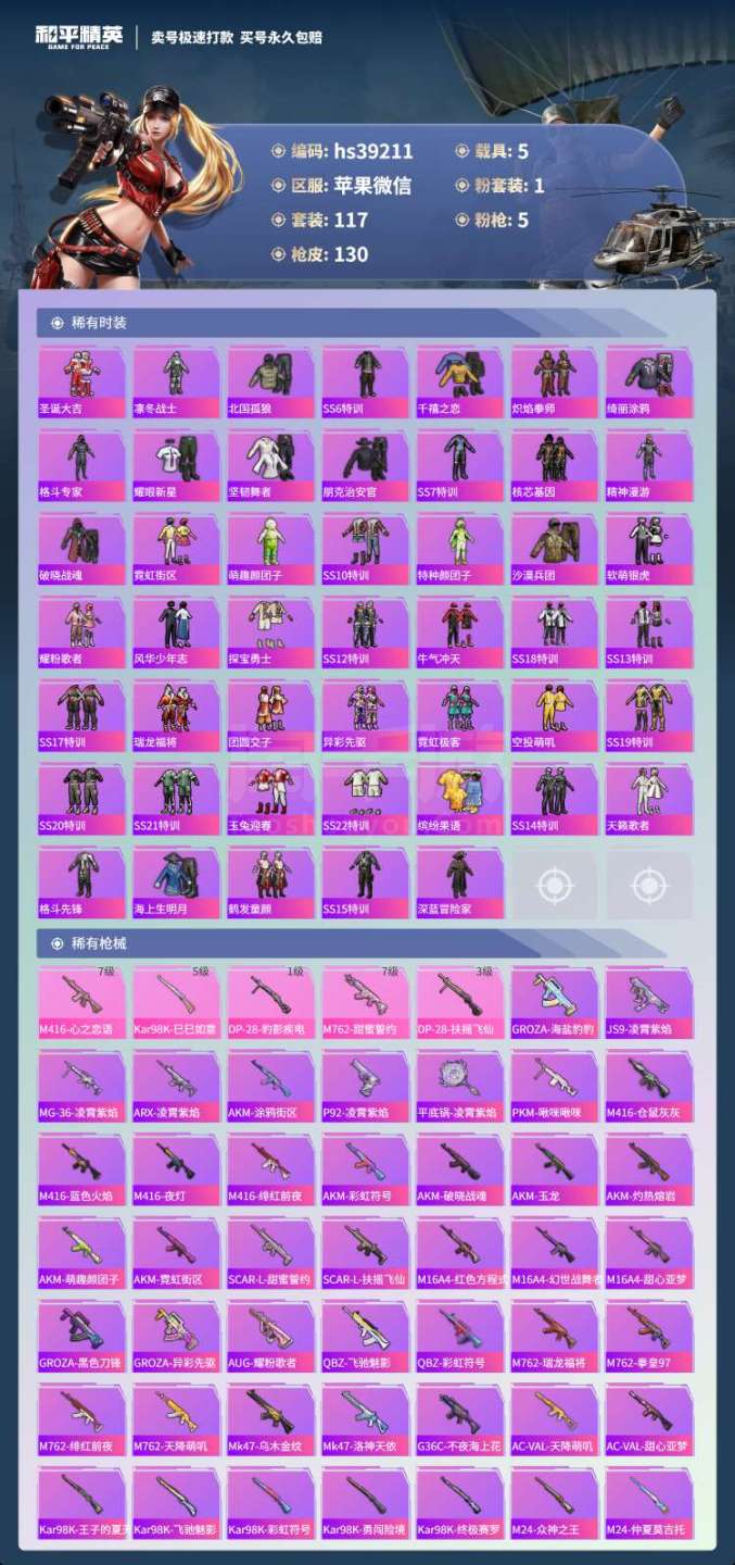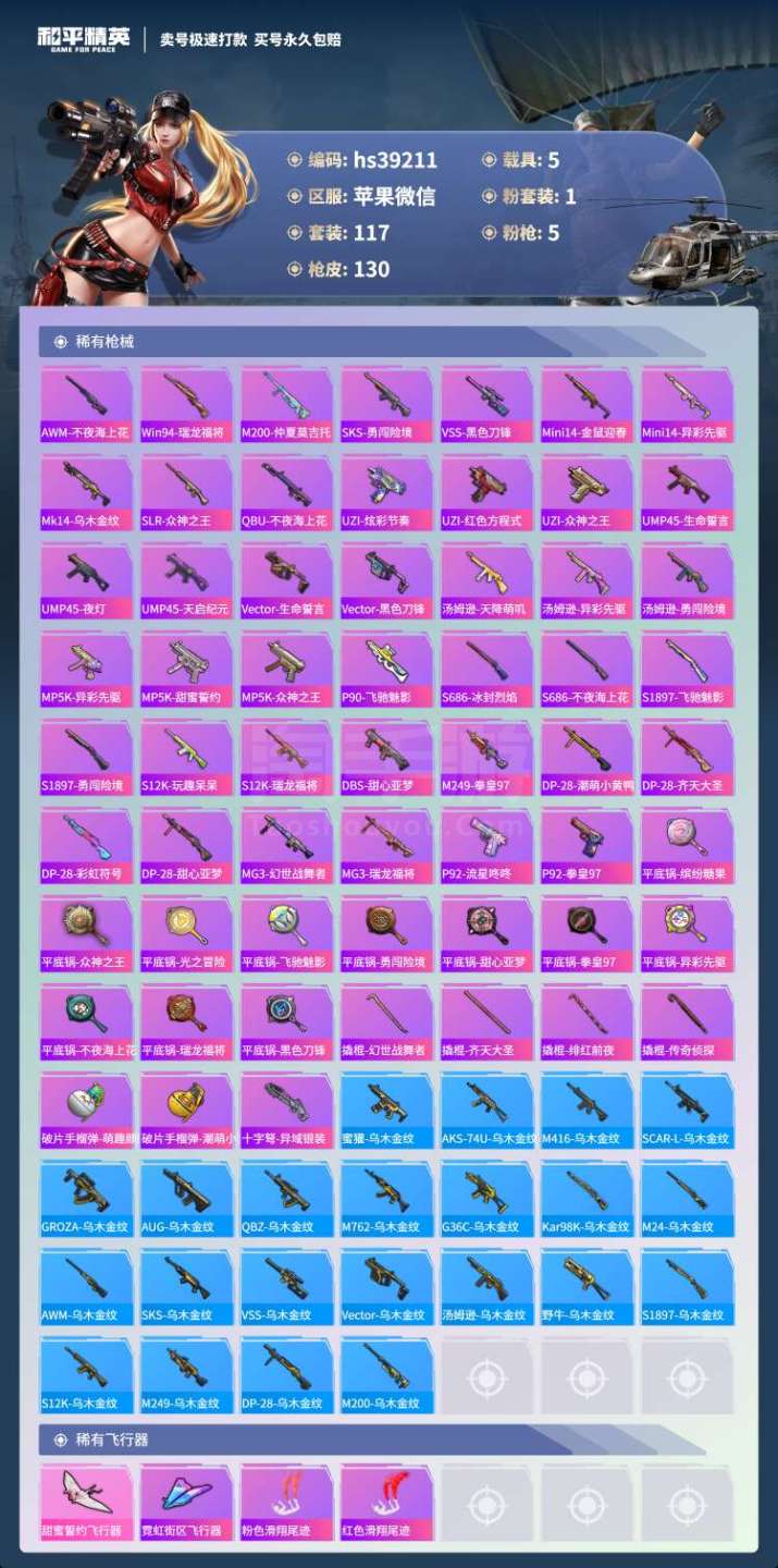hs39211 苹果微-12王牌印记-1粉装-5特效枪-5载具-51008热力值-117套装-13