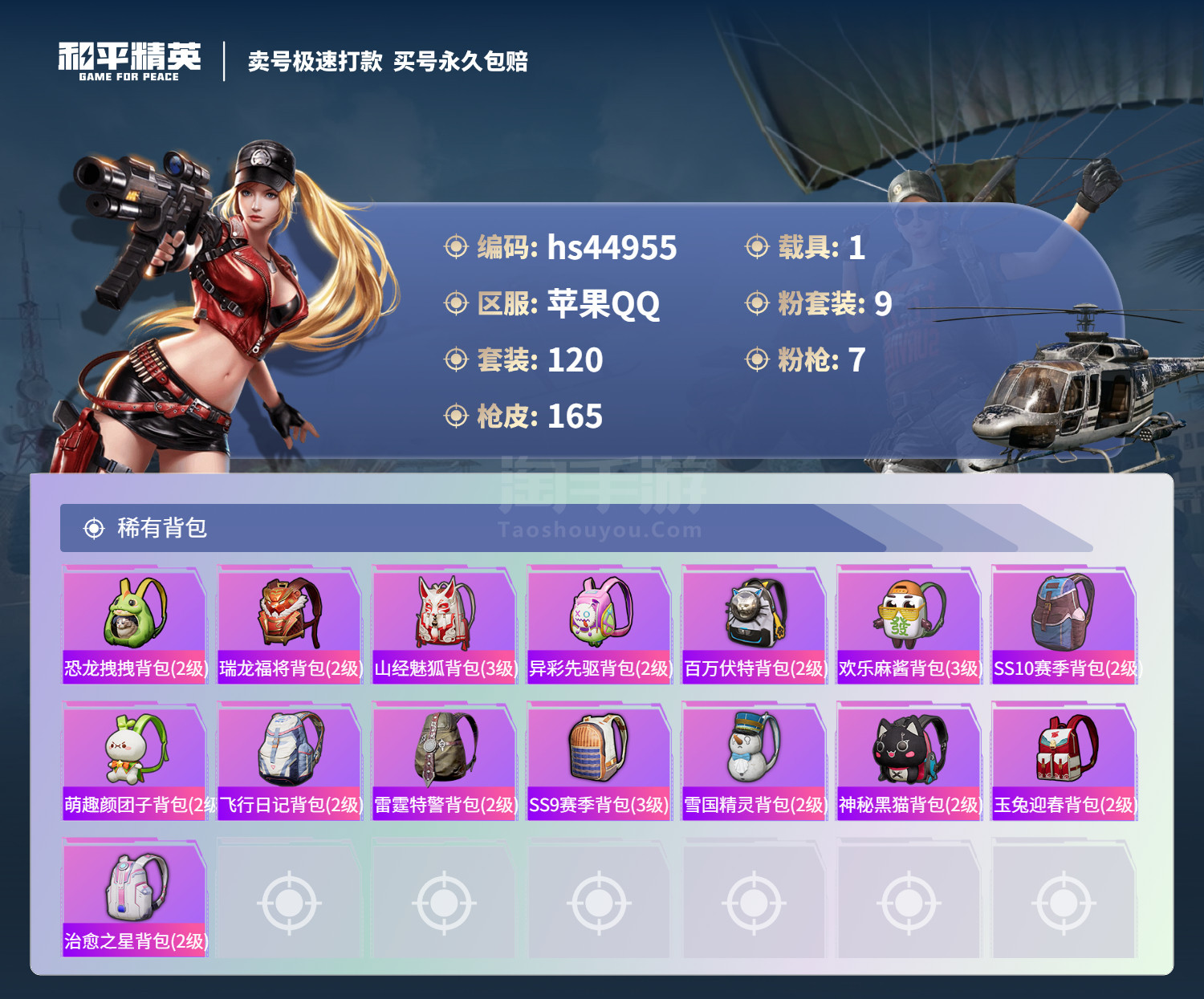 hs44955 苹果手Q-13王牌印记-9粉装-7特效枪-1载具-56778热力值-120套装-16