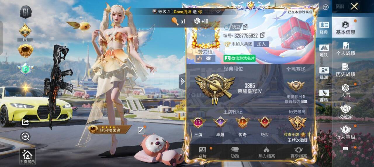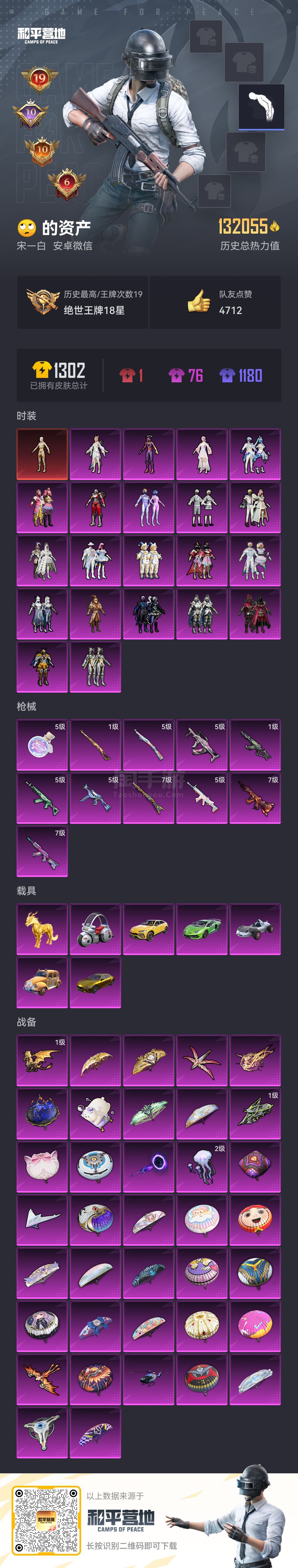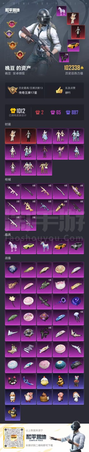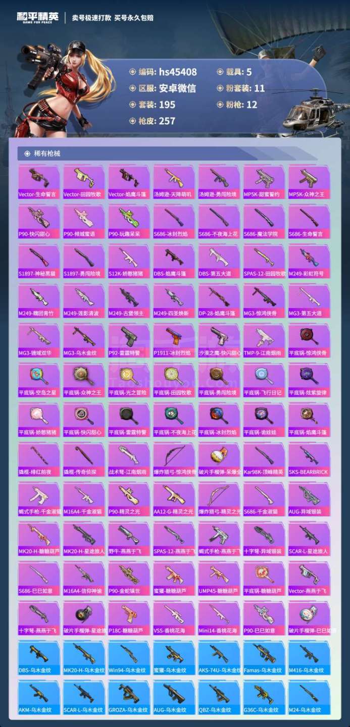 hs45408 安卓微-13王牌印记-11粉装-12特效枪-5载具-102353热力值-195套装