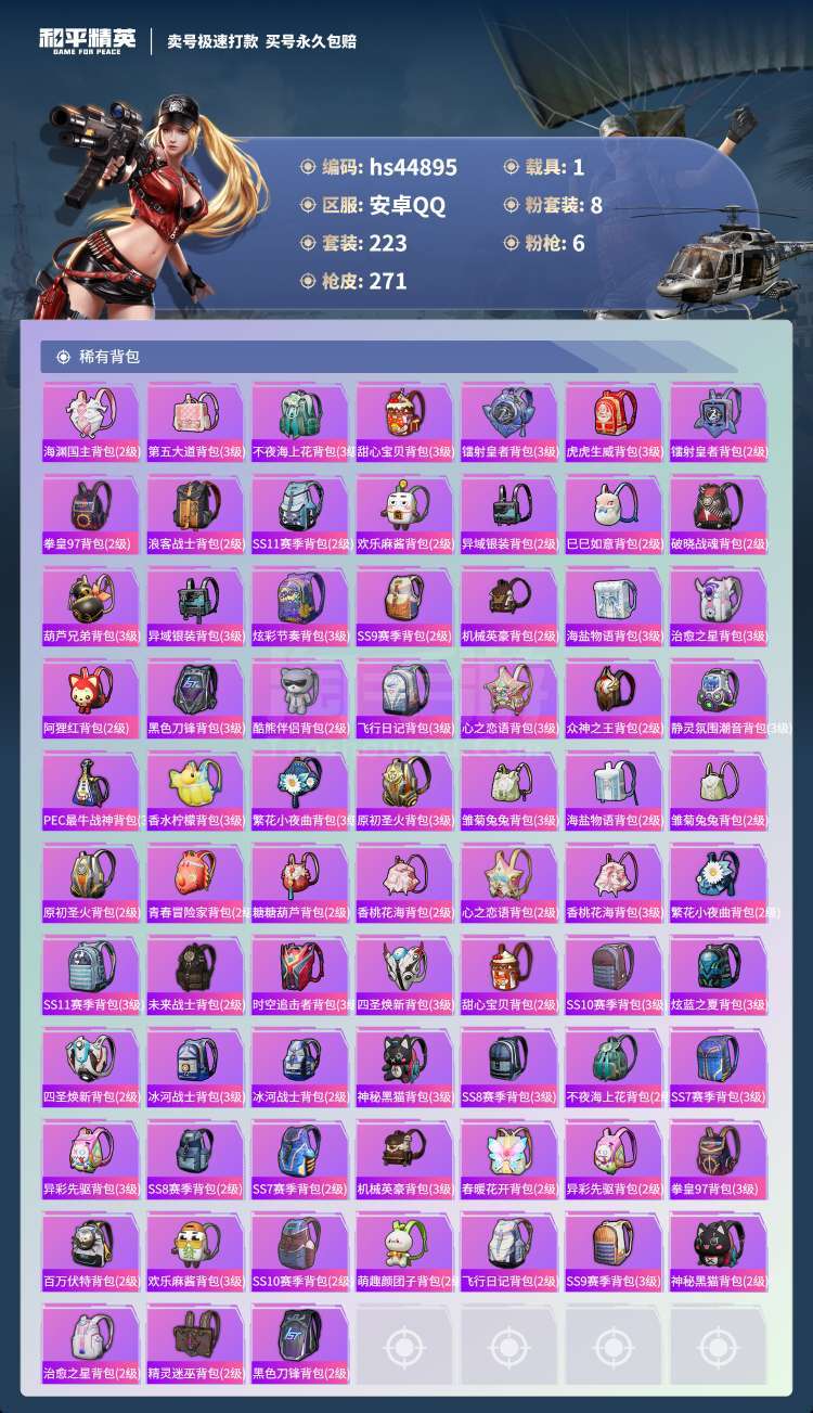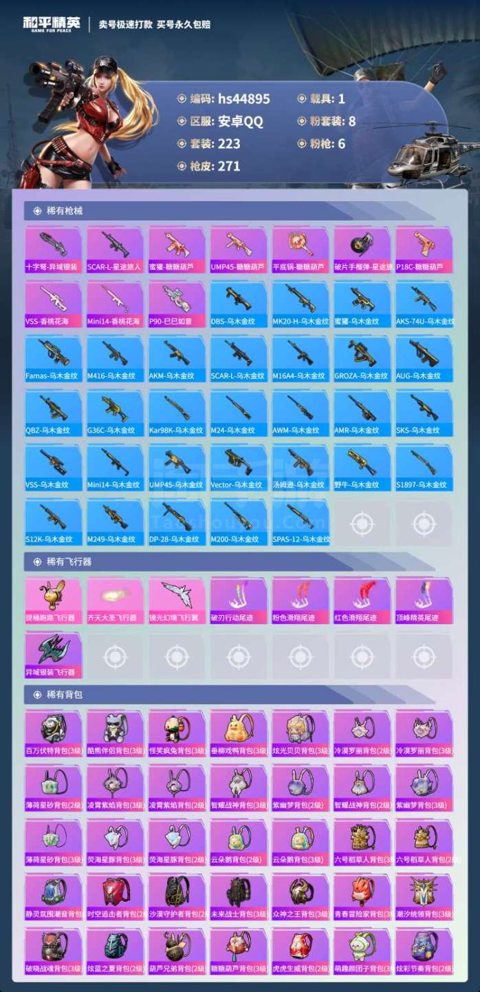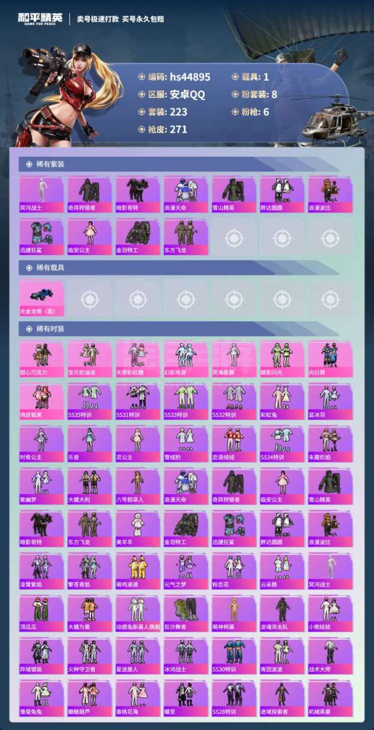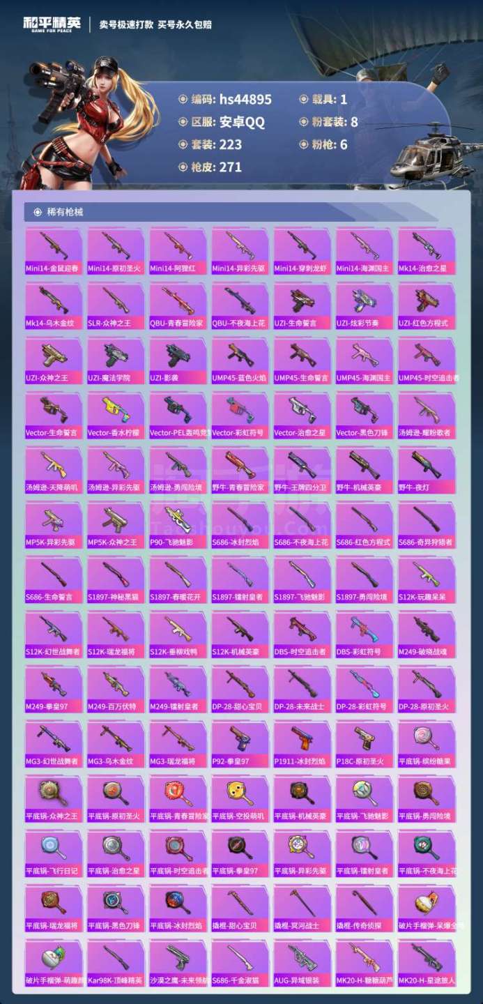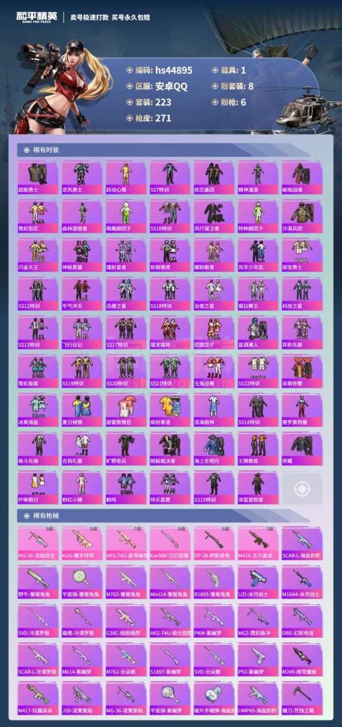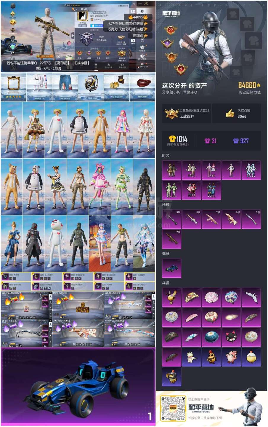 hs44895 苹果手Q-22王牌印记-有战神框-8粉装-6特效枪-1载具-84828热力值-223