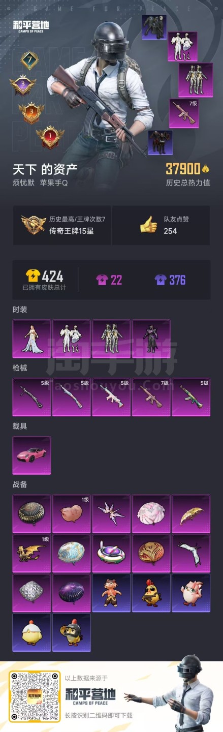 hs44976 苹果手Q-7王牌印记-4粉装-5特效枪-1载具-37905热力值-82套装-117枪