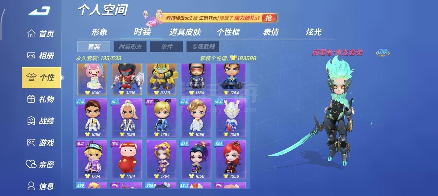 3个星耀,好多328皮肤,夜骑士,兔先生,欧布剑,像素剑,贝利亚蹦蹦枪