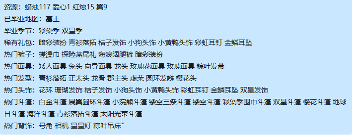稀有礼包:暗彩装扮 青衫落拓 桔子发饰 小狗头饰 小黄鸭头饰 彩虹耳钉 金鳞耳坠