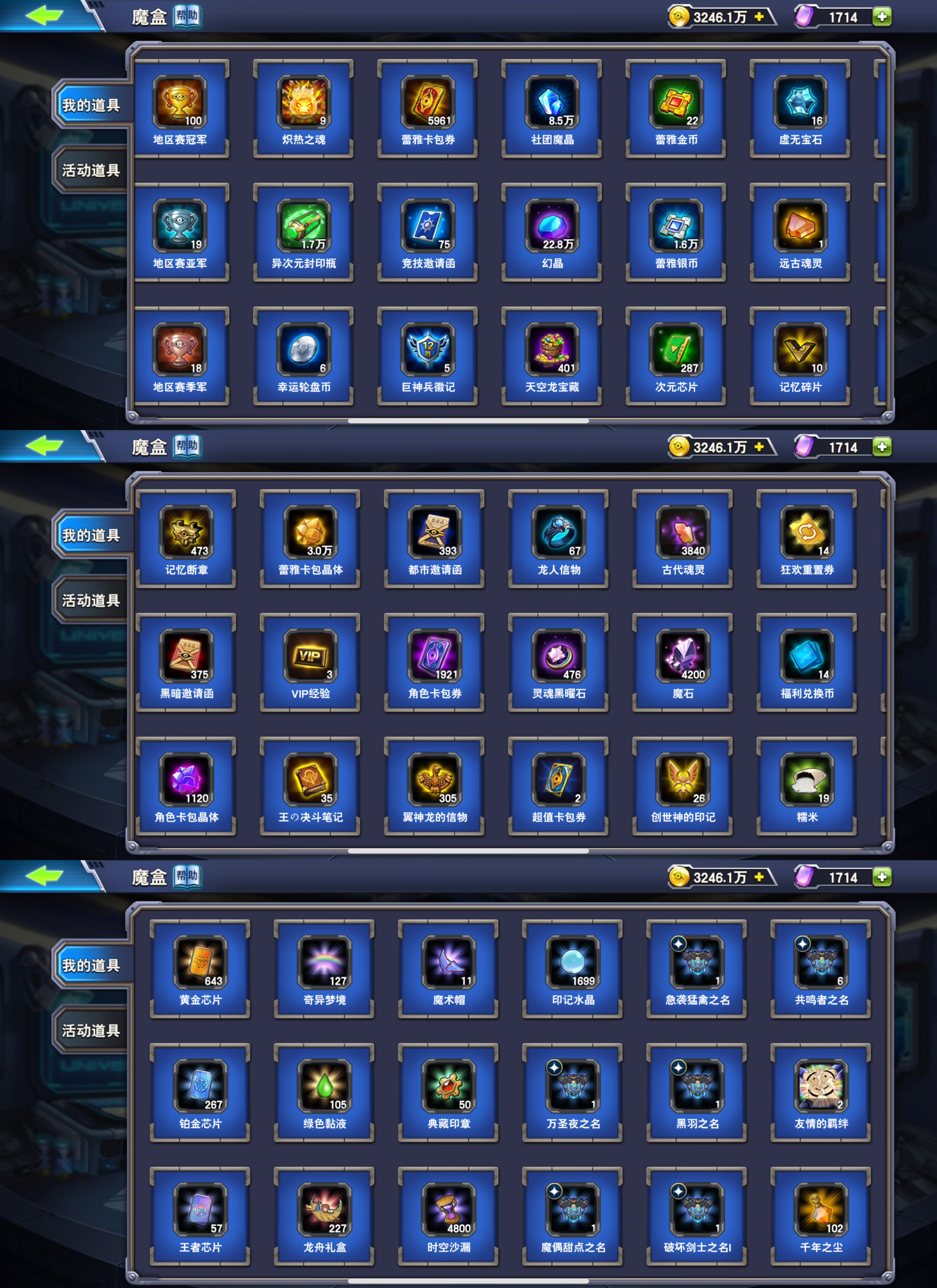 特权1/2/3,黑神,冥神,2前托枪管,100金杯区霸v8,顶配三国一卡不差有2曹操2鲁肃孙权1赵云。2前托枪管满枪管弹丸。顶配海晶削卡2海晶大姐1珊瑚,满狂欢贴贴1贴贴索菲娅,3千万金币,DD印记等