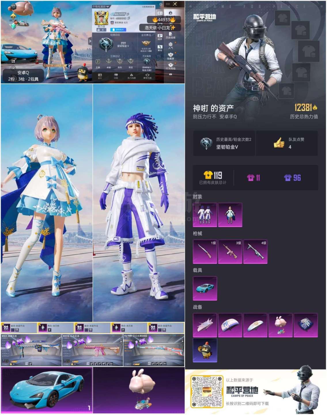 hs44933 安卓手Q-0王牌印记-2粉装-3特效枪-1载具-12474热力值-15套装-40枪皮