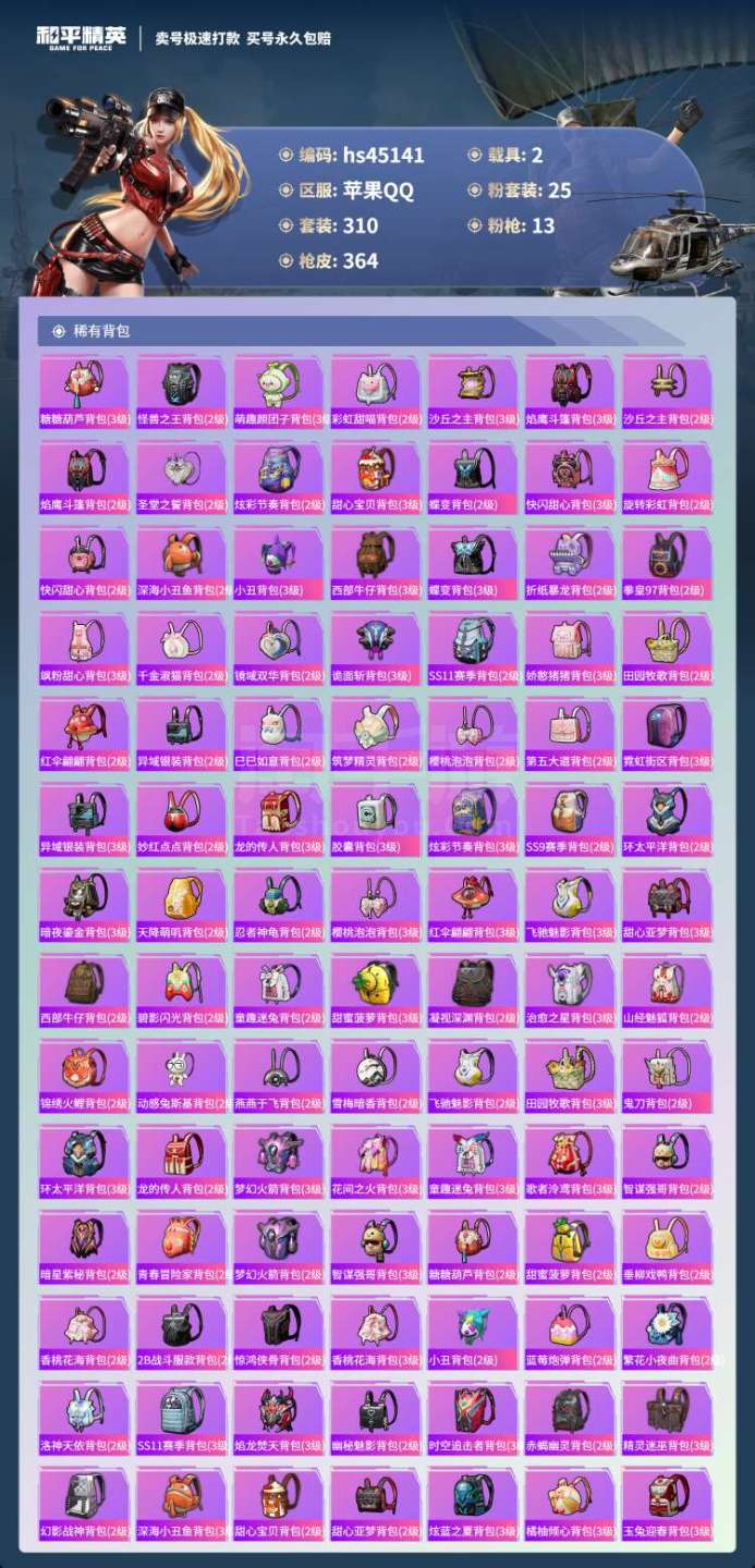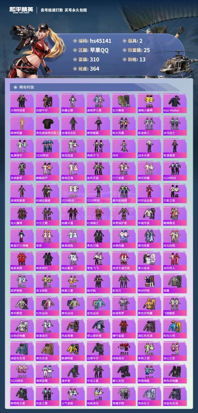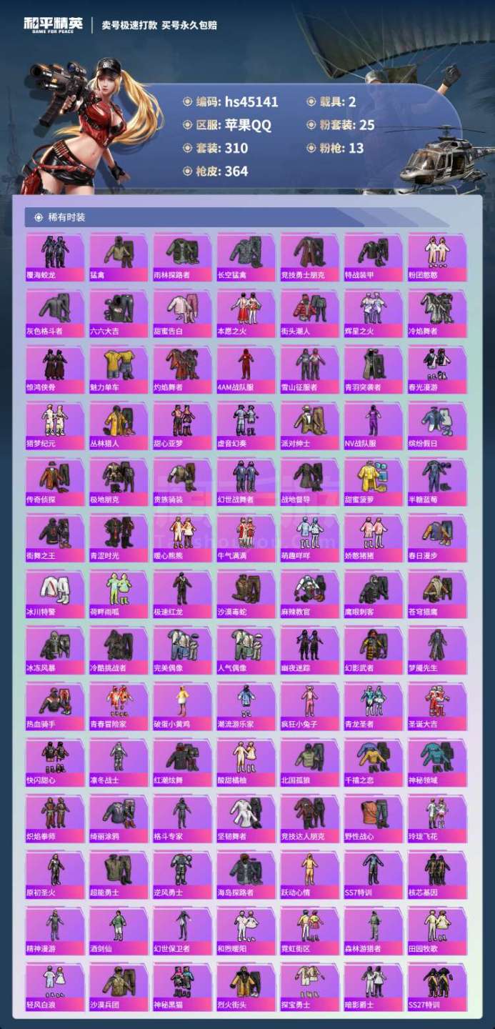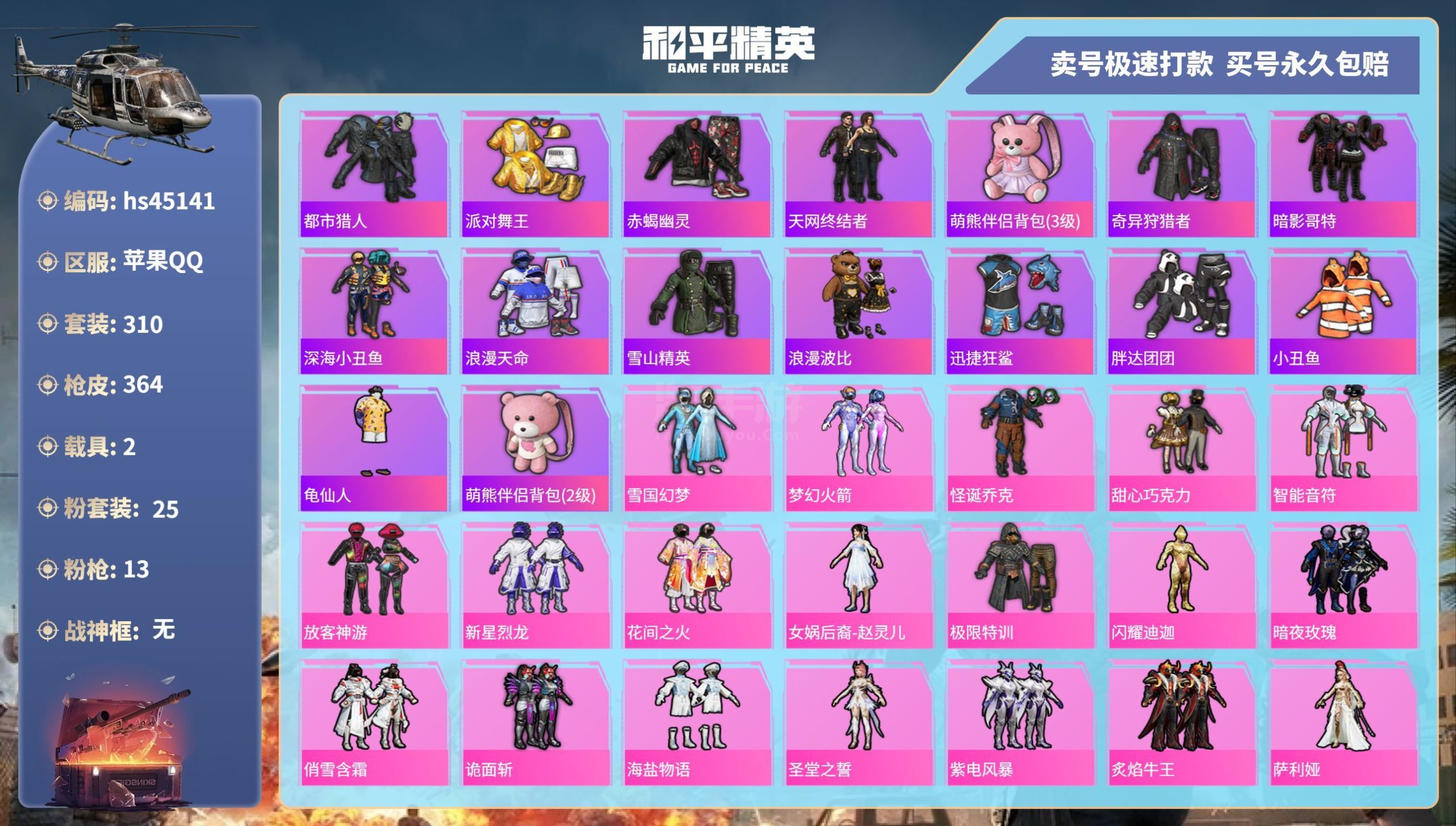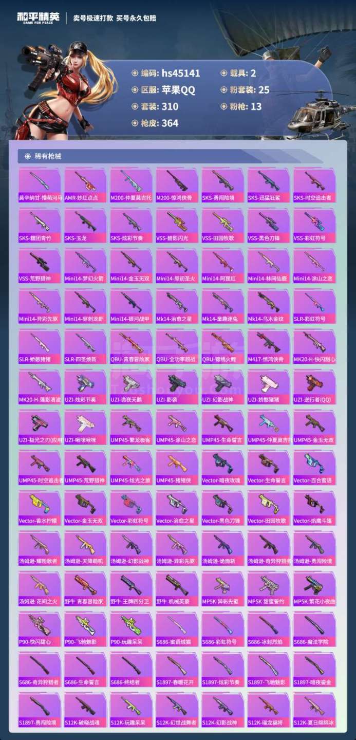 hs45141 苹果手Q-16王牌印记-25粉装-13特效枪-2载具-133569热力值-310套装