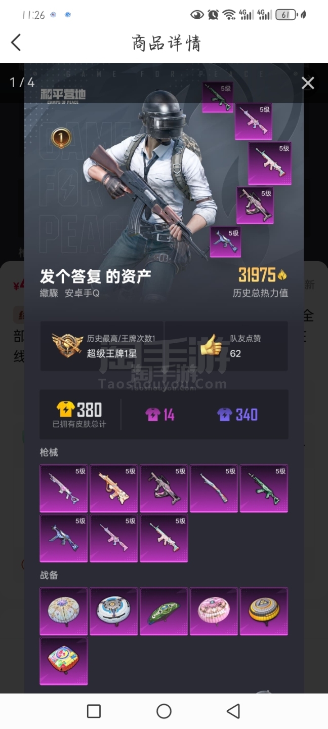 和平精英【安卓QQ】有8把升级枪,而且都是满级。
