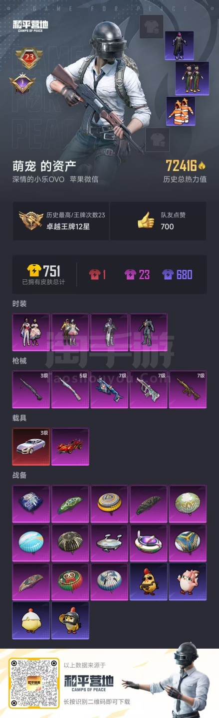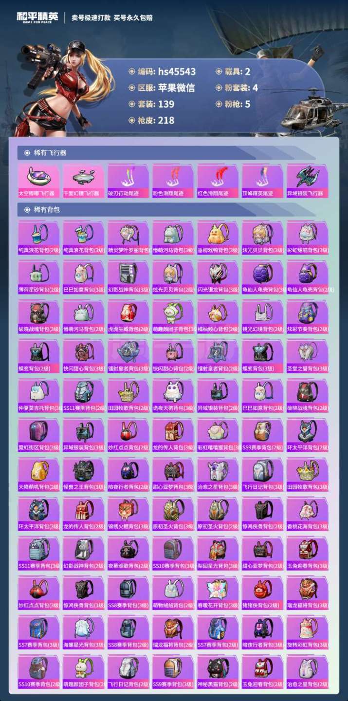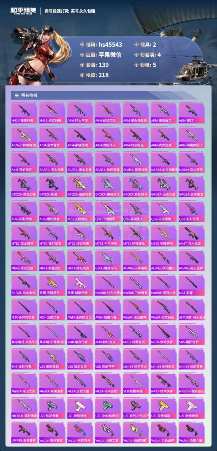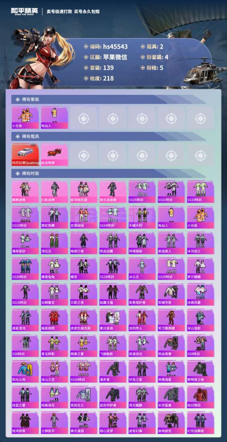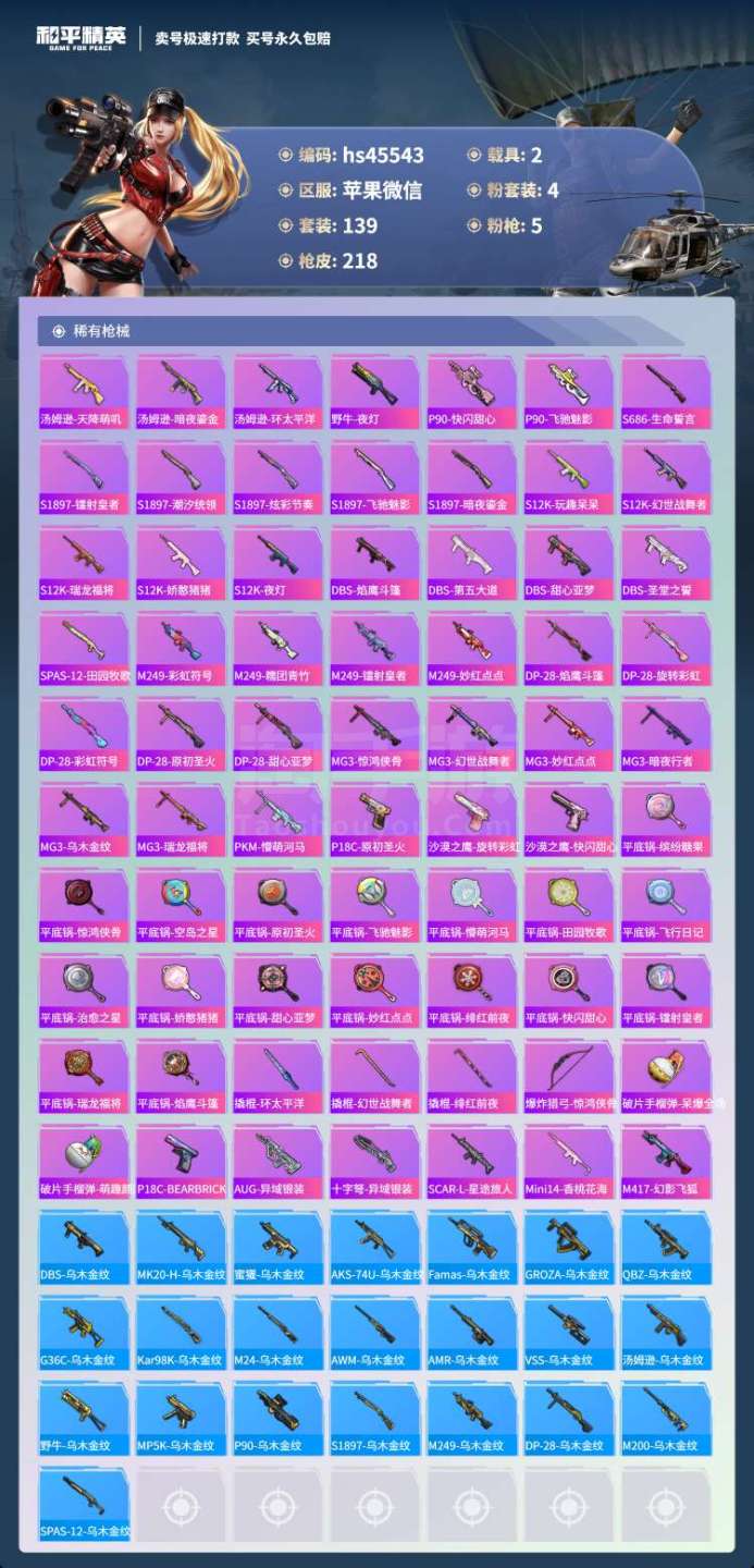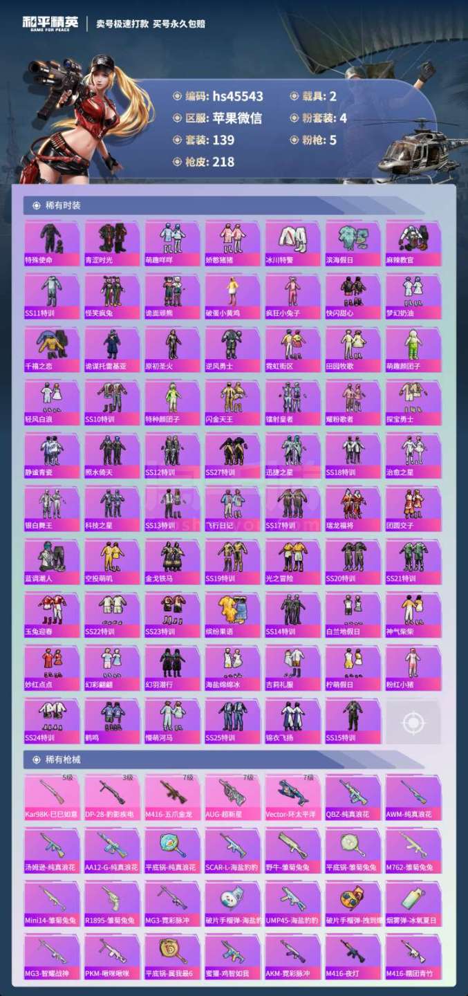 hs45543 苹果微-23王牌印记-4粉装-5特效枪-2载具-72464热力值-139套装-21