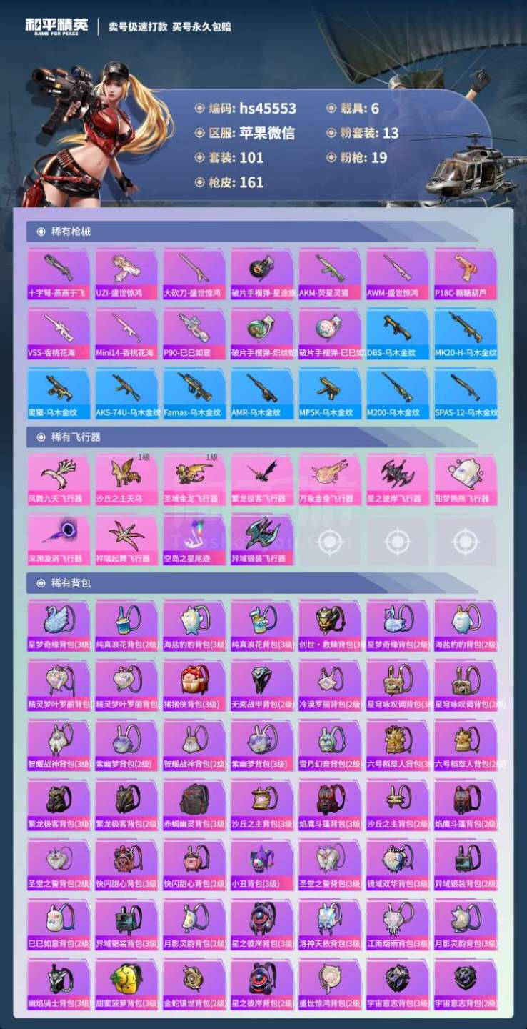 hs45553 苹果v-9王牌印记-13粉装-19特效枪-6载具-71707热力值-101套装-1