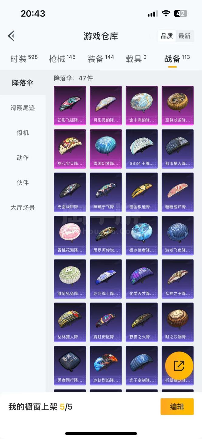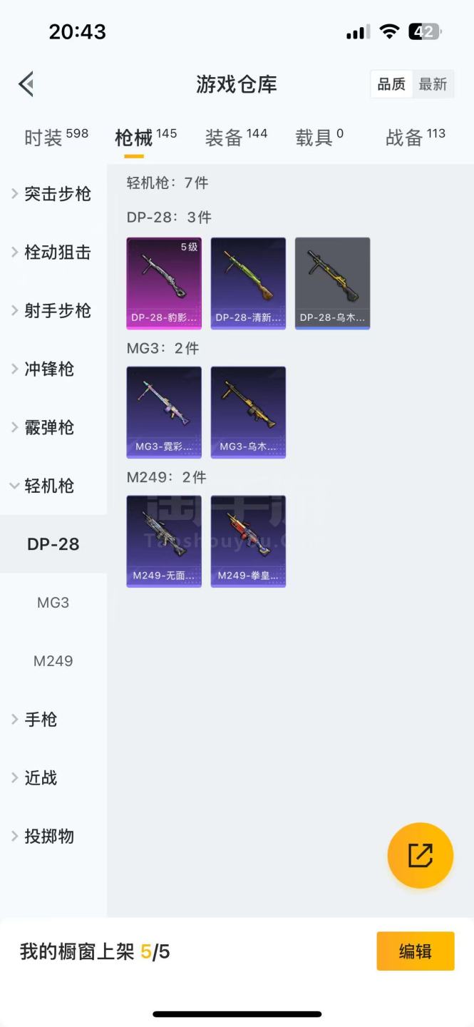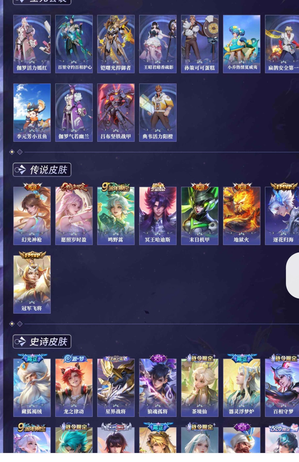 3把粉色升级枪 3套粉装 很多热门紫色套装 王者连体号 8套传说 1套荣耀典藏 皮肤太多了不拍了