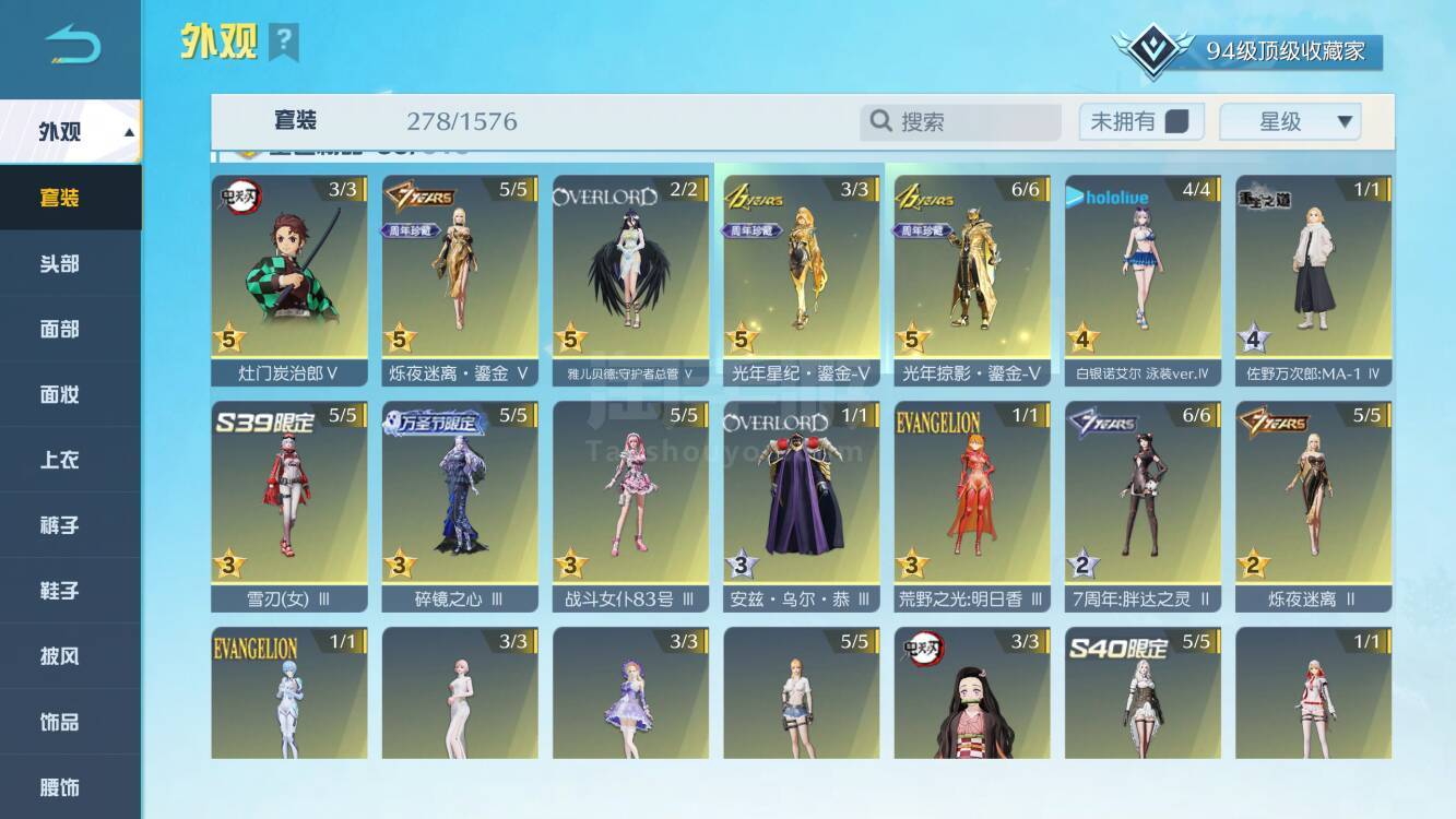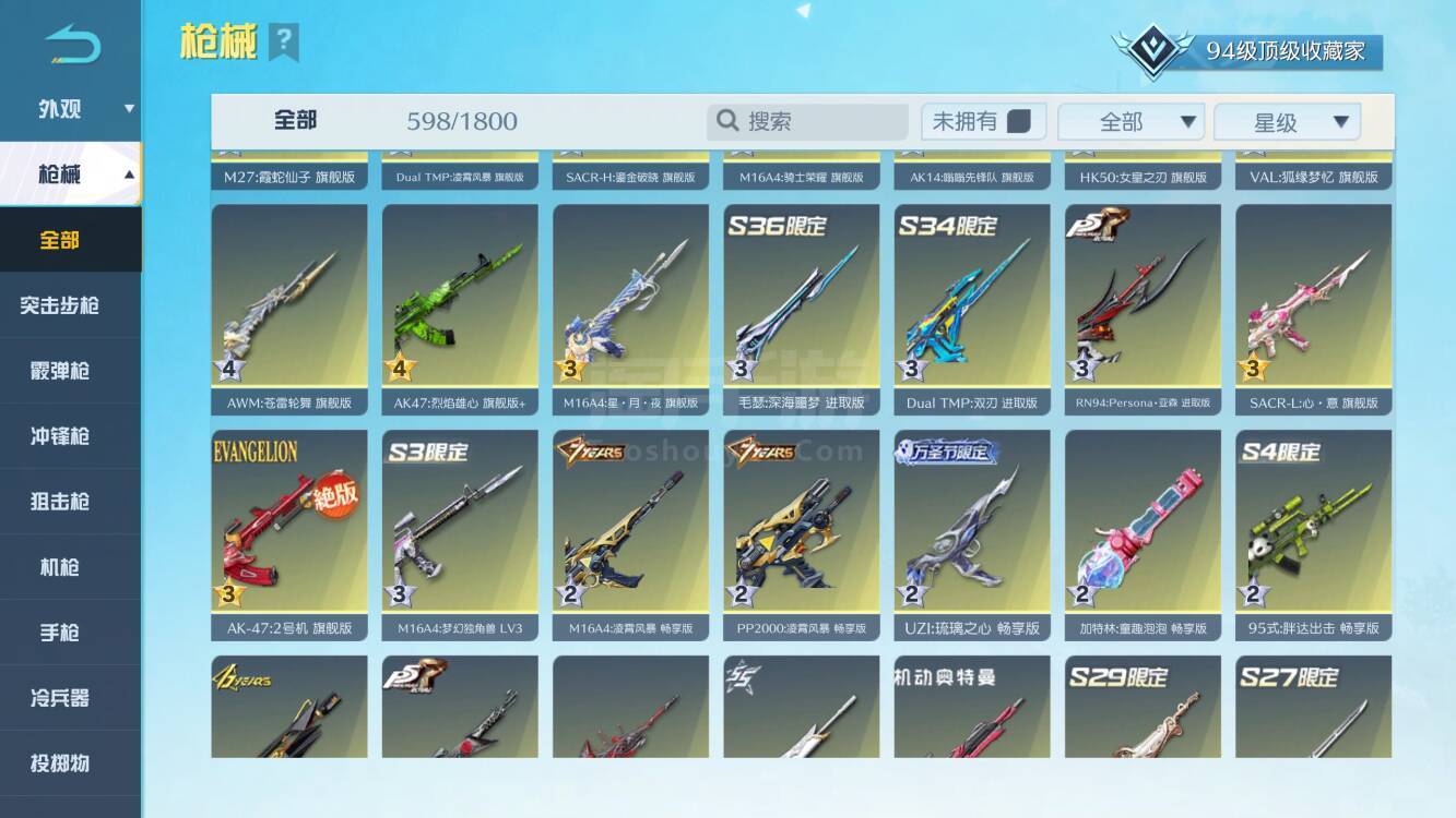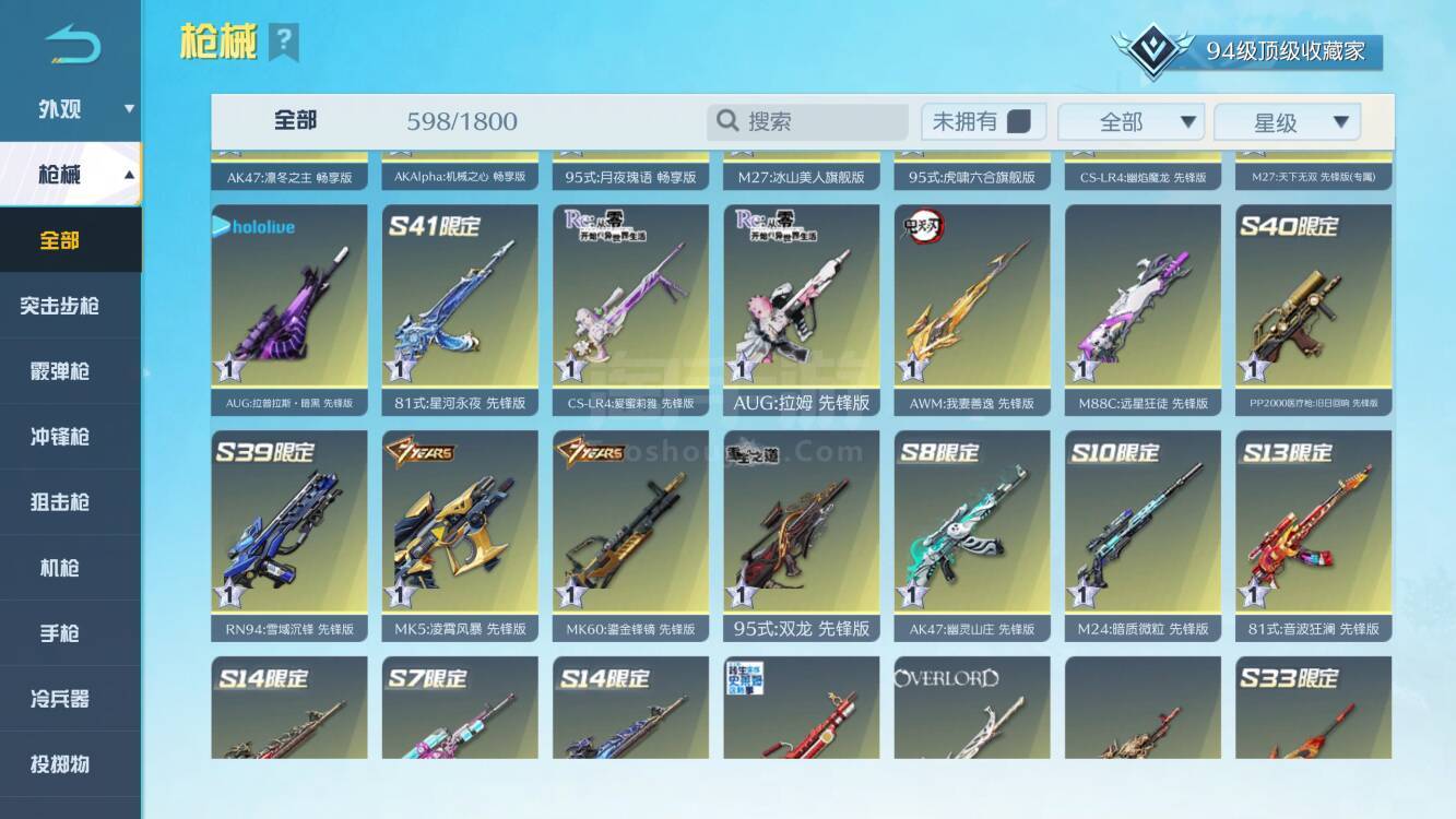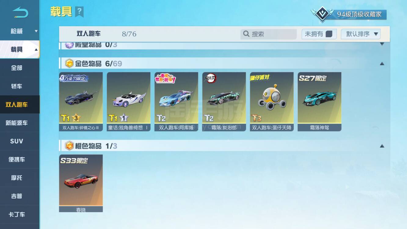 一个殿堂水晶,周年庆m4,95式很多满级枪,t1双跑,周年庆满级轿车,t1油车,多款满级击杀音效衣服