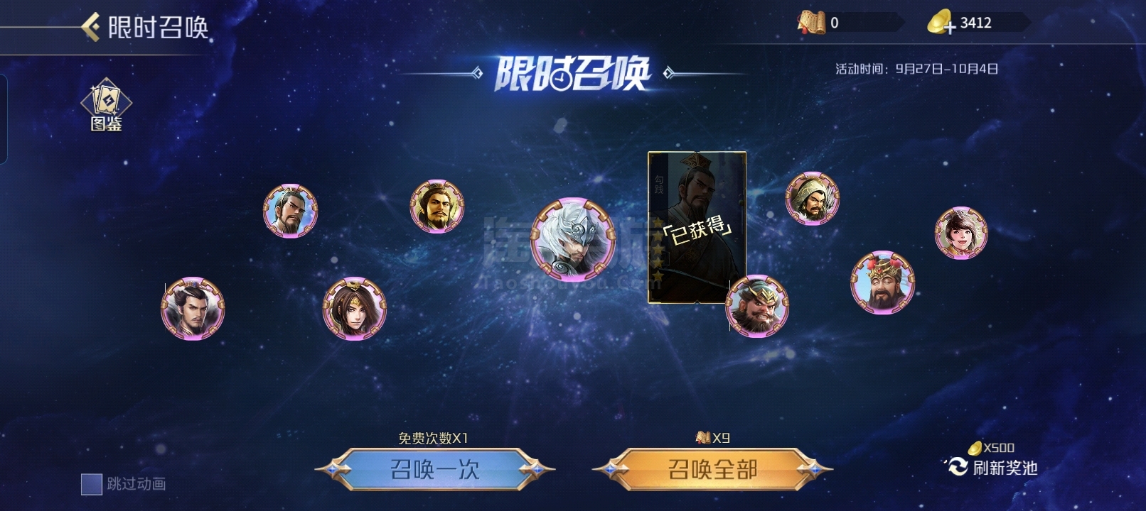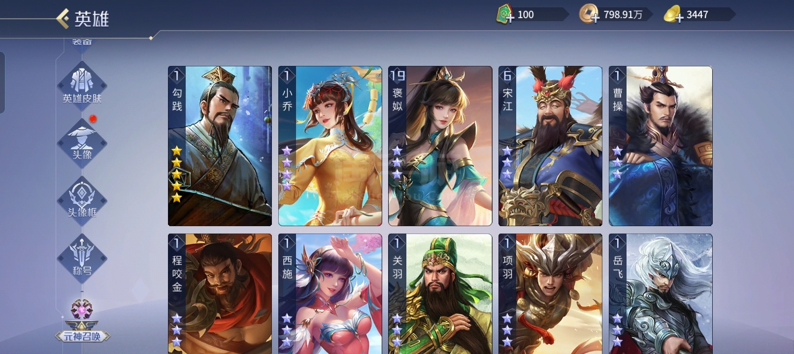英雄杀【安卓QQ】五星勾践五星自选一个,2个4星和3星自选