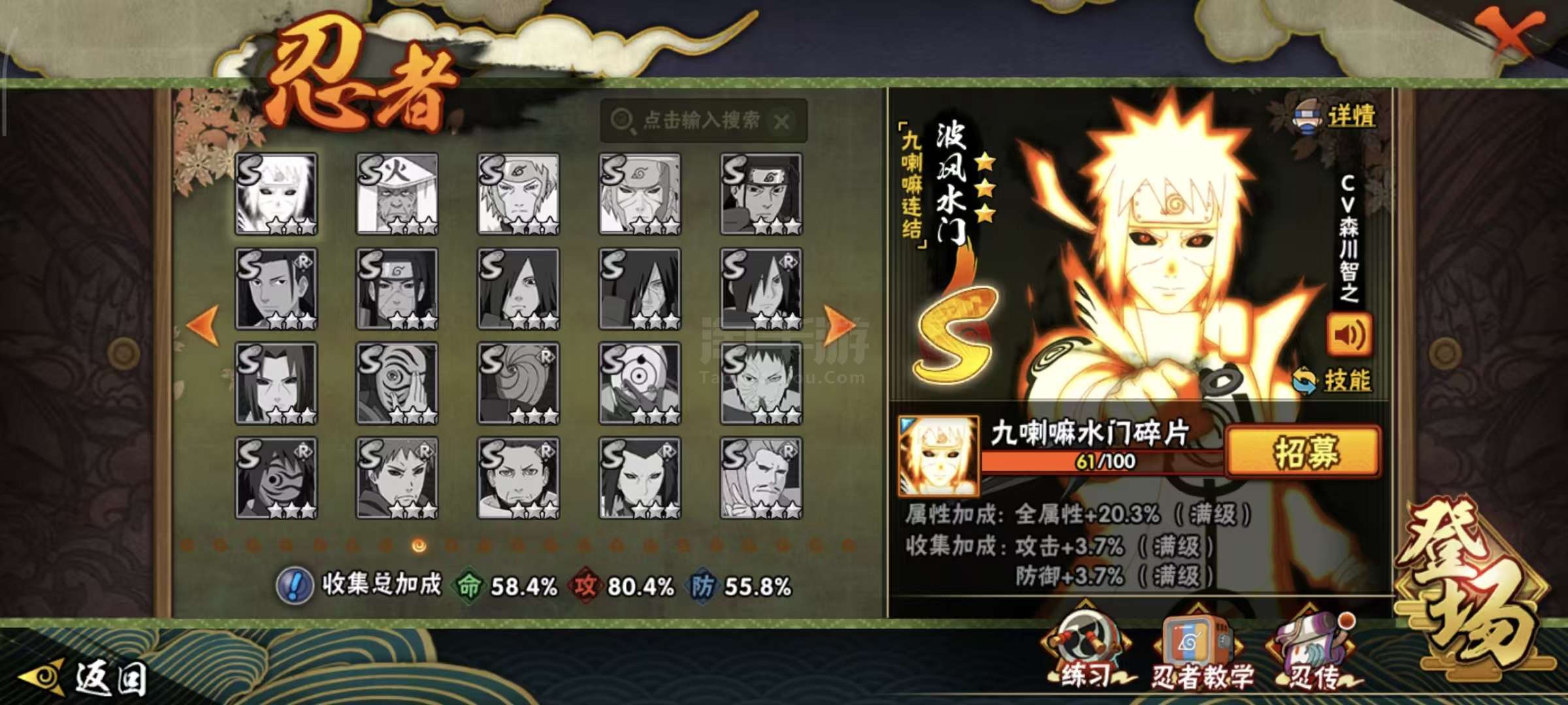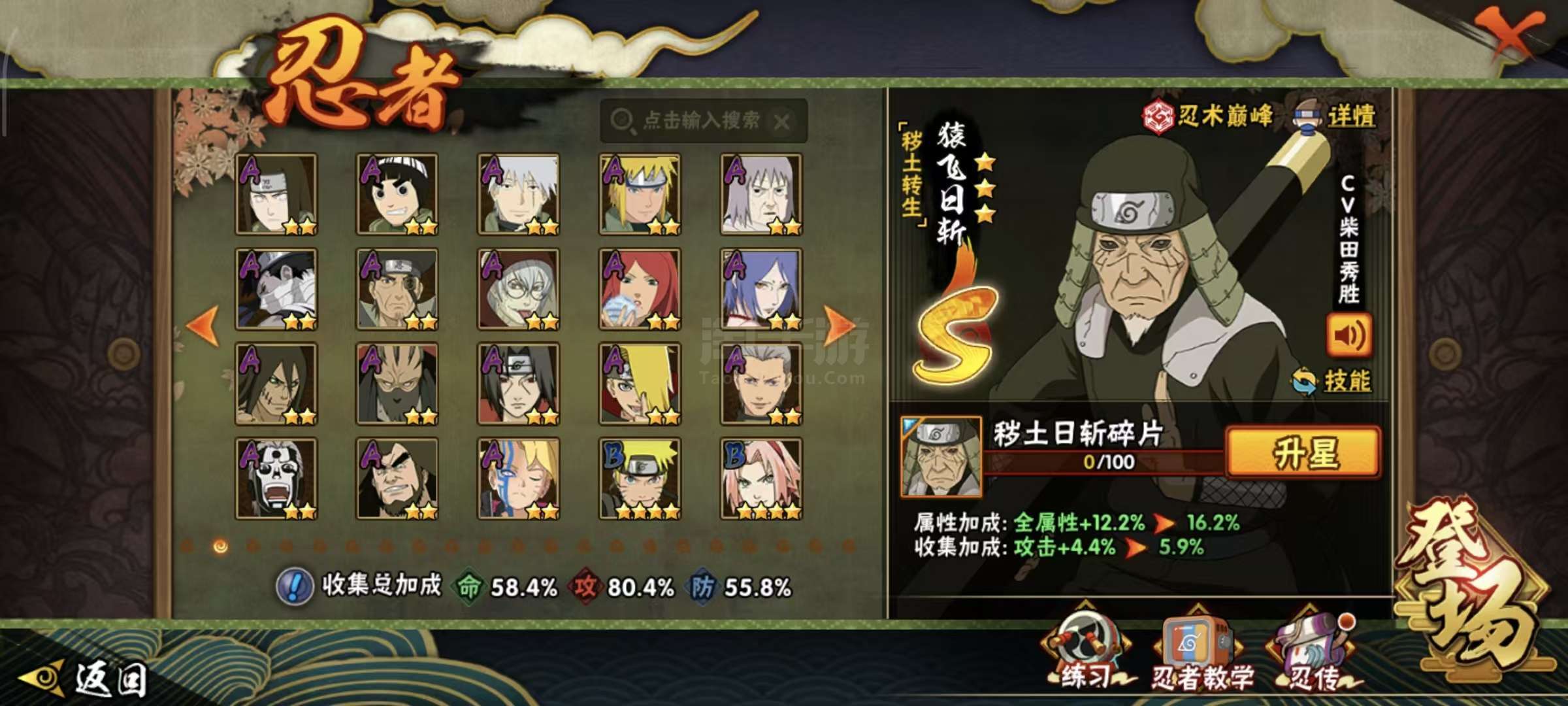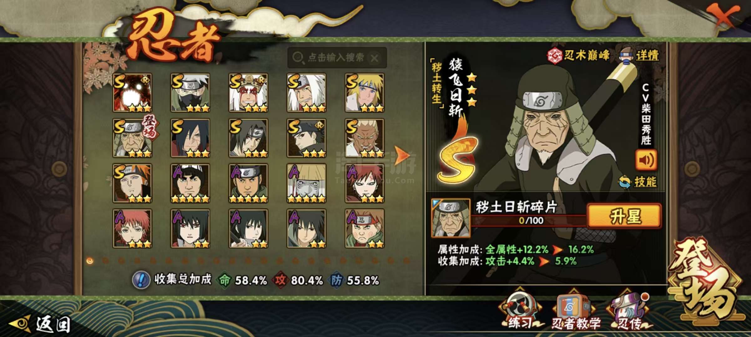 火影忍者【安卓QQ】11s,27a,金币还有1w,舍人92片,阴水门61