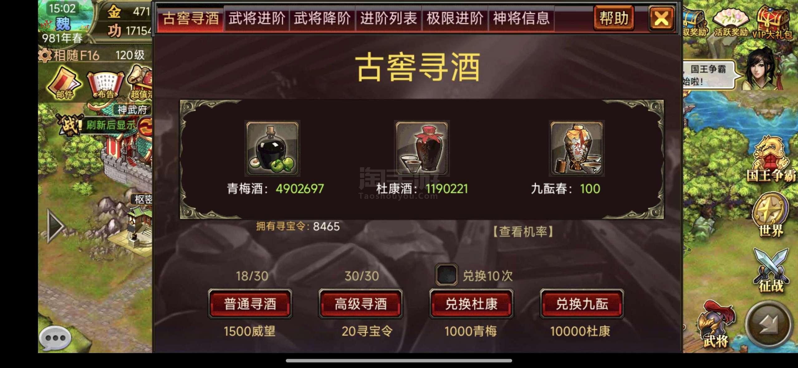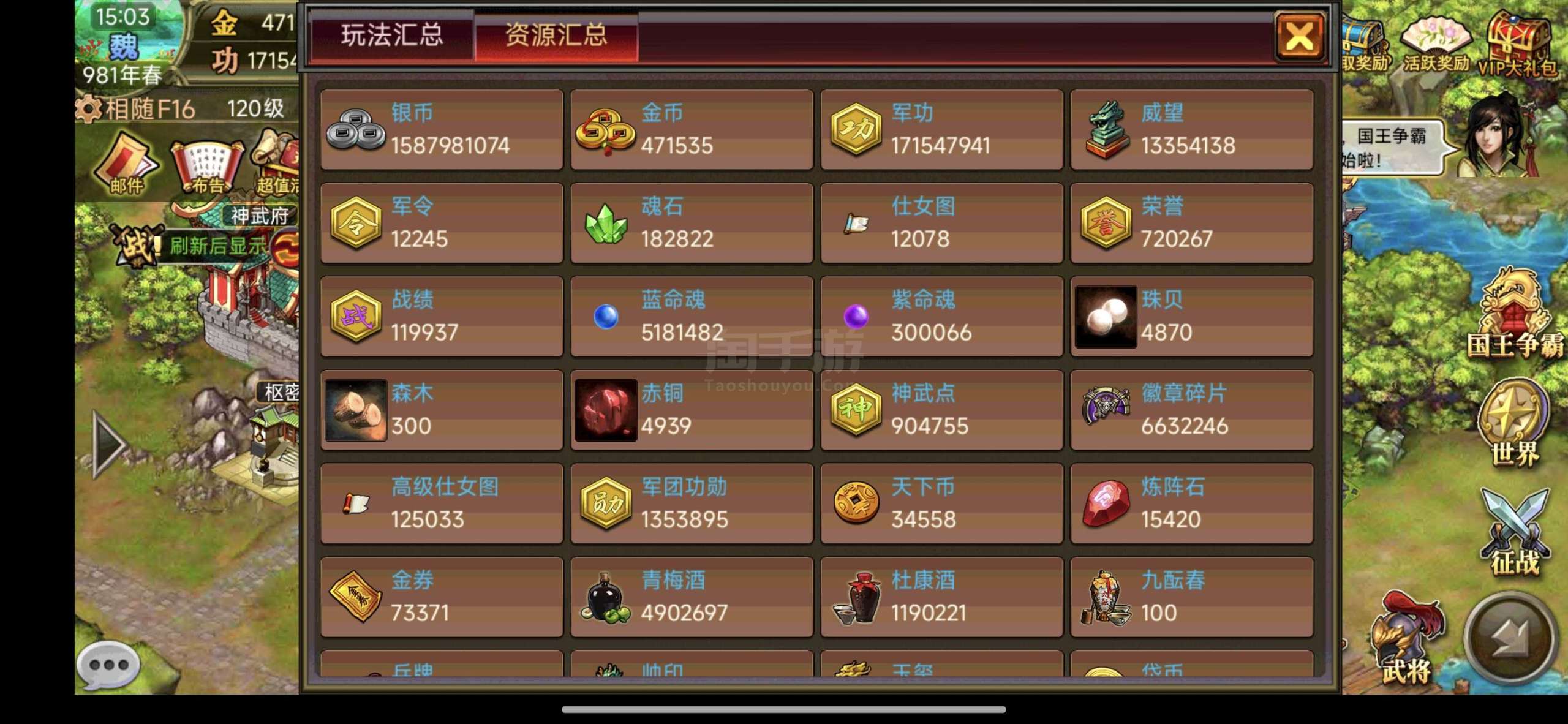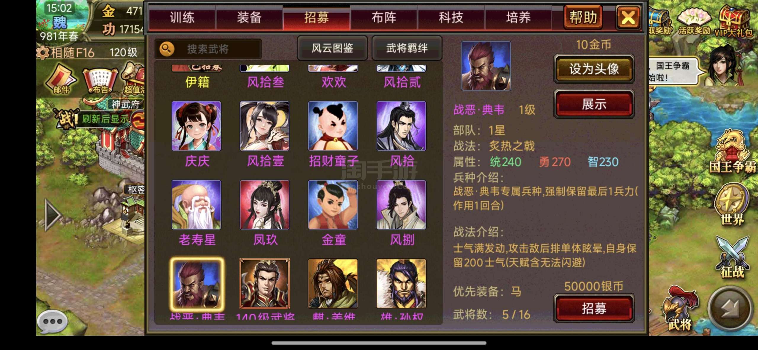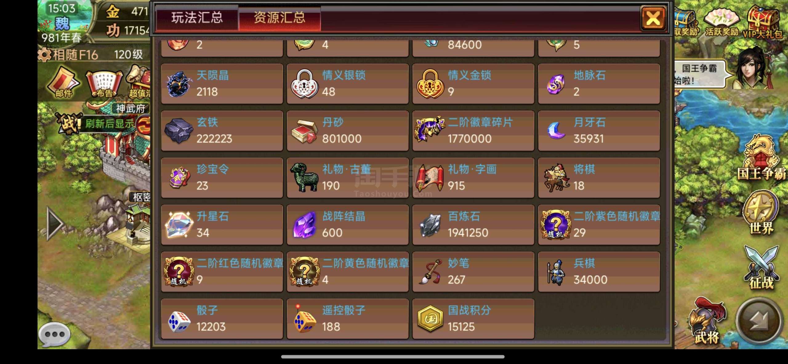 风云天下OL【安卓官方】还价勿扰,金47万,酒很多资源好,自带战恶典韦外加神将宝箱,夷陵势力