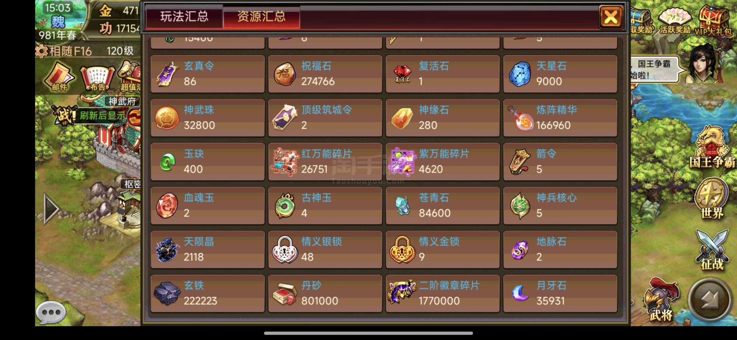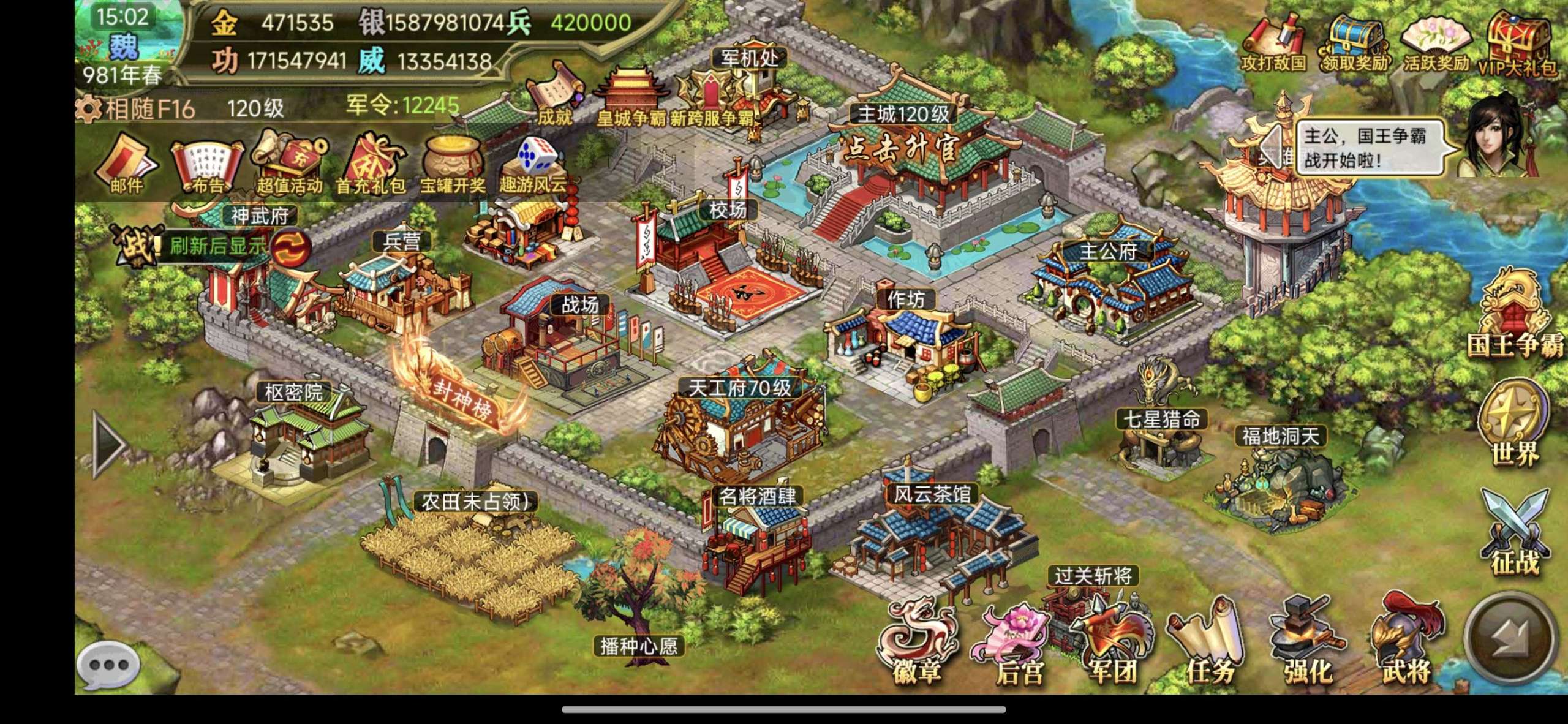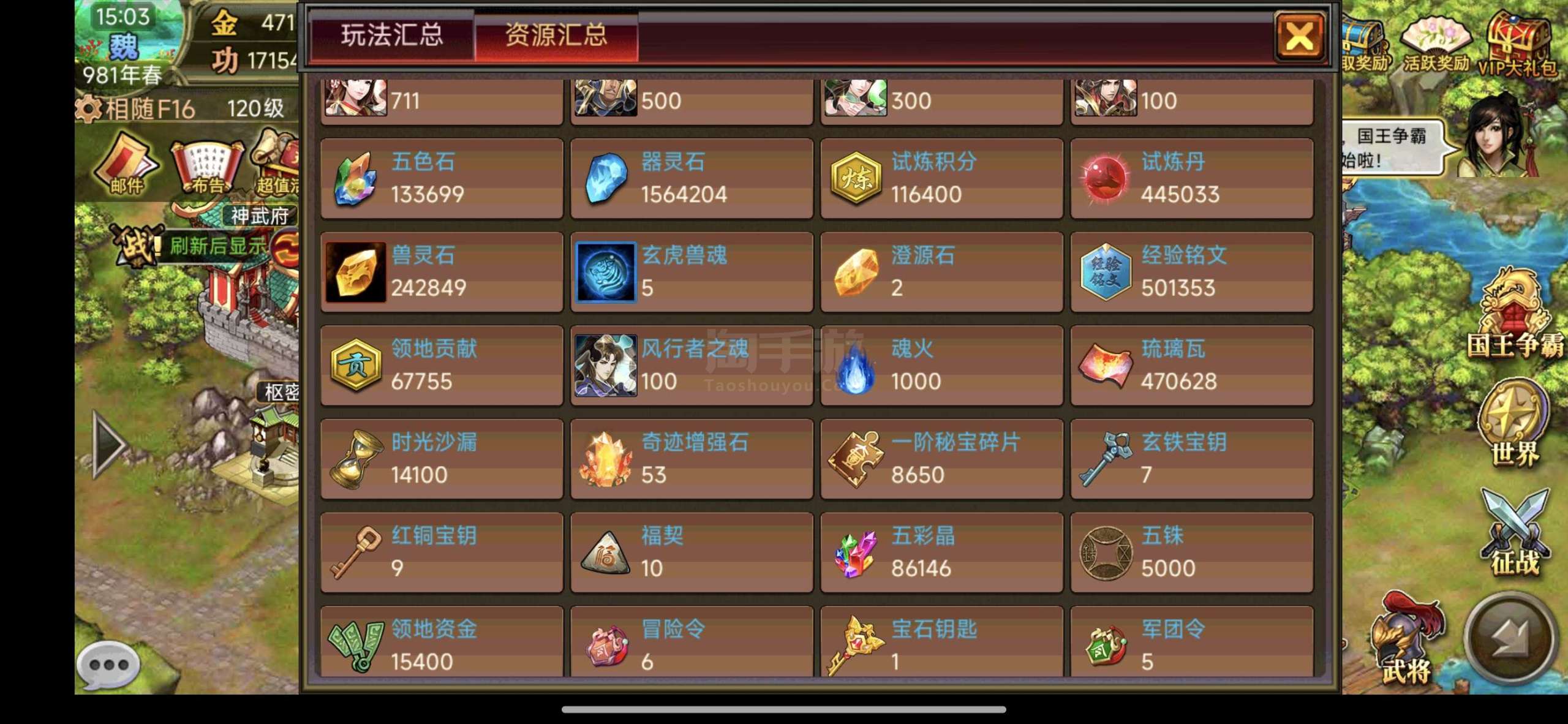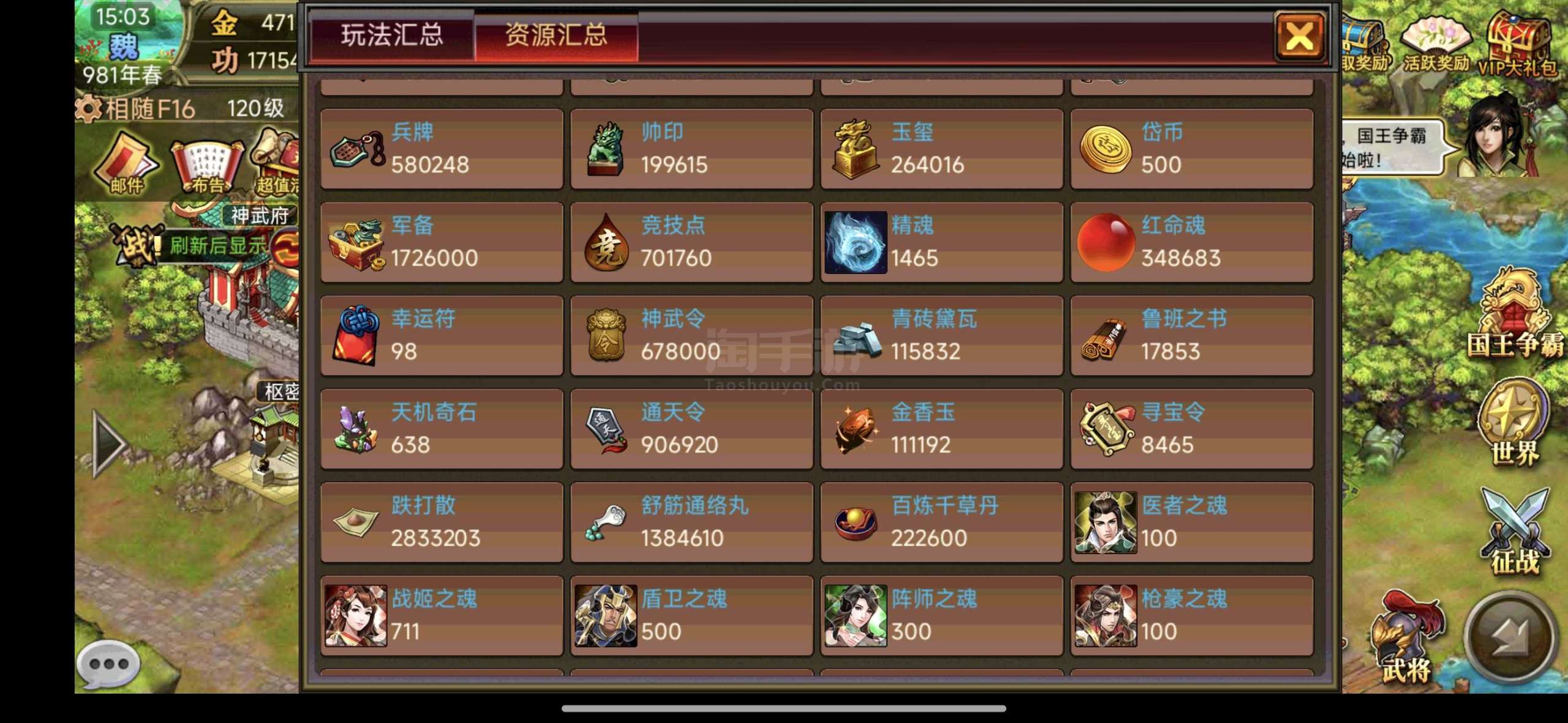 风云天下OL【安卓官方】还价勿扰,金47万,酒很多资源好,自带战恶典韦外加神将宝箱,夷陵势力