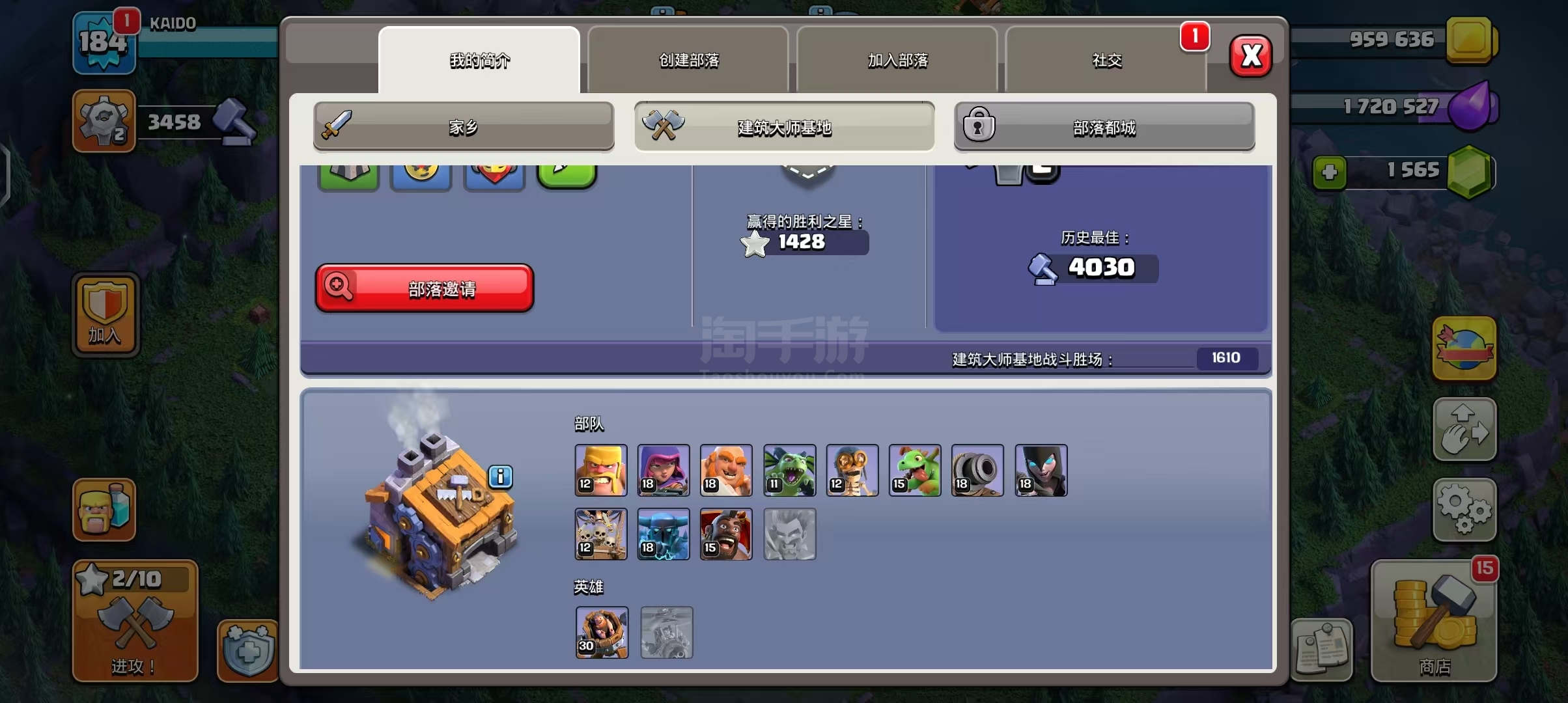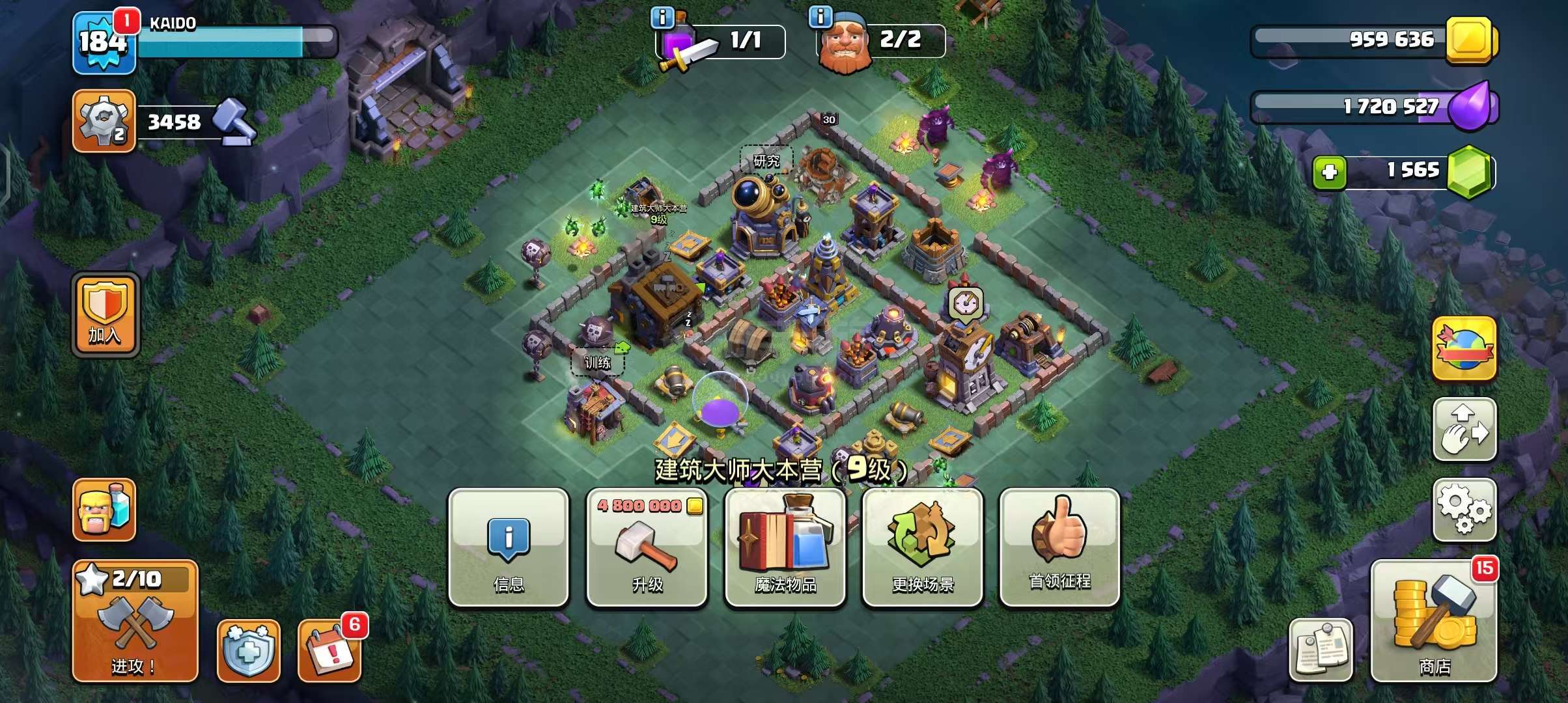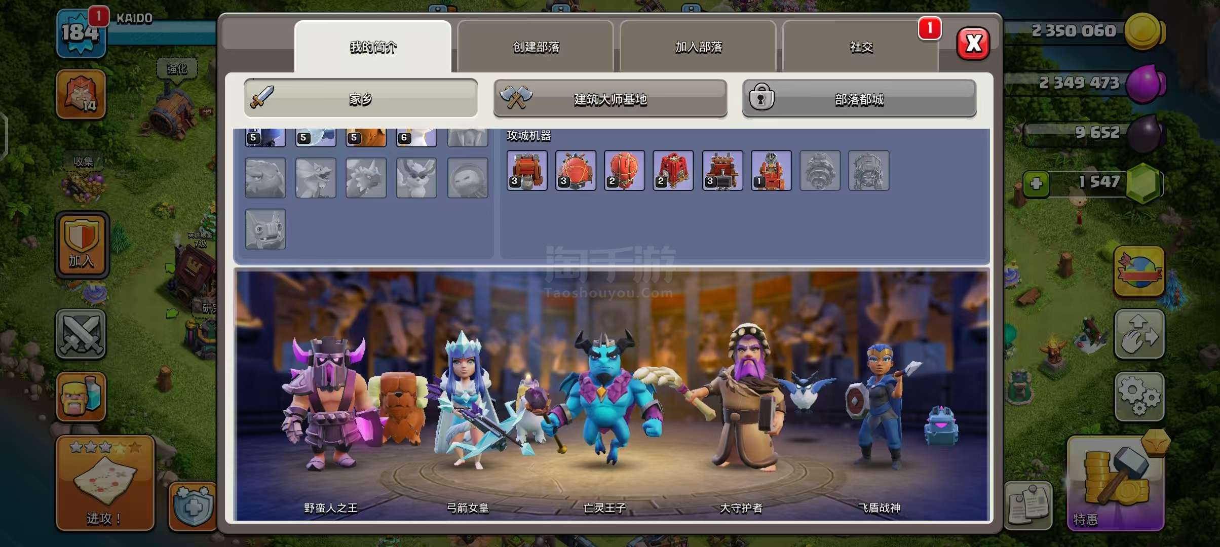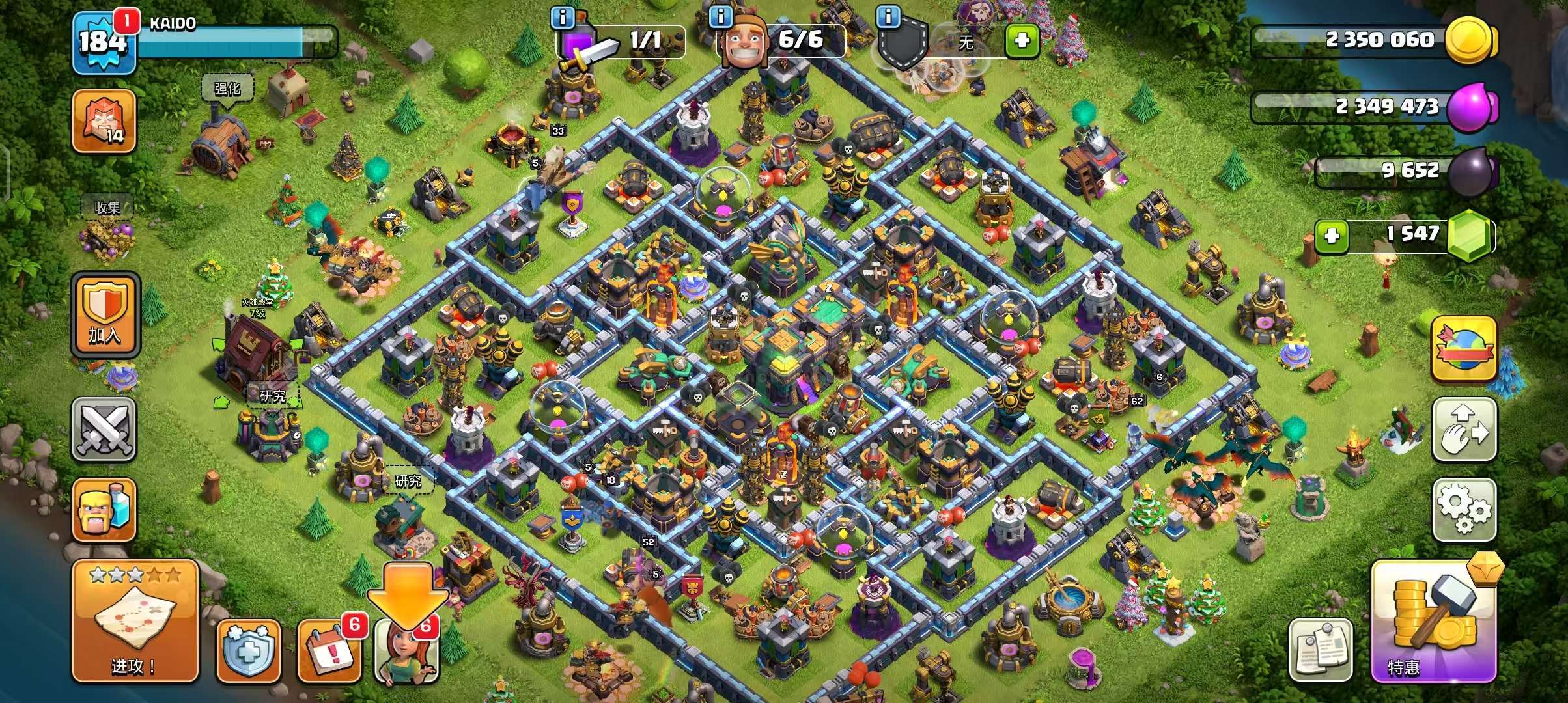 部落冲突国际服14本184级6农女皇62 蛮王52 亡40 守护33级 盾王18级4英雄皮肤 1