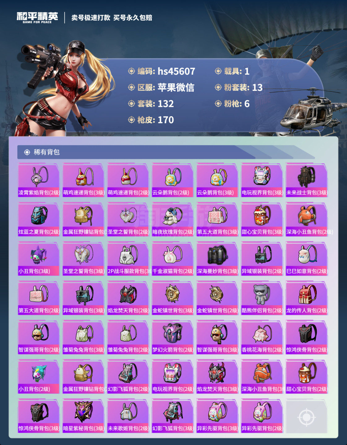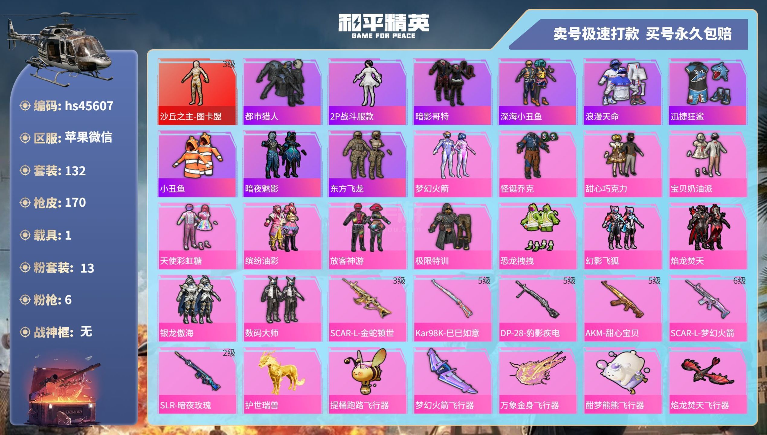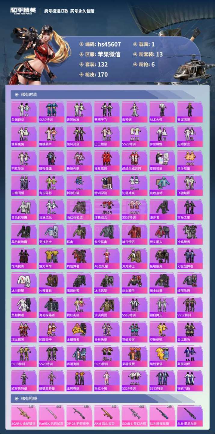 hs45607 苹果v-8王牌印记-13粉装-6特效枪-1载具-59783热力值-132套装-17