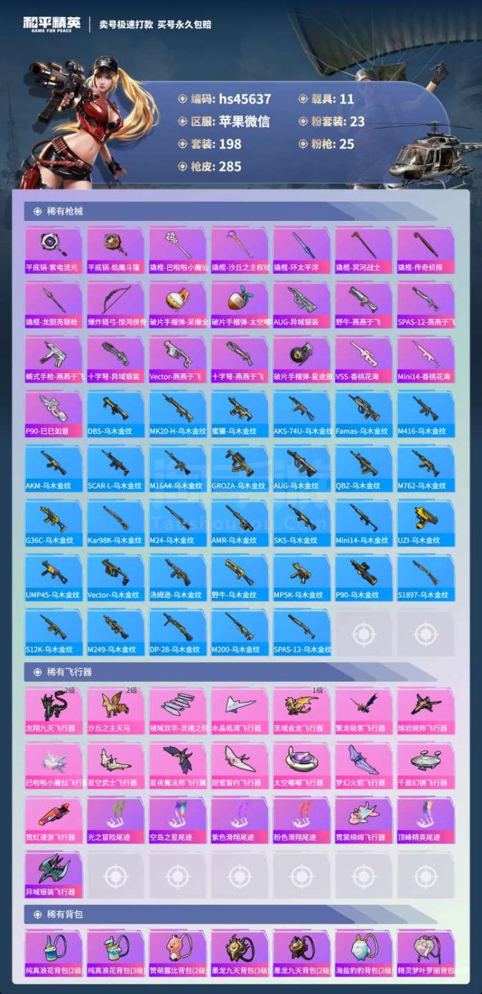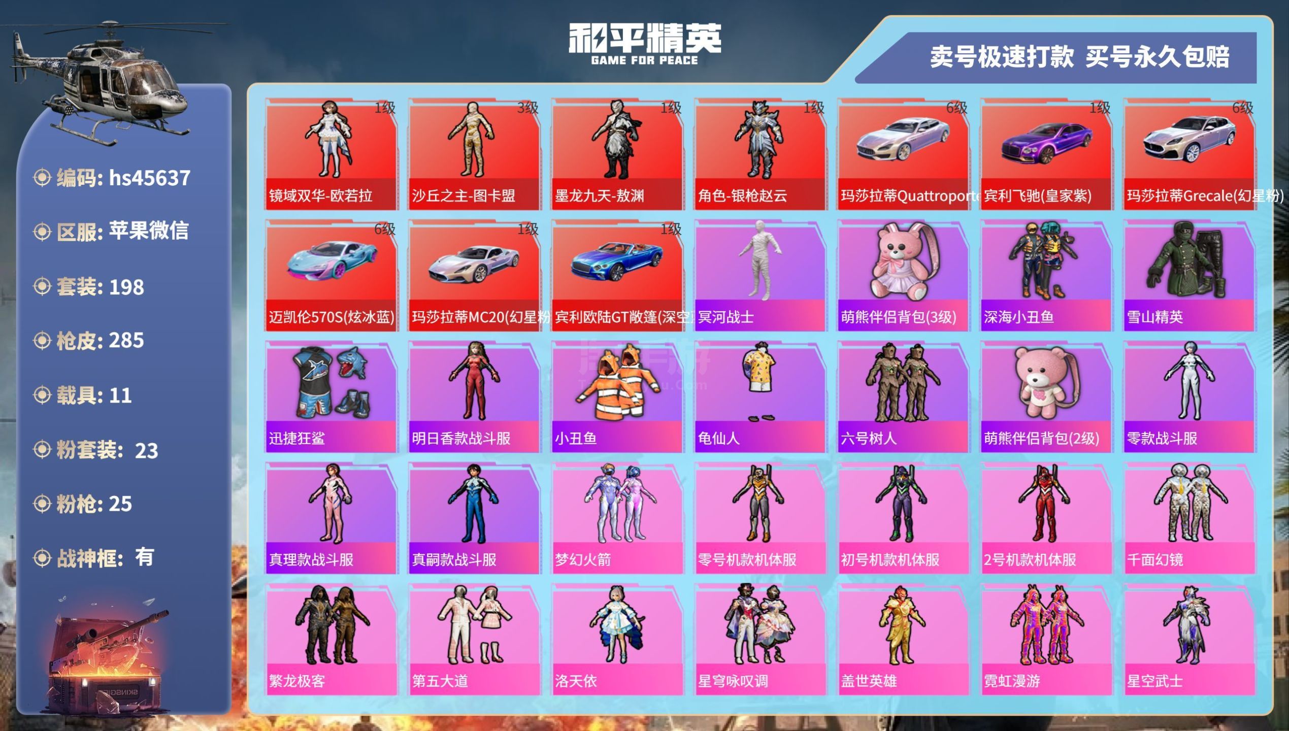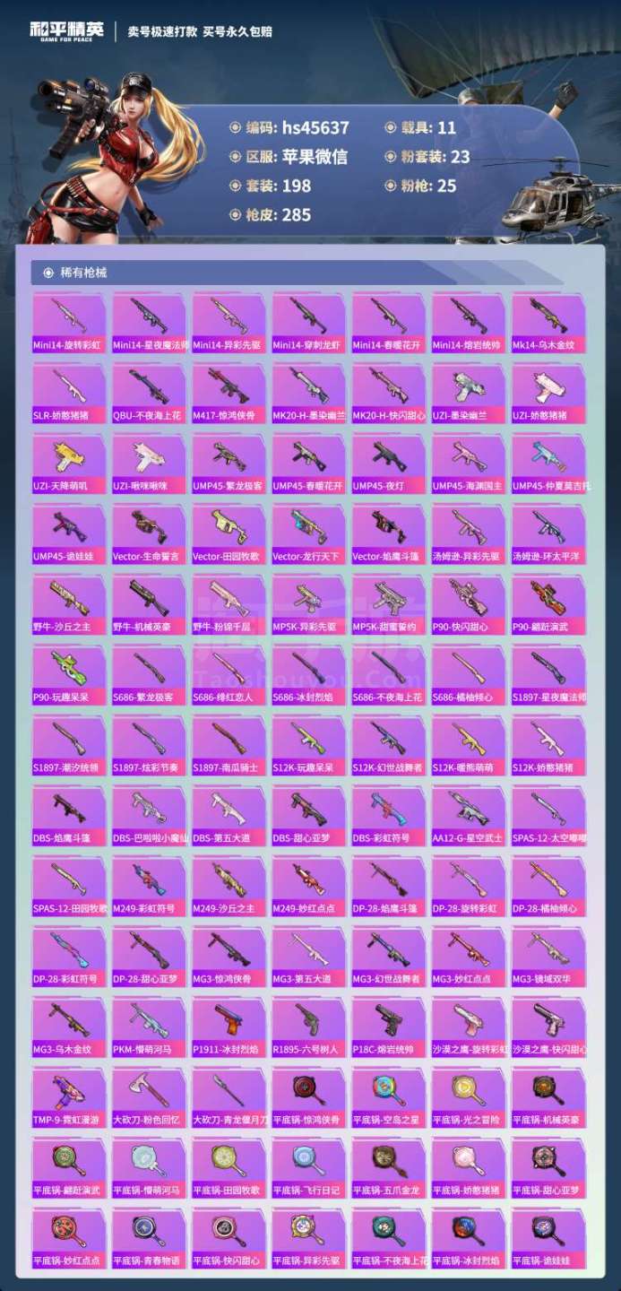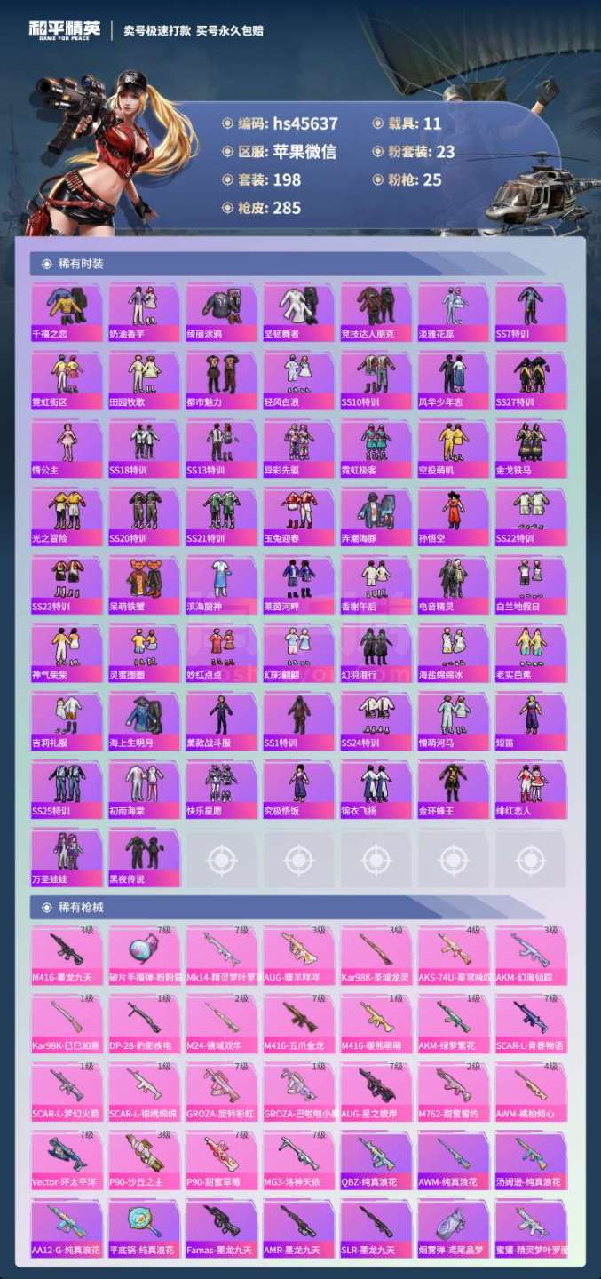 hs45637 苹果微-23王牌印记-有战神框-23粉装-25特效枪-11载具-157889热力值