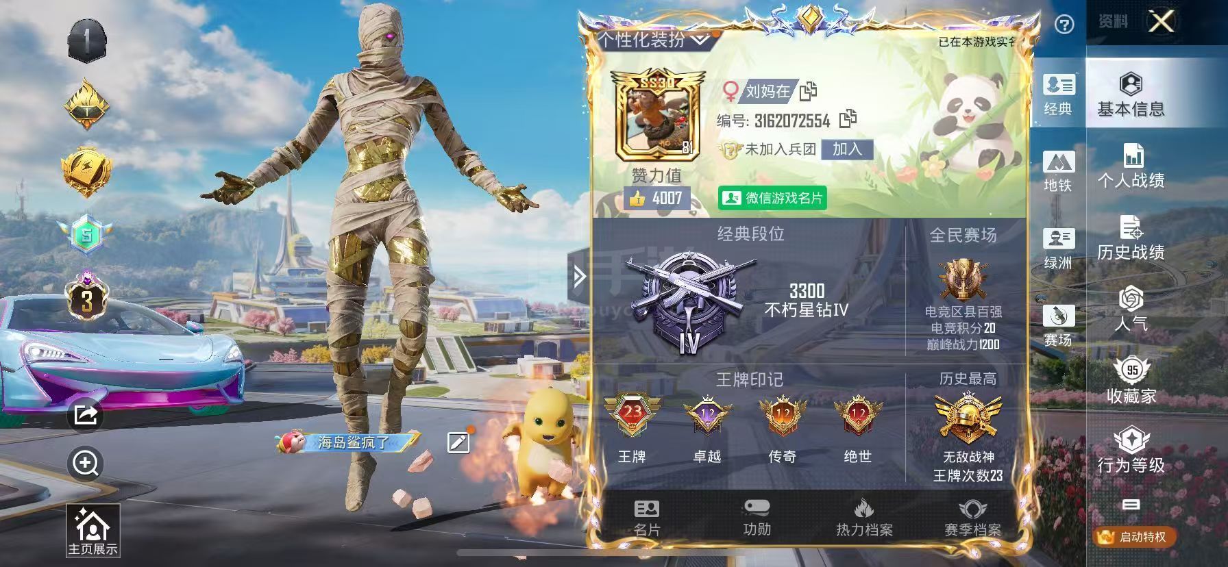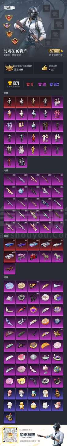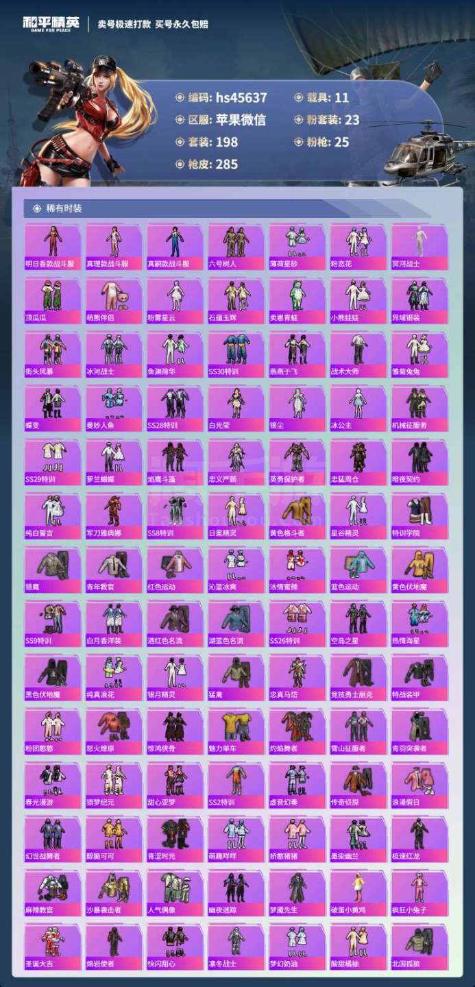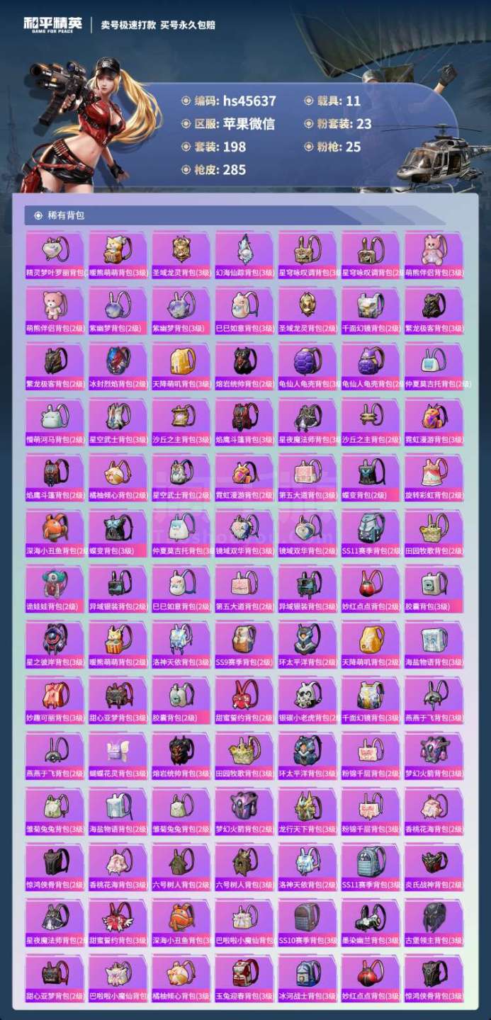 hs45637 苹果微-23王牌印记-有战神框-23粉装-25特效枪-11载具-157889热力值