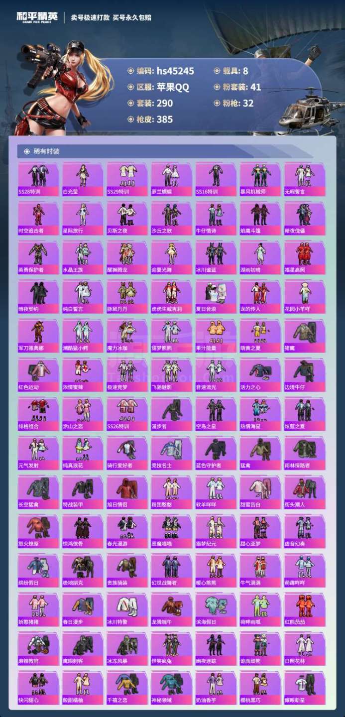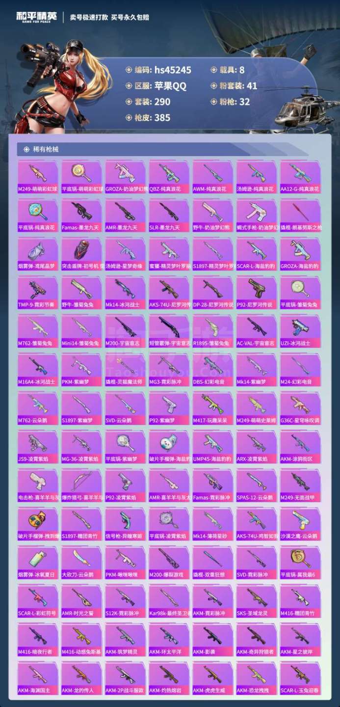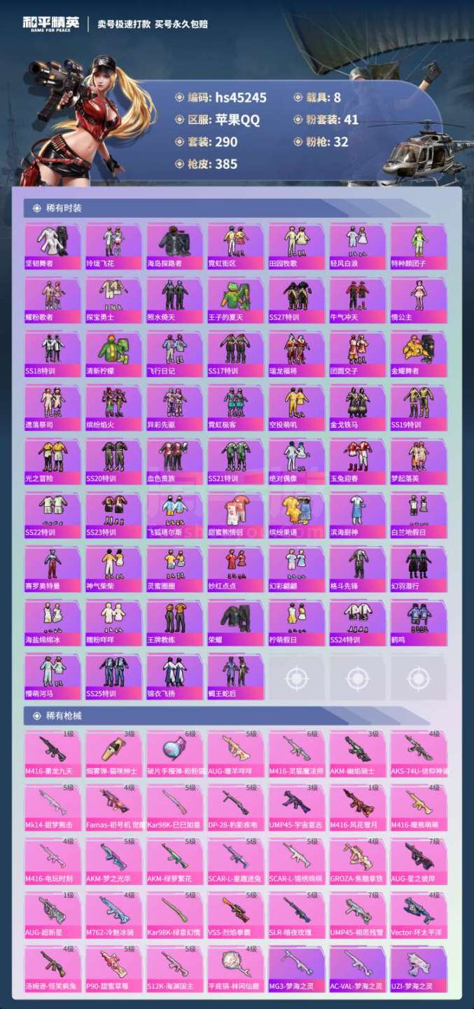 hs45245 苹果手Q-19王牌印记-41粉装-32特效枪-8载具-166706热力值-290套装