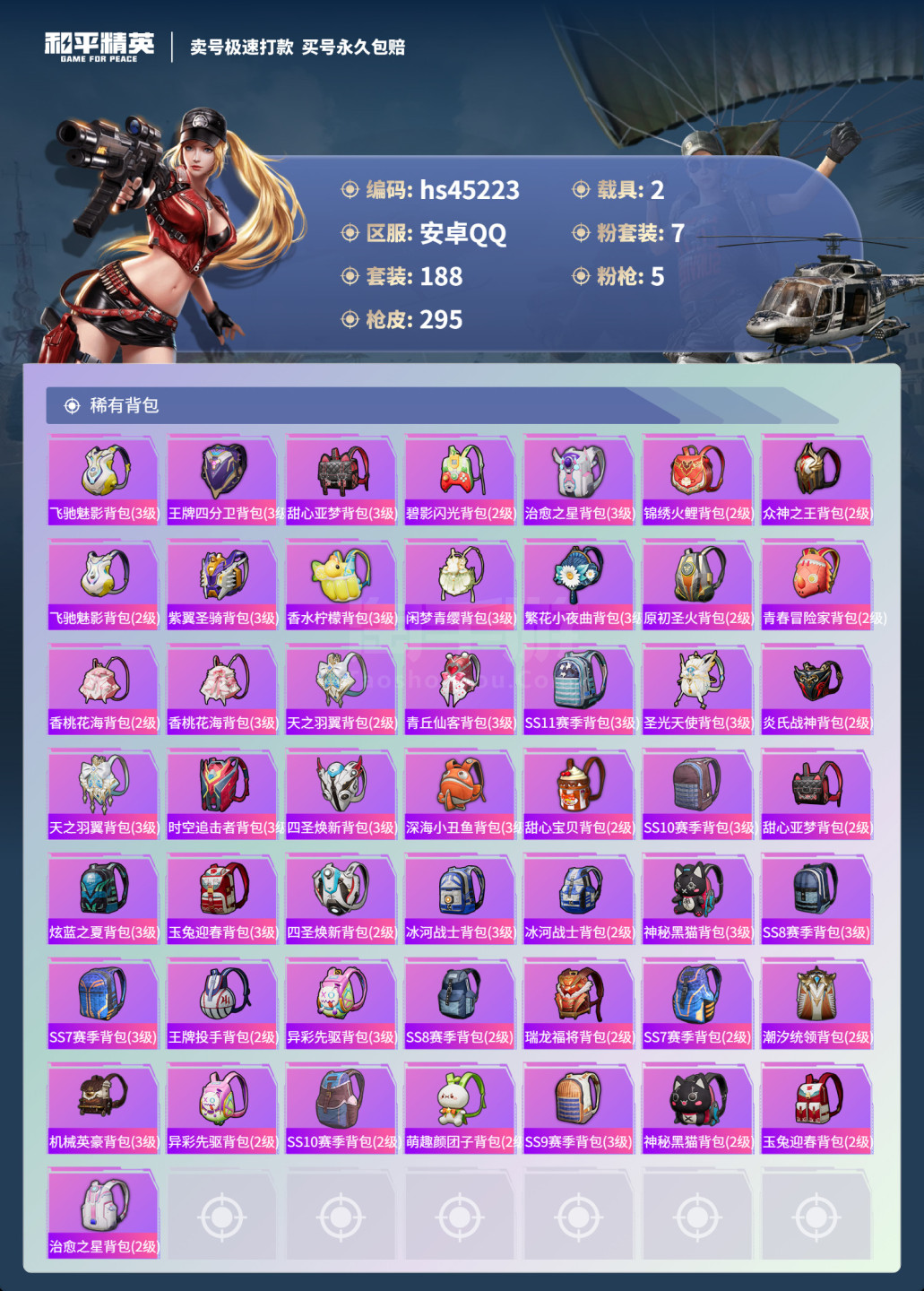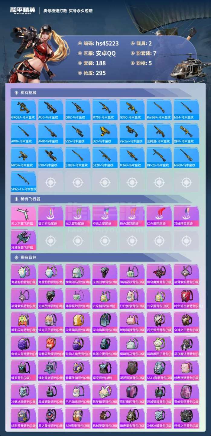 hs45223 安卓手Q-14王牌印记-7粉装-5特效枪-2载具-89792热力值-188套装-29