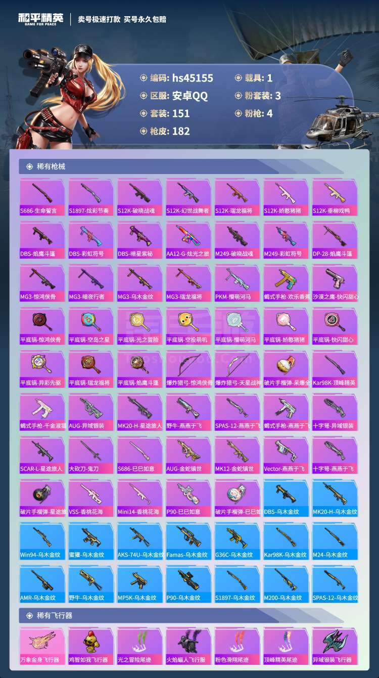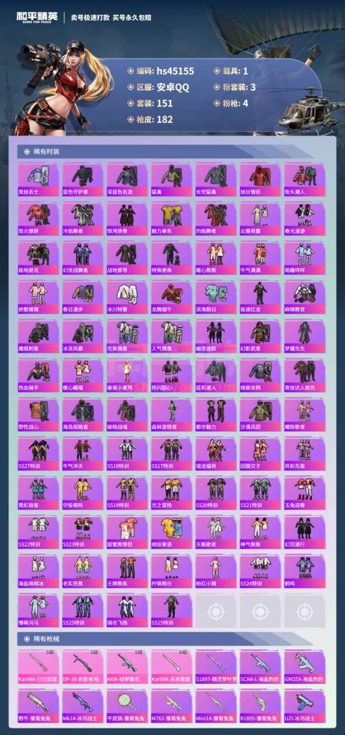 hs45155 安卓手Q-10王牌印记-3粉装-4特效枪-1载具-56468热力值-151套装-18