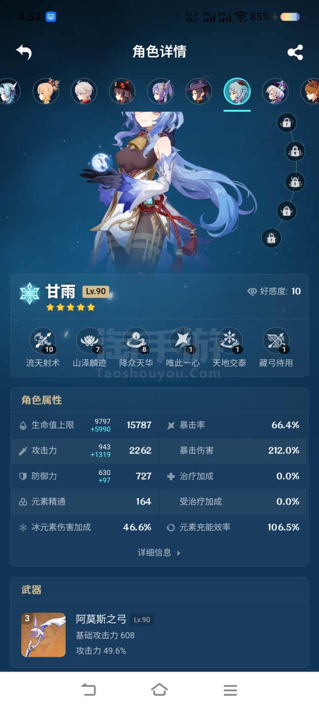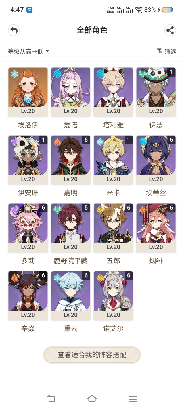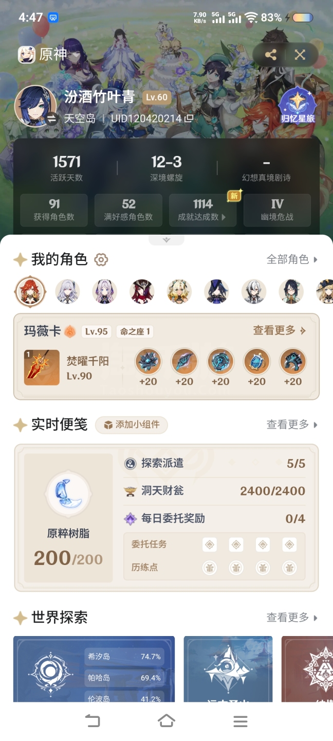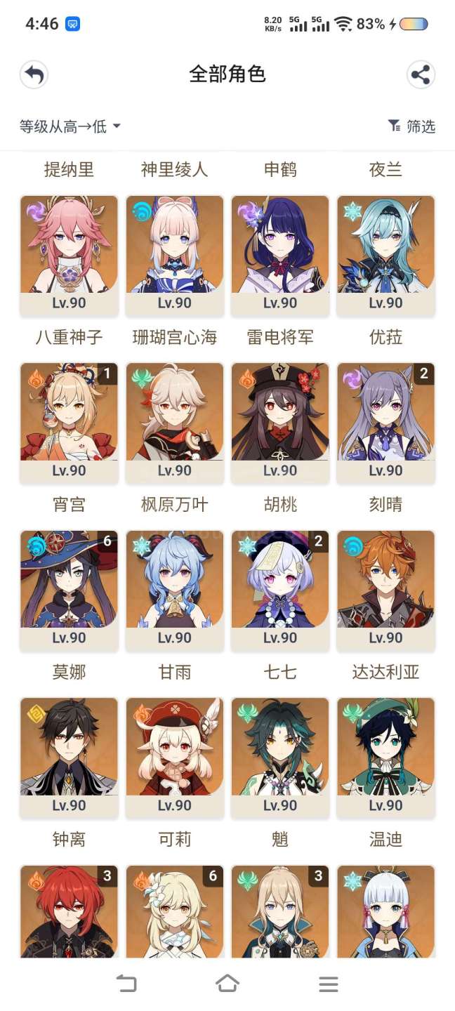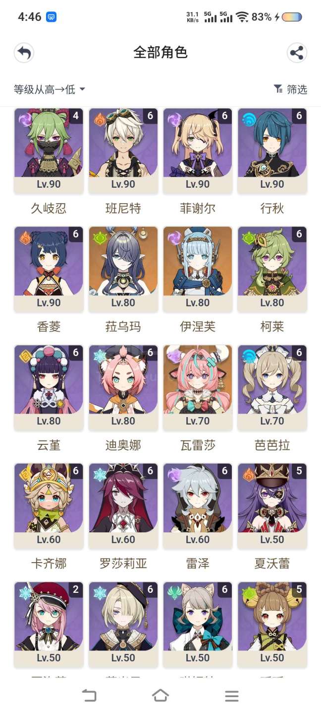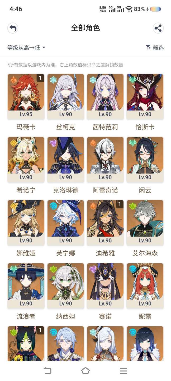 原神【安卓官方】原神65金爽号有命座可小刀深渊剧诗随便打满 幽境4以上有各种顶级阵容!实力强大