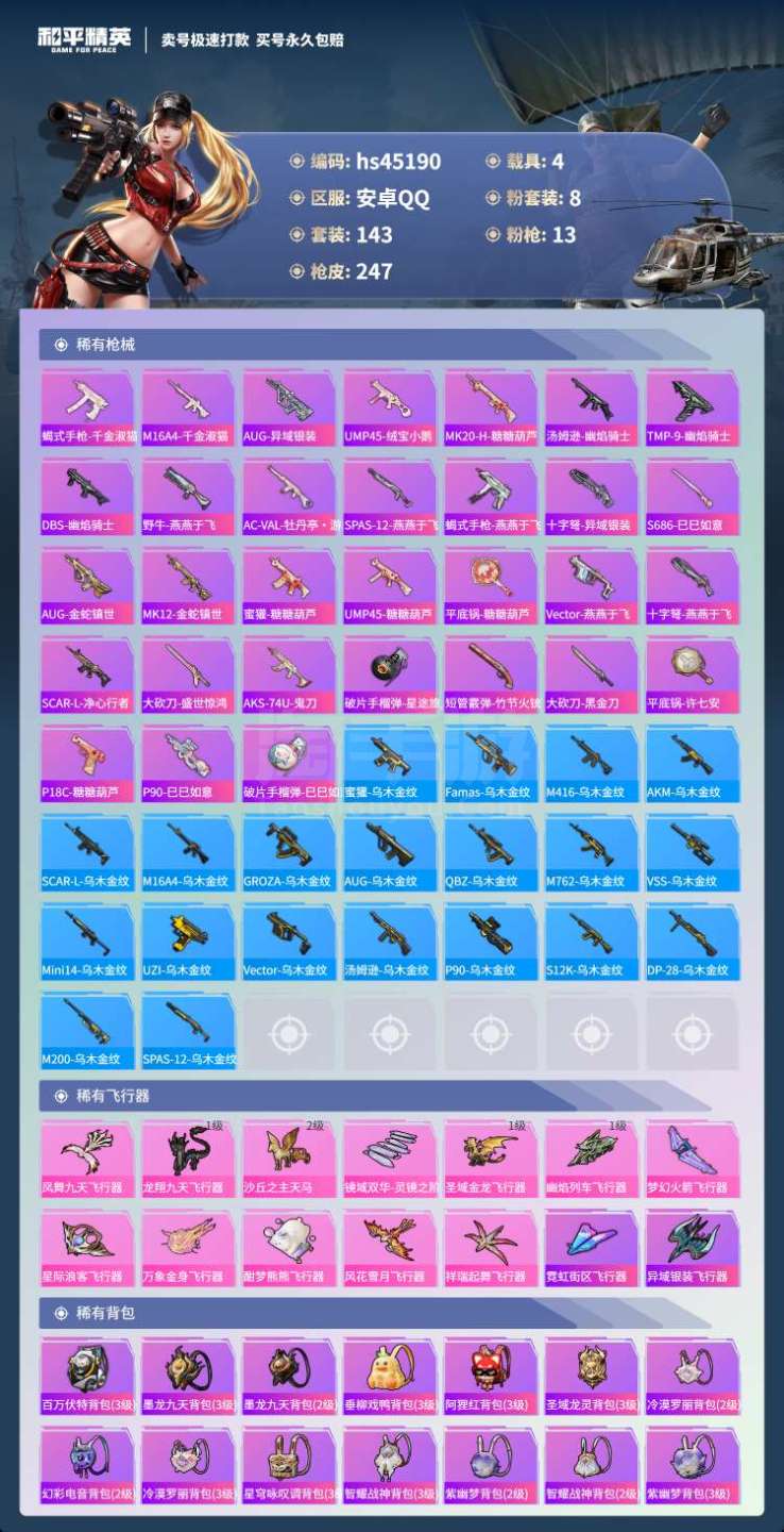hs45190 安卓手Q-12王牌印记-8粉装-13特效枪-4载具-83421热力值-143套装-2