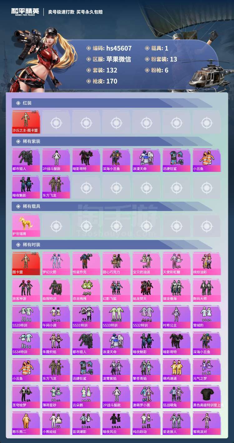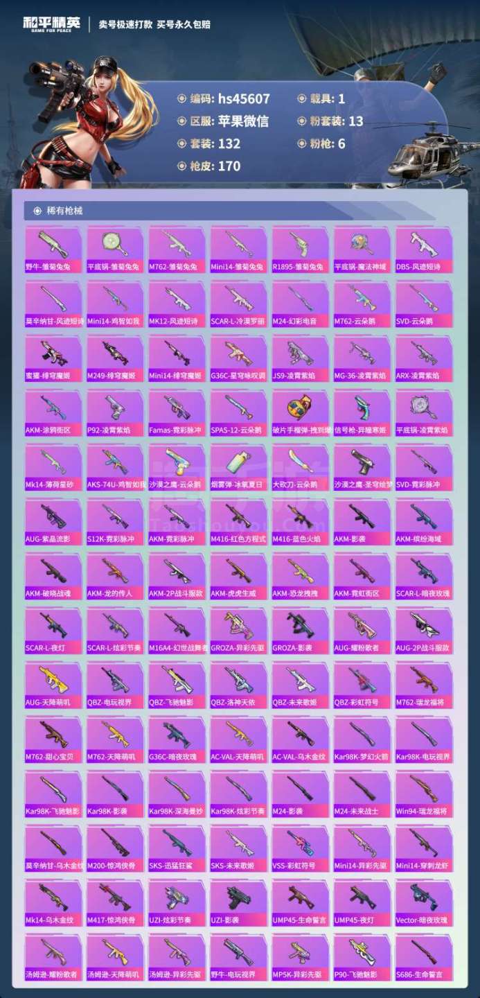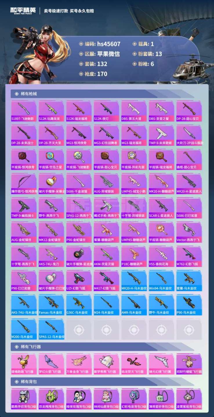 hs45607 苹果v-8王牌印记-13粉装-6特效枪-1载具-59783热力值-132套装-17