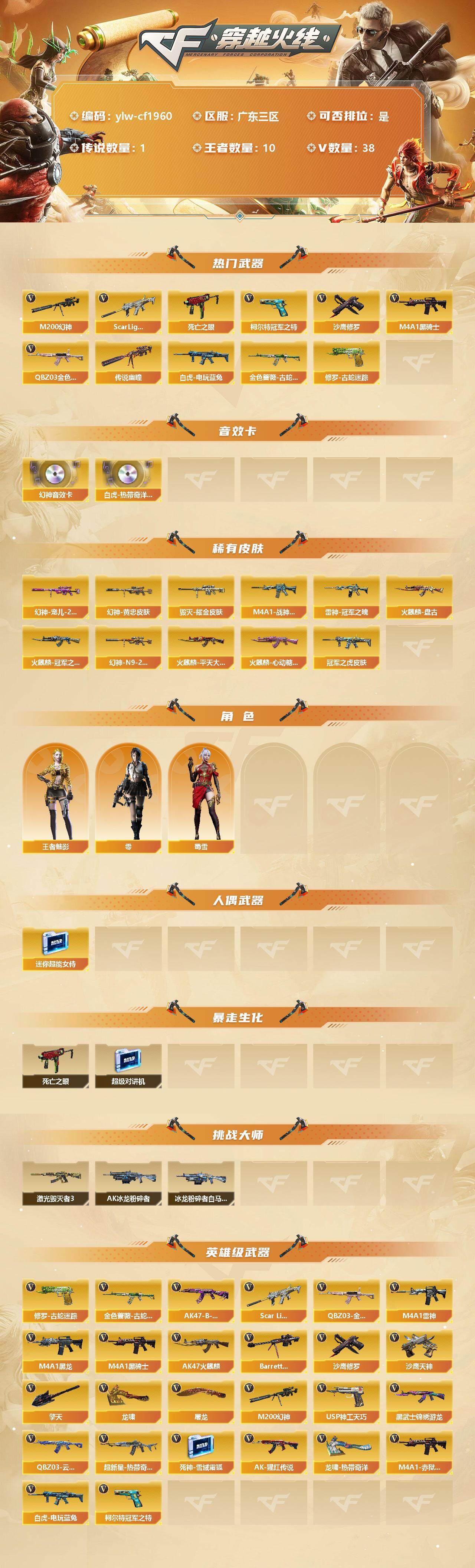 穿越火线(CF)【端游】【商品标题】:广东三区-38V-10王者-0炫金