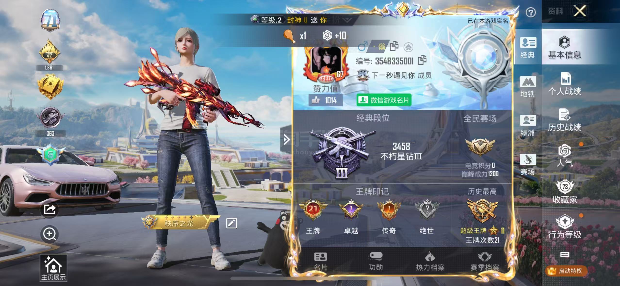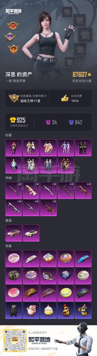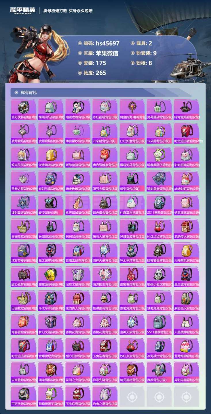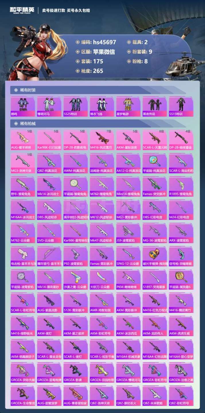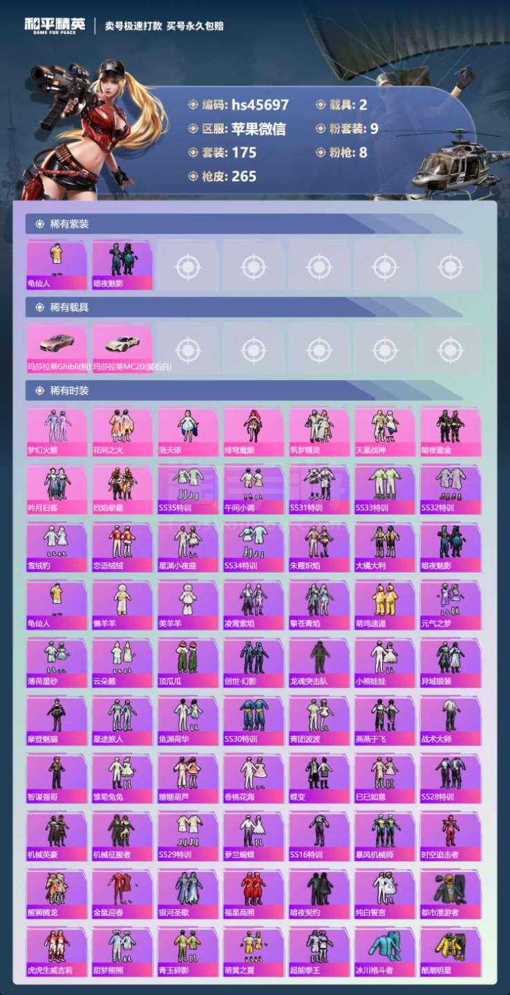 hs45697 苹果微-21王牌印记-9粉装-8特效枪-2载具-87612热力值-175套装-26