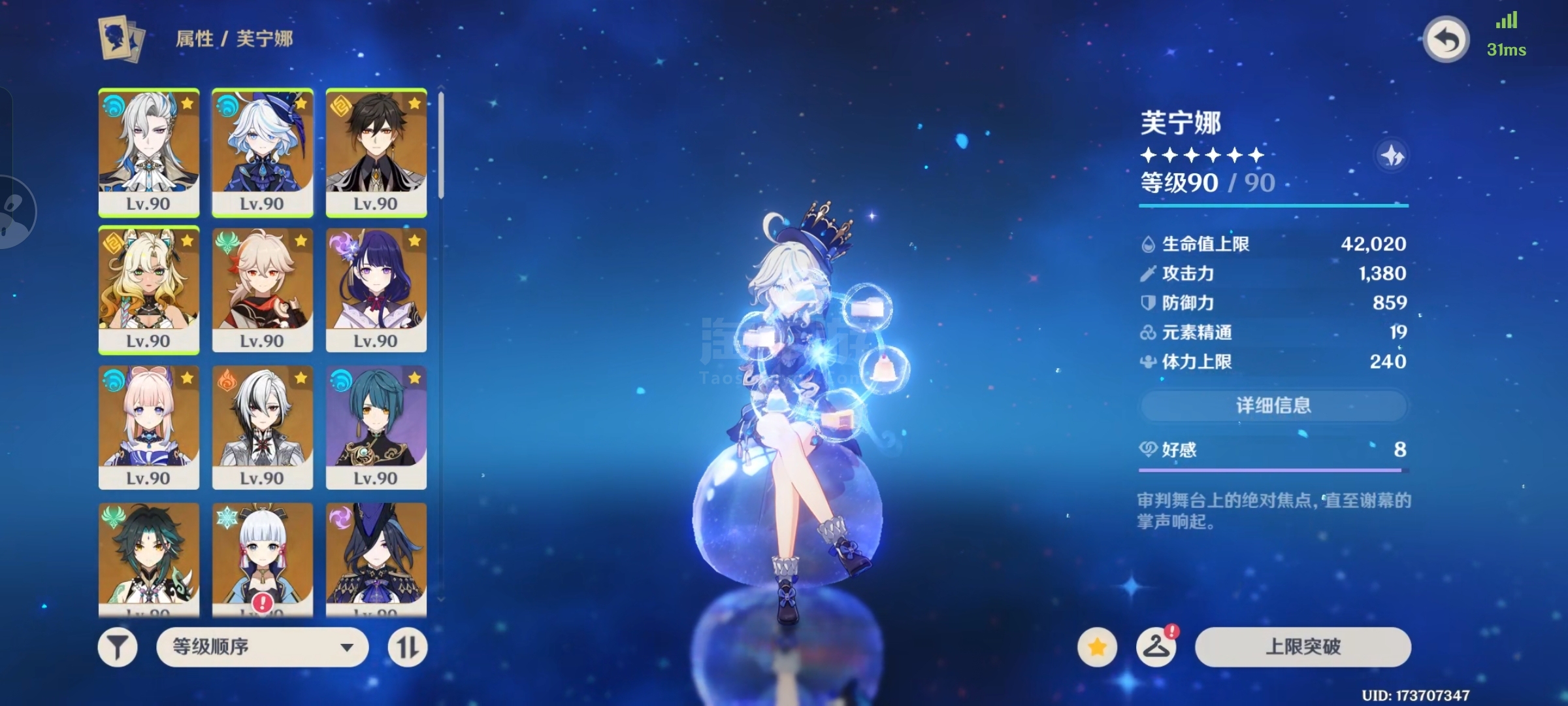 五星21个,四星41个。有二命芙宁娜,有仆人,水龙王等五星以及好几个满命四星,班尼特六命没点,但满命