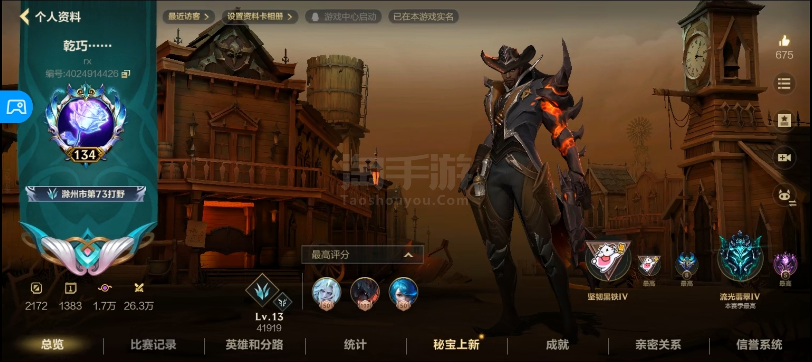 打野13级,号里具体皮肤请看本人截图,可小刀,急出
