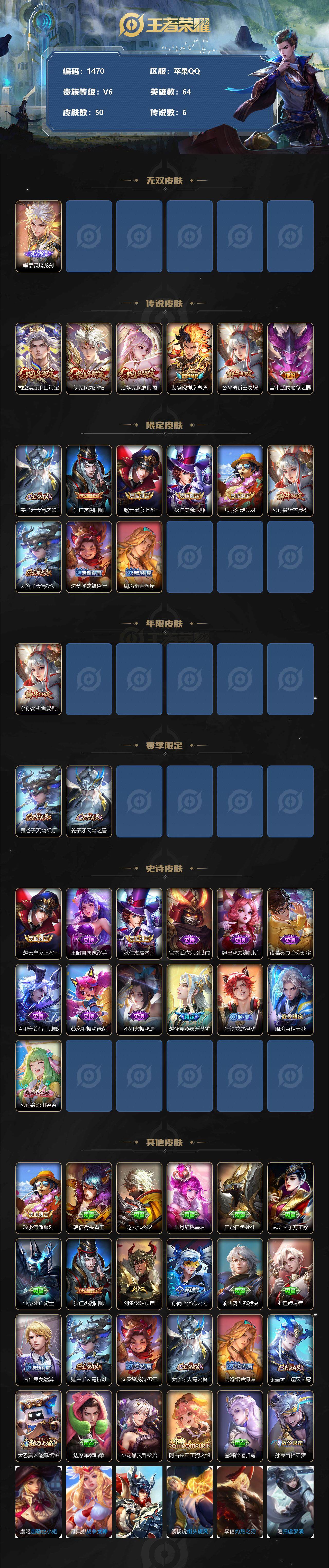 【商品标题】:1272377王者荣耀账号 苹果Q-V6-至尊星耀IV段位-64