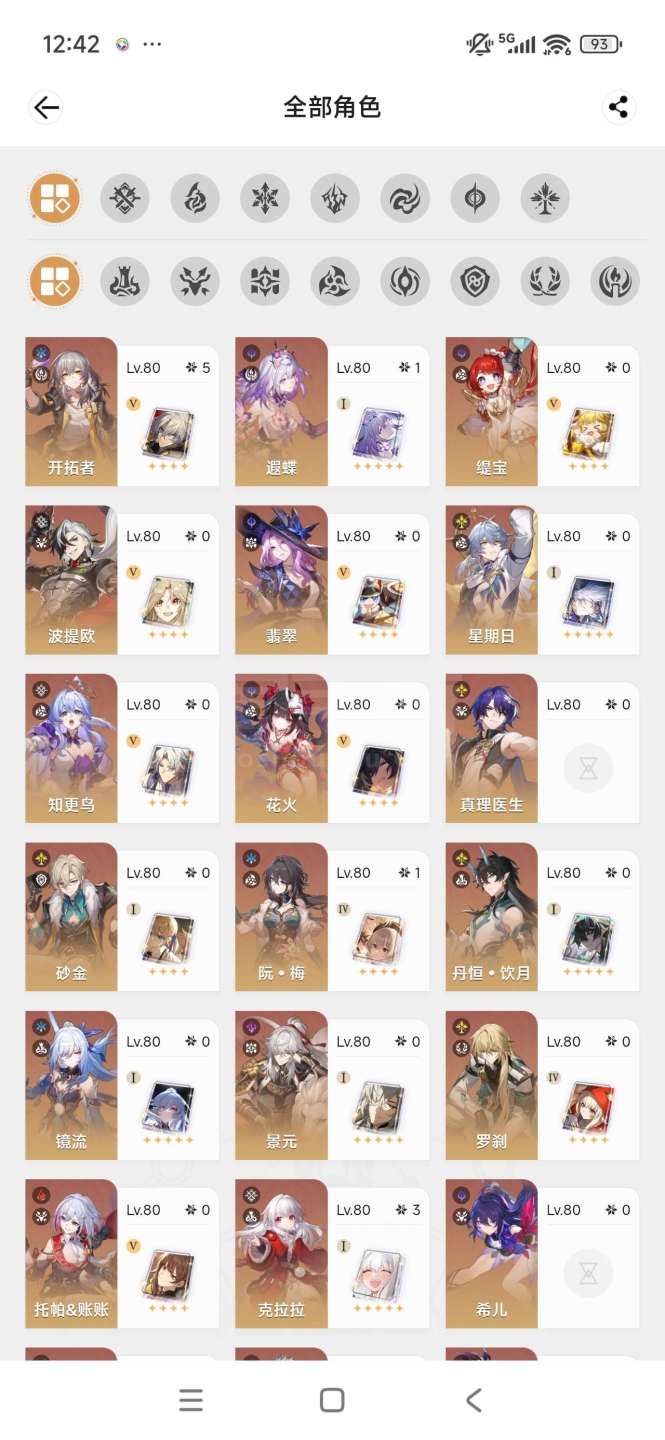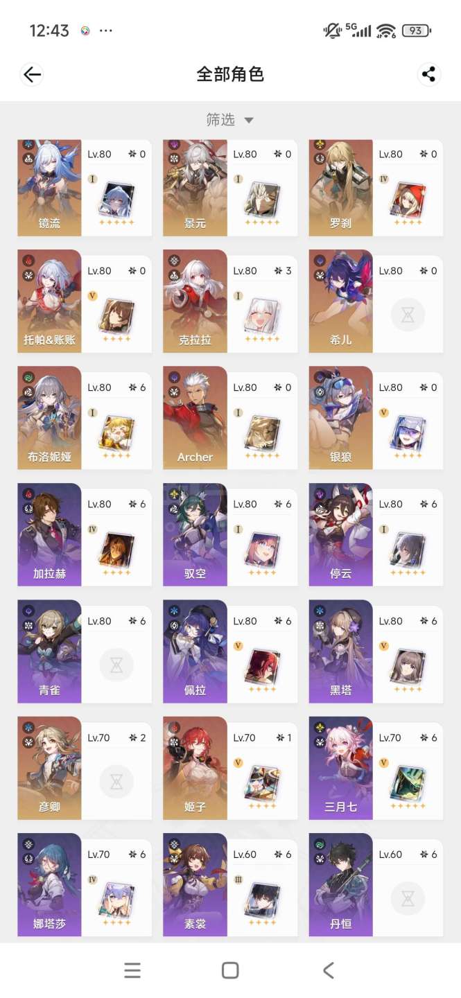 70多金,大部分主c都有专武,满命布洛妮娅,1+1遐蝶,还有1.1w星琼