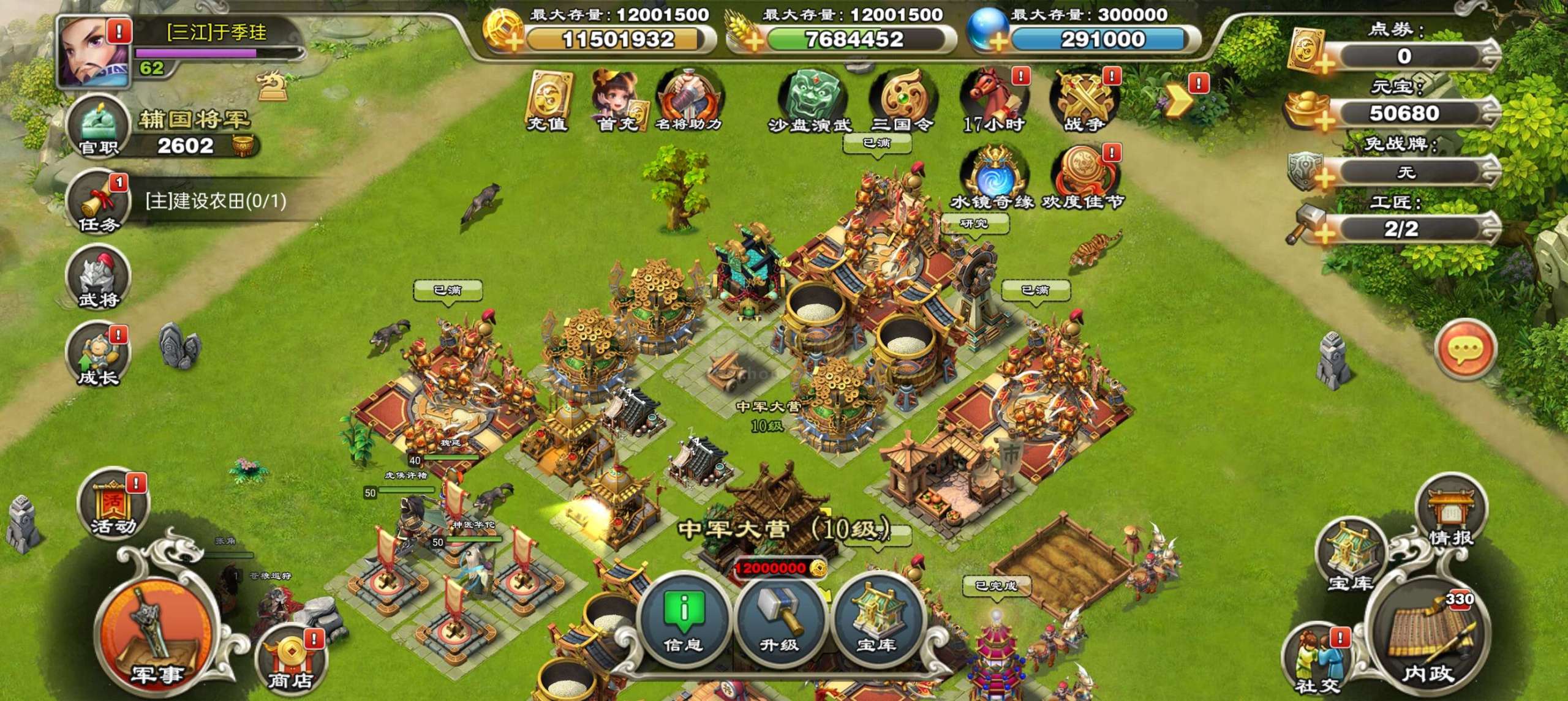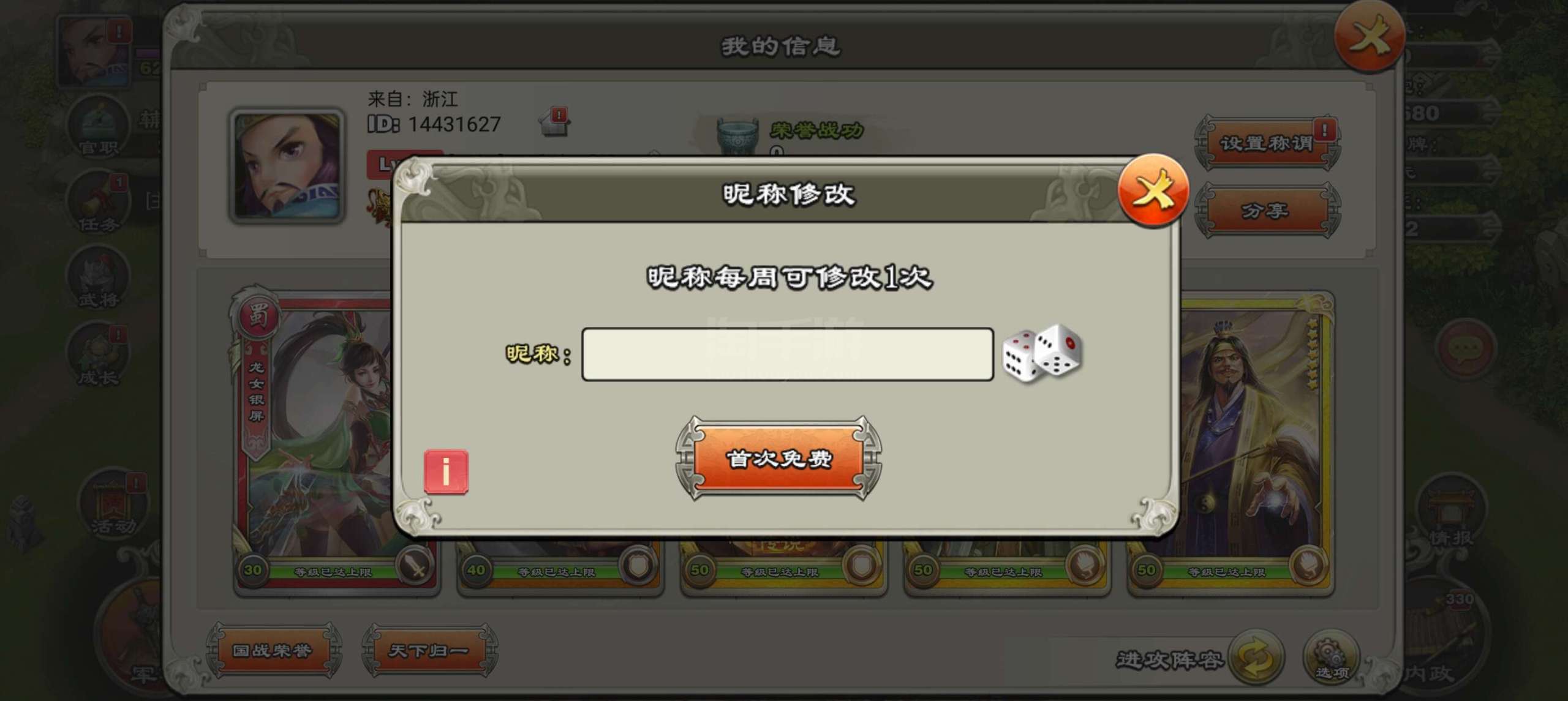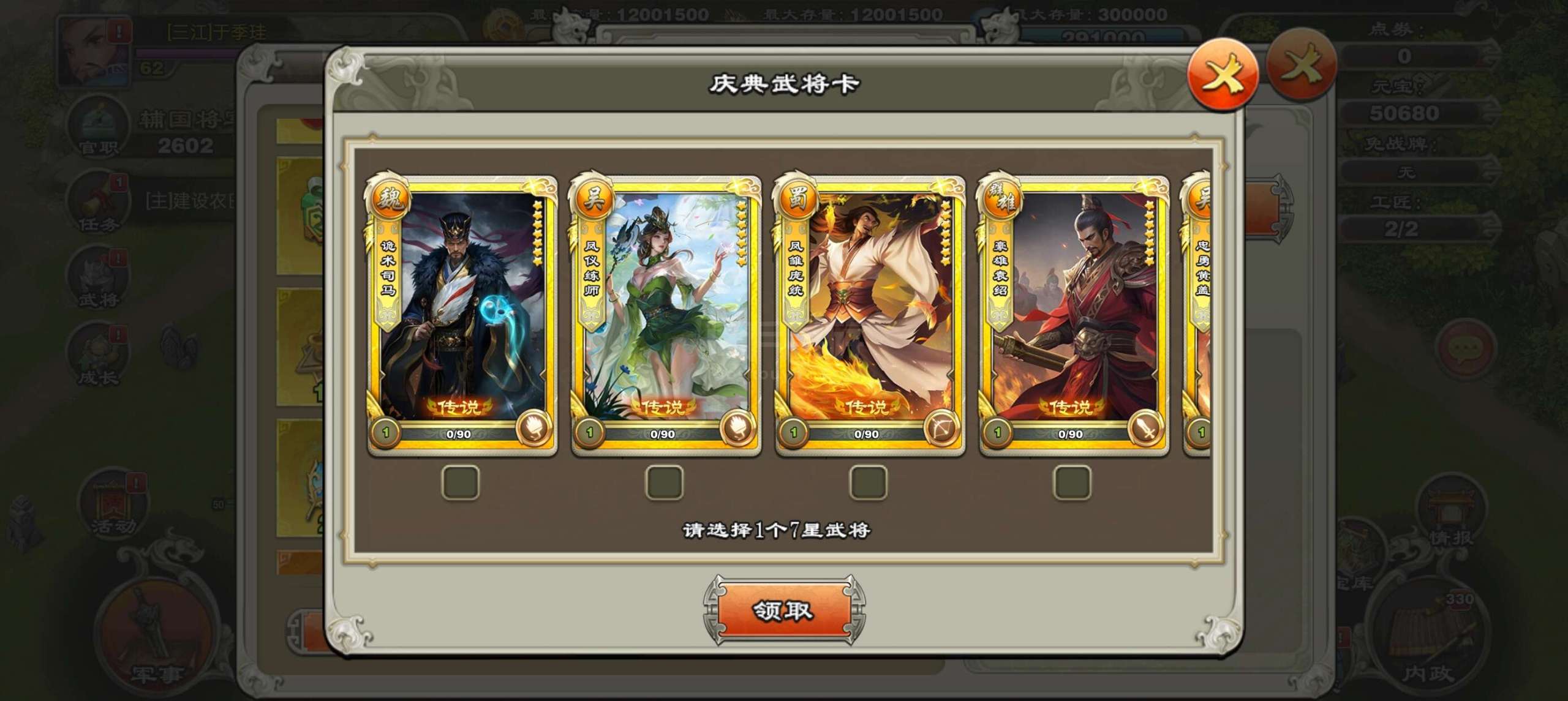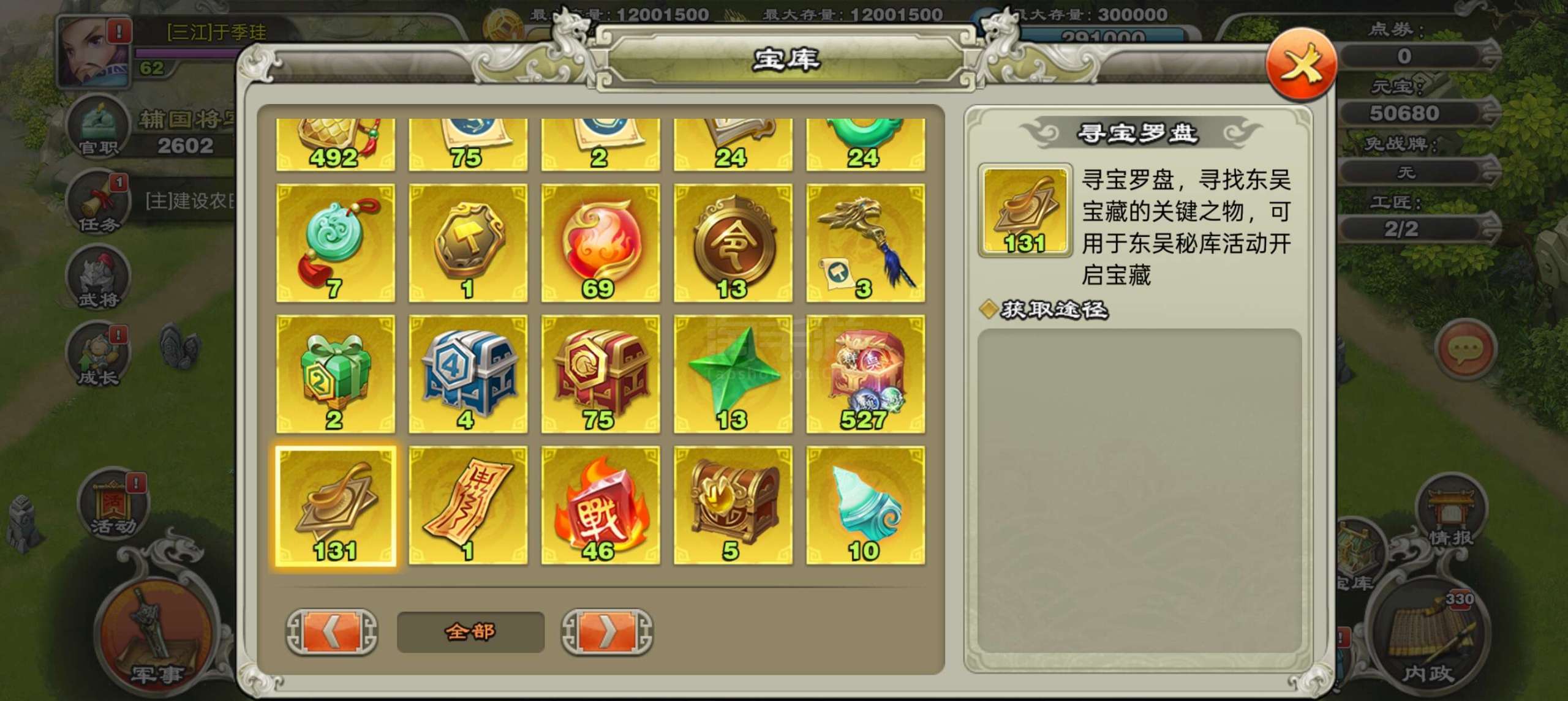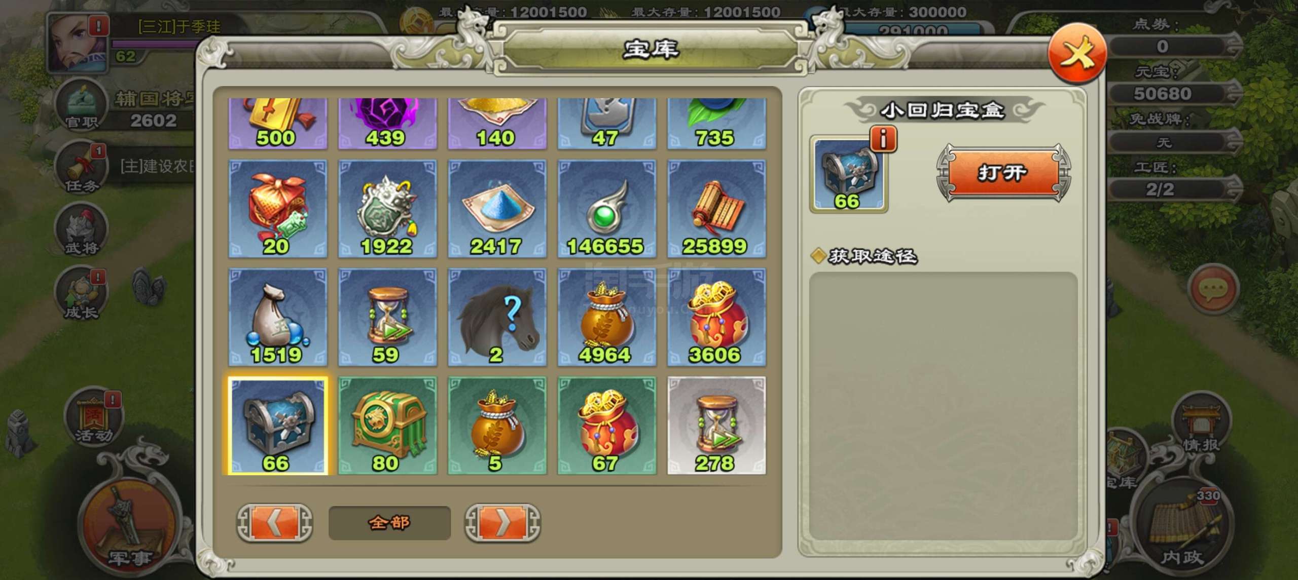 君临天下【安卓其他】水镜许褚,26羽毛,50000元宝,2380吉签,自选47,10本62级,多资源压级号