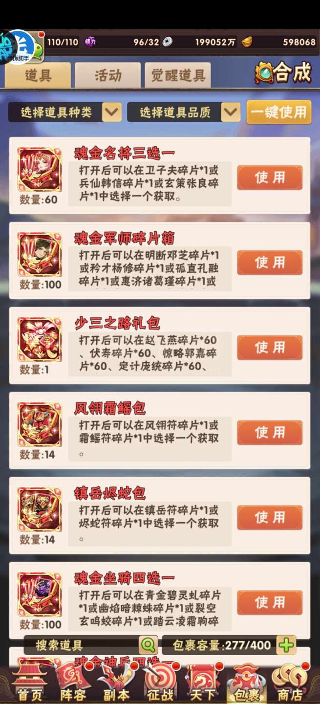少年三国志【安卓果盘】V10魂金二人转,背包资源很多
