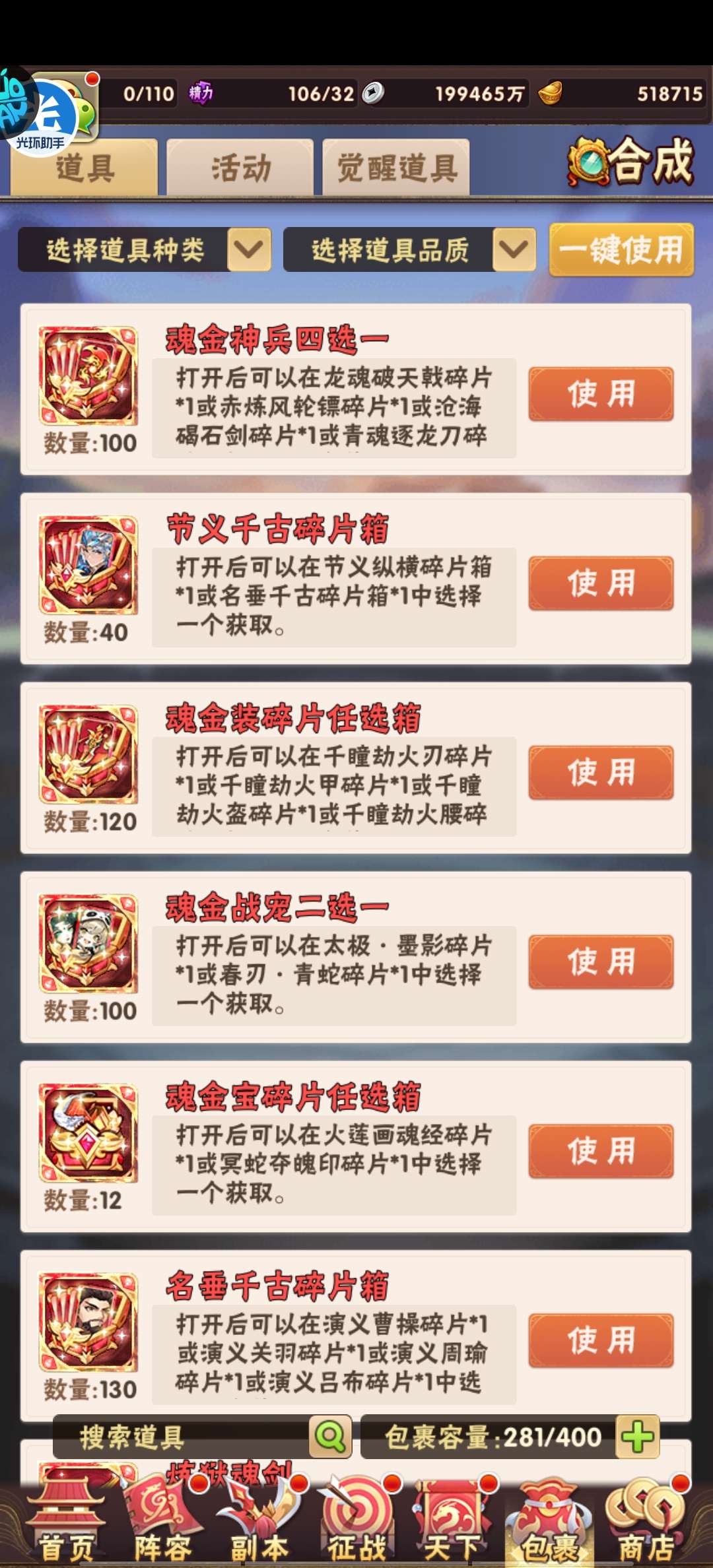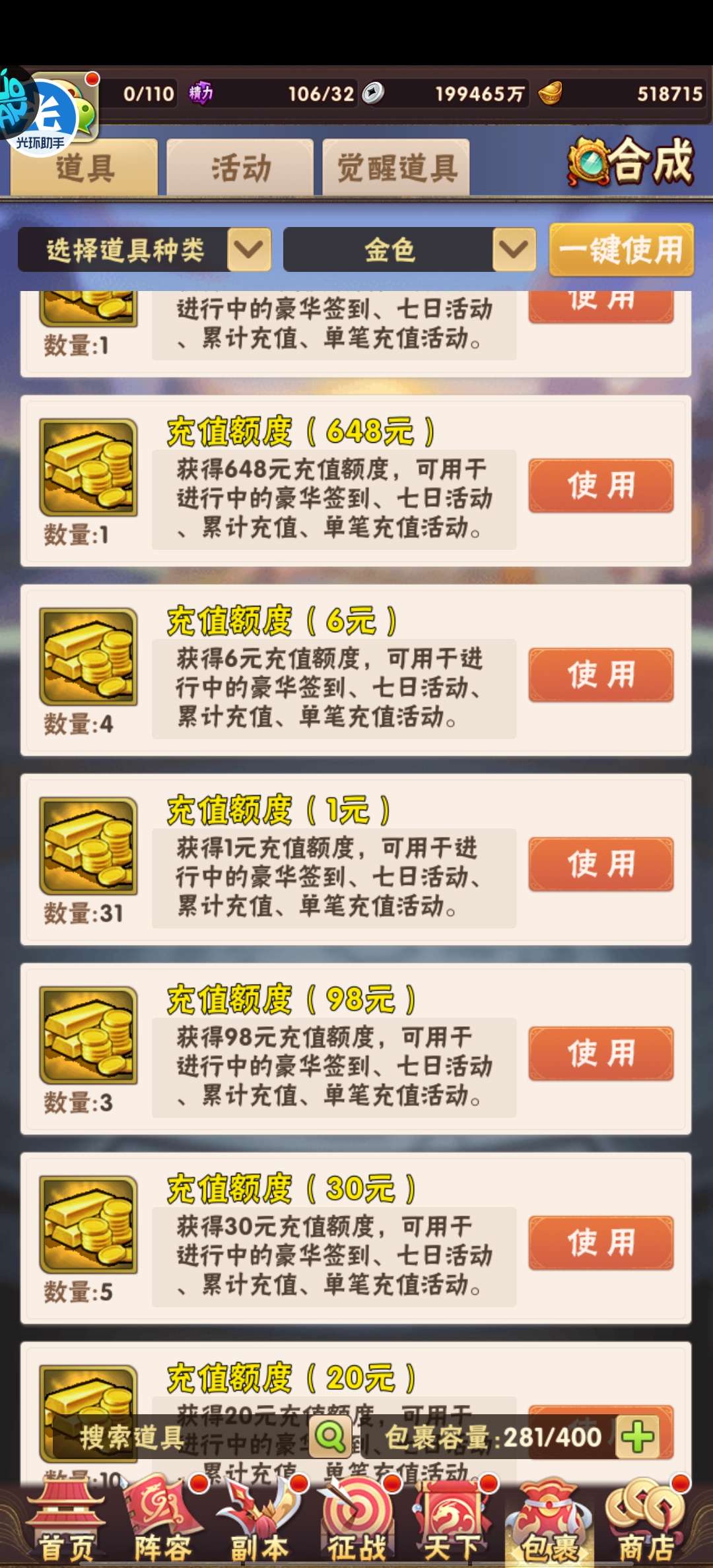 安卓果盘混服7136区,V10魂金二人转,背包魂金资源很多,还有648额度,四个月的双月卡