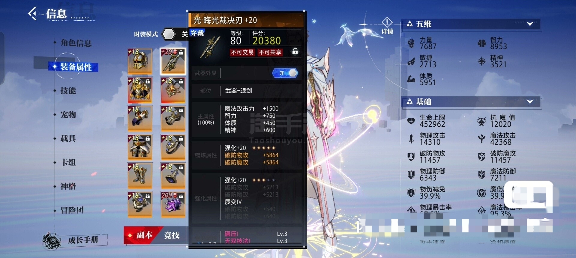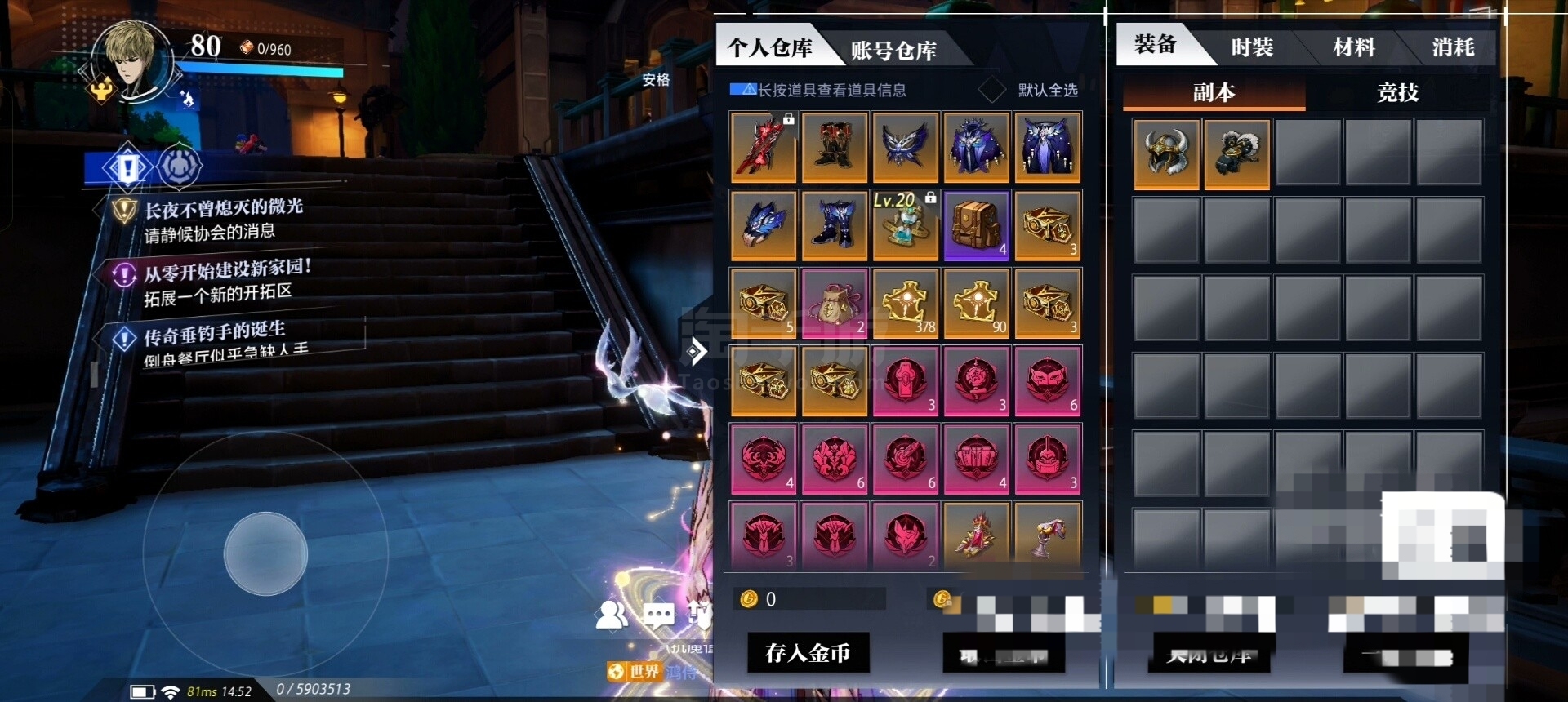 晶核【安卓官方】极品晶核全身新天空+20 鬼刃,全身满级金徽记,仓库 30 个黯结晶,强化资源金徽记模块爆满,棋魂已