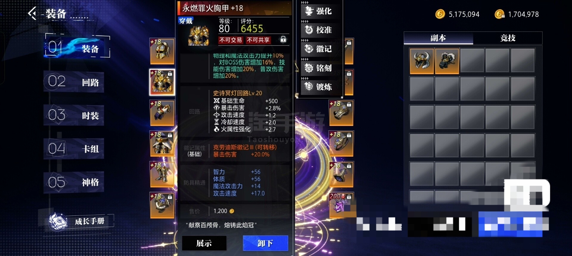极品晶核全身新天空+20 鬼刃,全身满级金徽记,仓库 30 个黯结晶强化资源金徽记模块爆满可登基