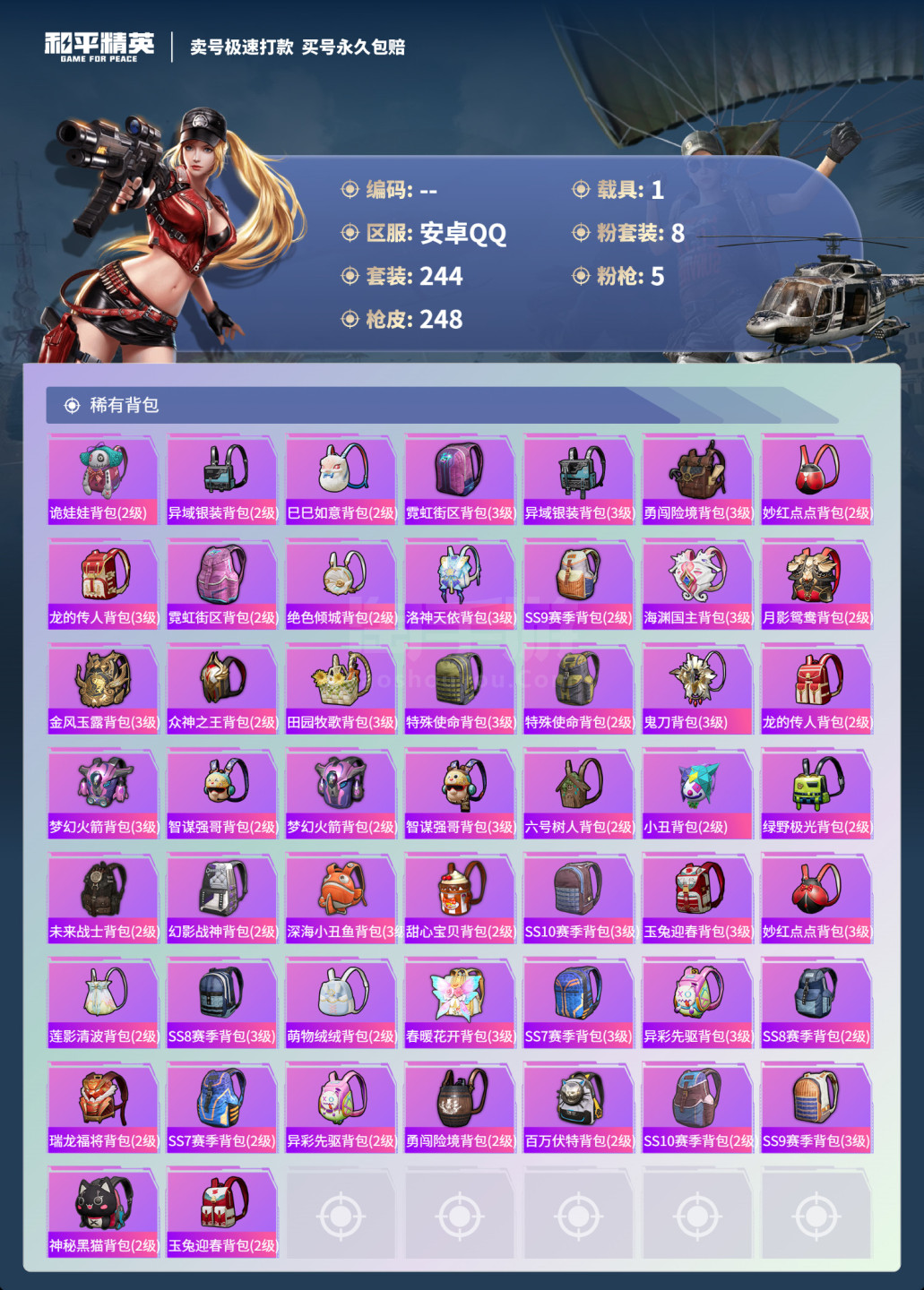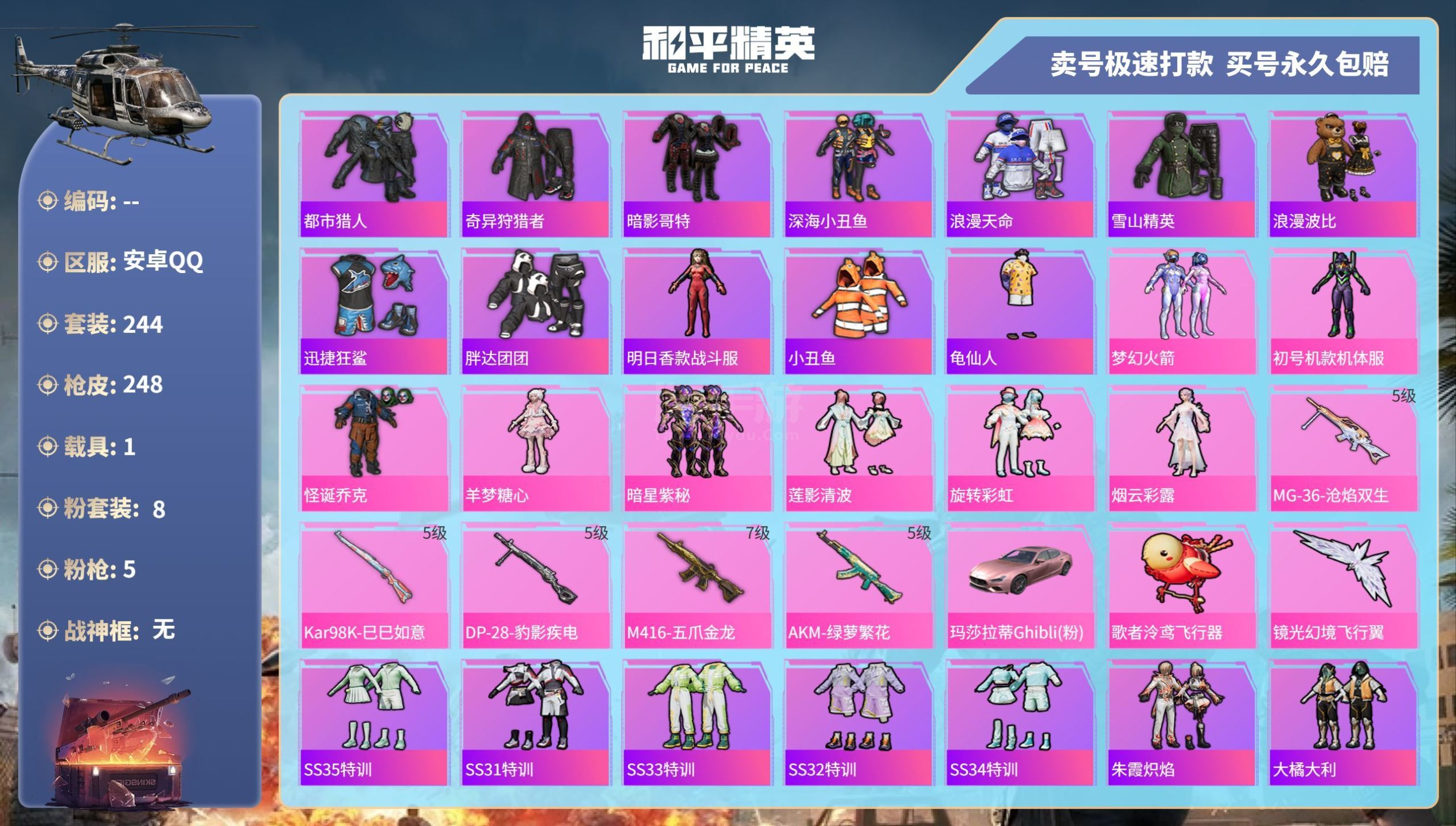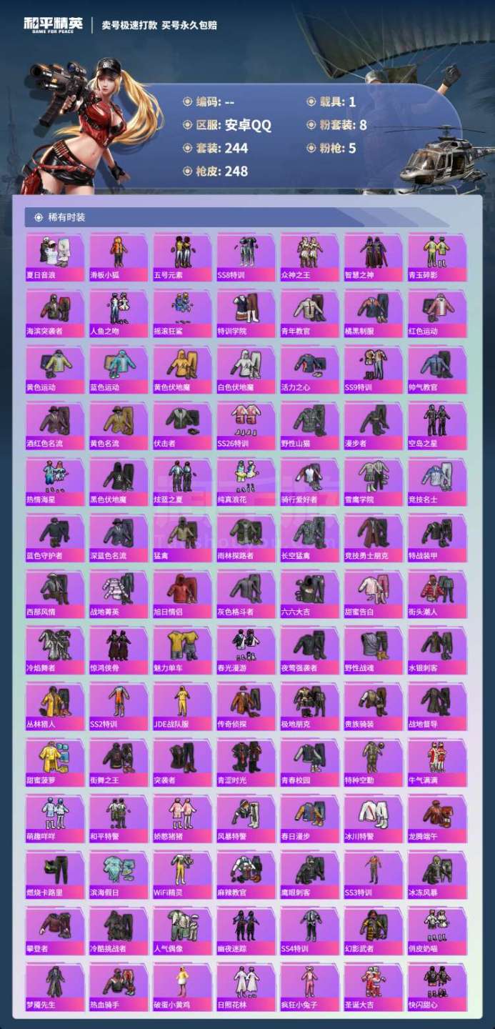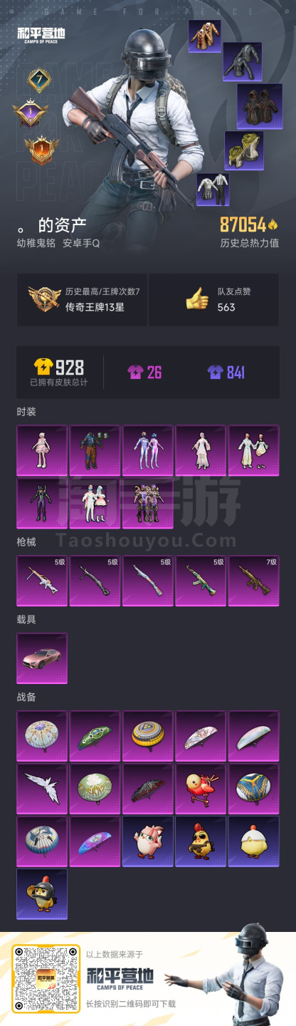 hs45309 安卓手Q-7王牌印记-8粉装-5特效枪-1载具-87458热力值-244套装-248