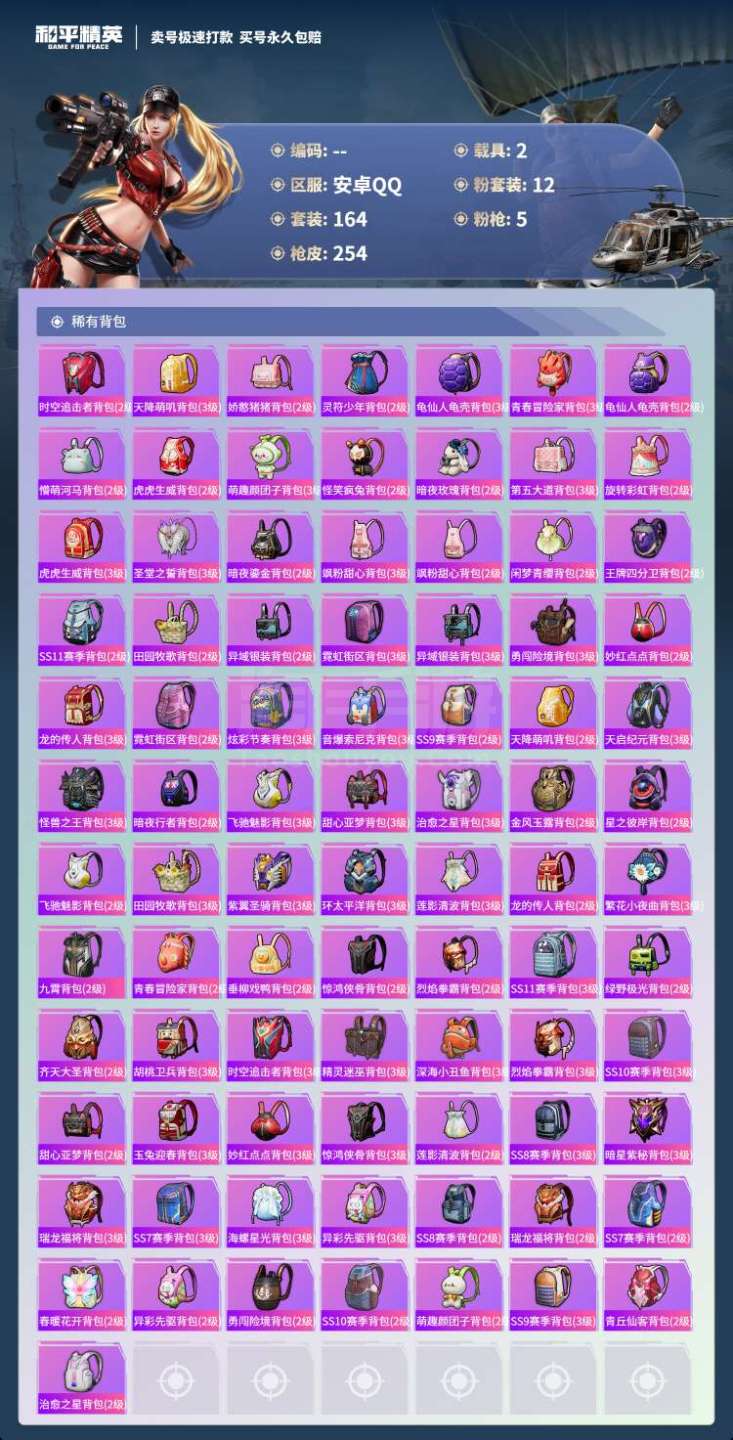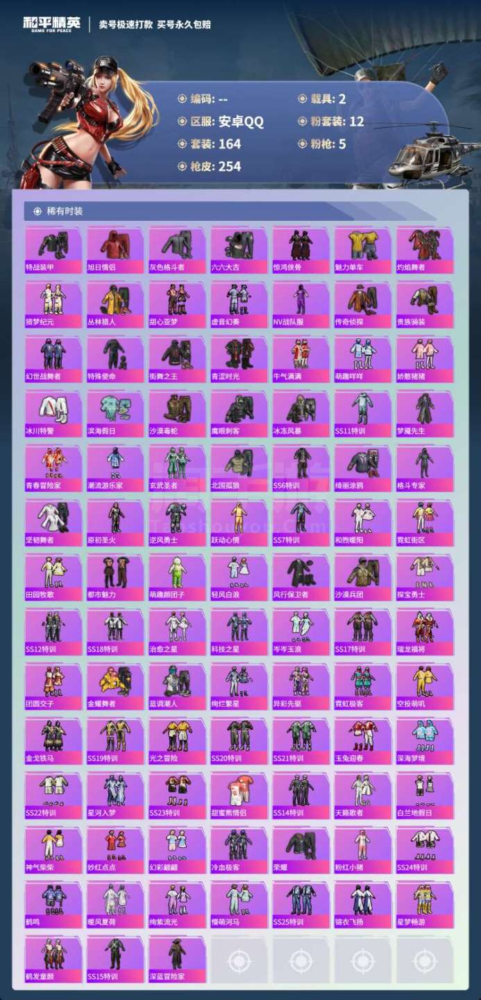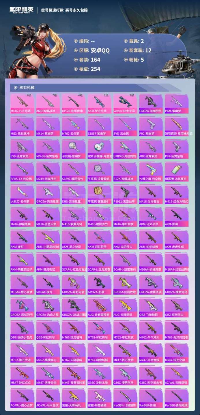 hs45390 安卓手Q-8王牌印记-12粉装-5特效枪-2载具-85012热力值-164套装-25